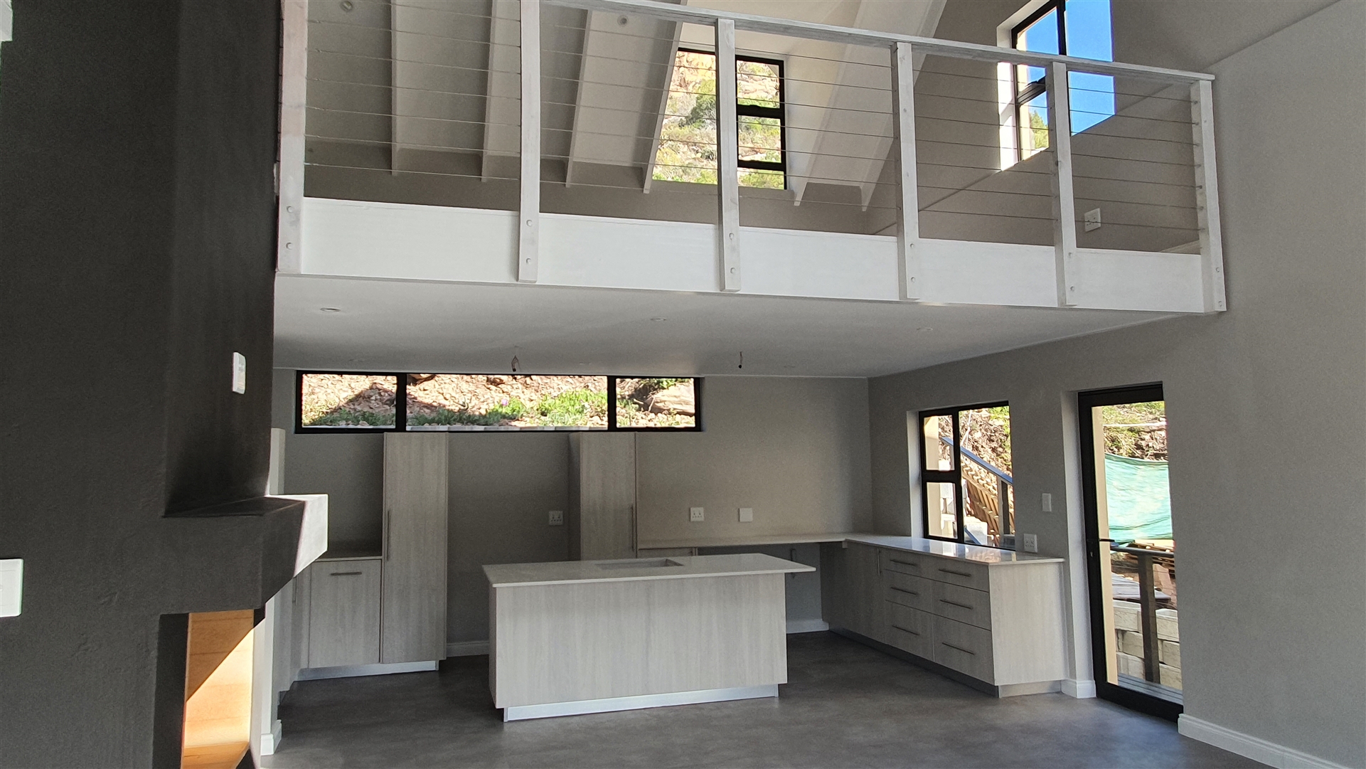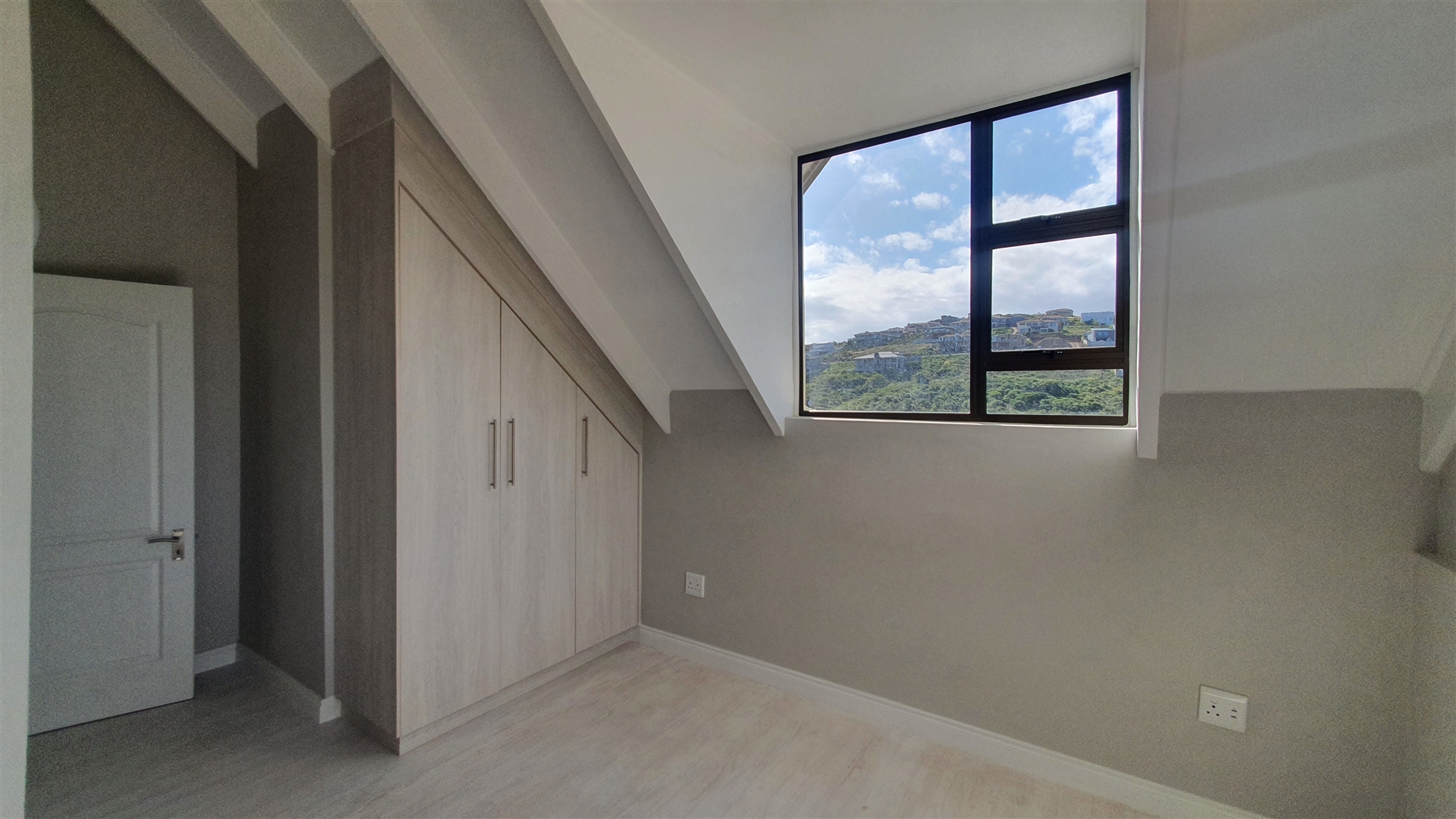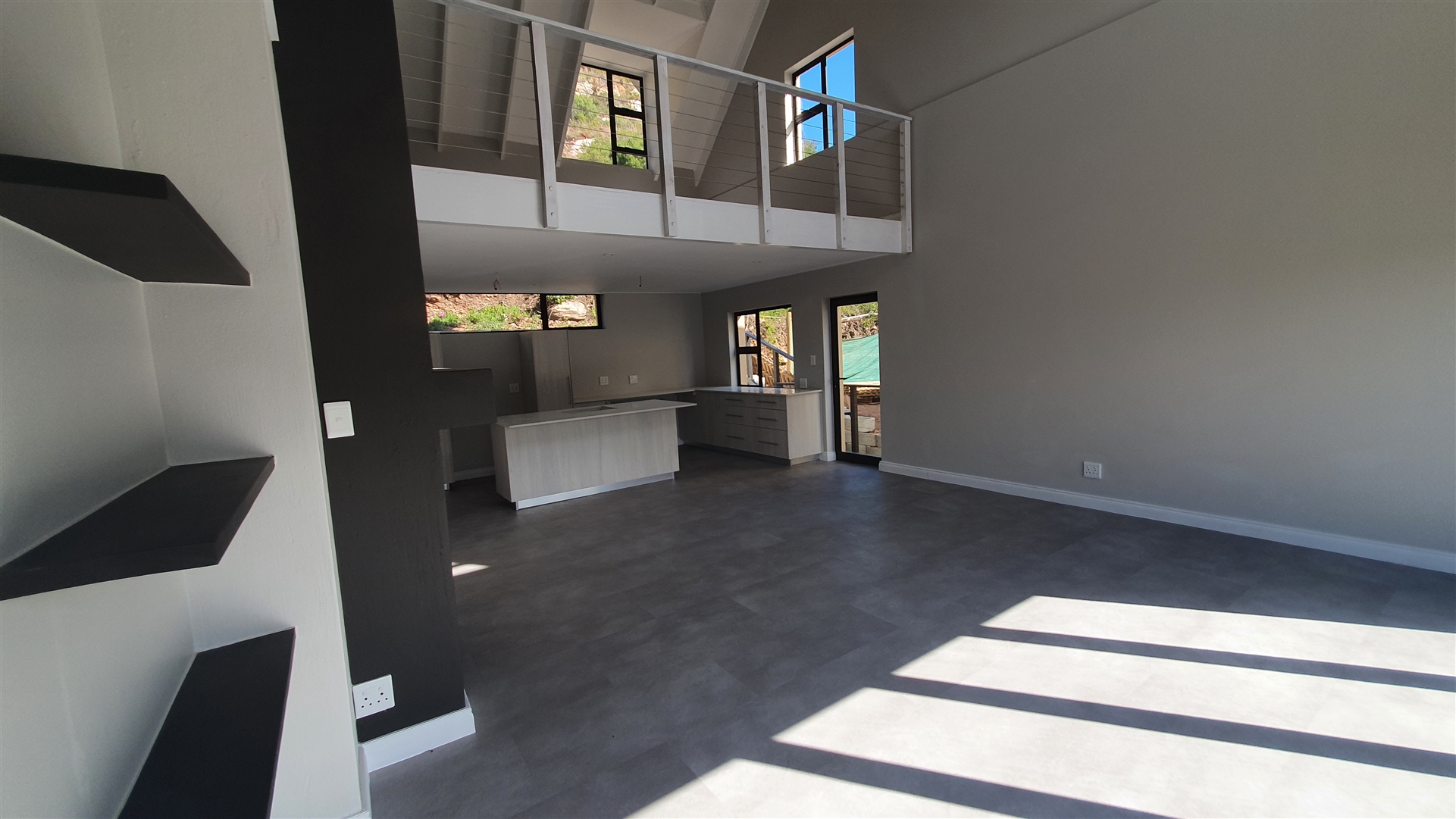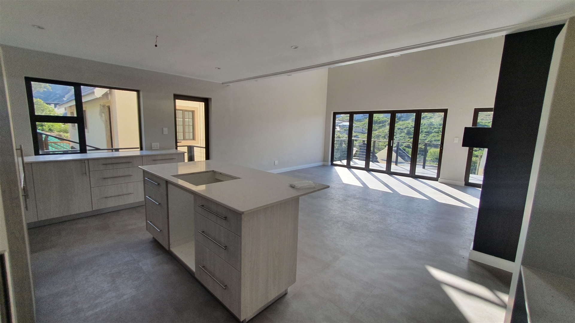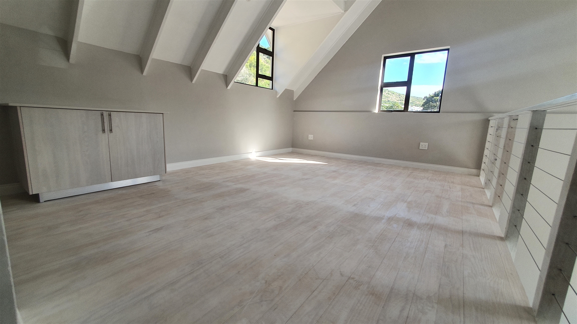 The family room will not disappoint you. With a cosy braai/fireplace, stacking doors opening onto a deck. While standing on this deck, you can just picture family and friends spending quality time together while enjoying the beautiful kloof and sea surroundings.