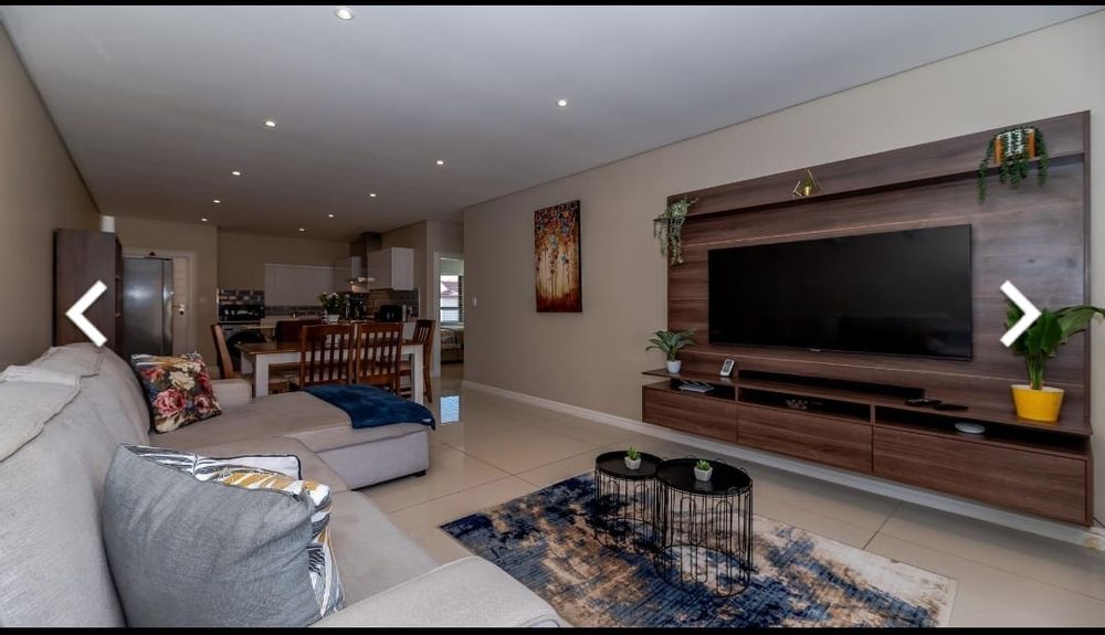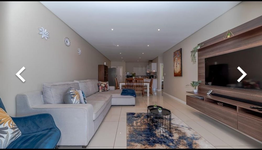 The perfect lock up and go. Located in secure Izinga Estates, in manned, boomed, cul de sac with manned access control at the complex entrance as well. Tastefully furnished, the open plan lounge and dining room opens to a spacious balcony with beautiful inland views. There is a smart TV and WiFi is included. The kitchen is well equipped and features a gas cooker. Both bedrooms are airconditioned and a good size.