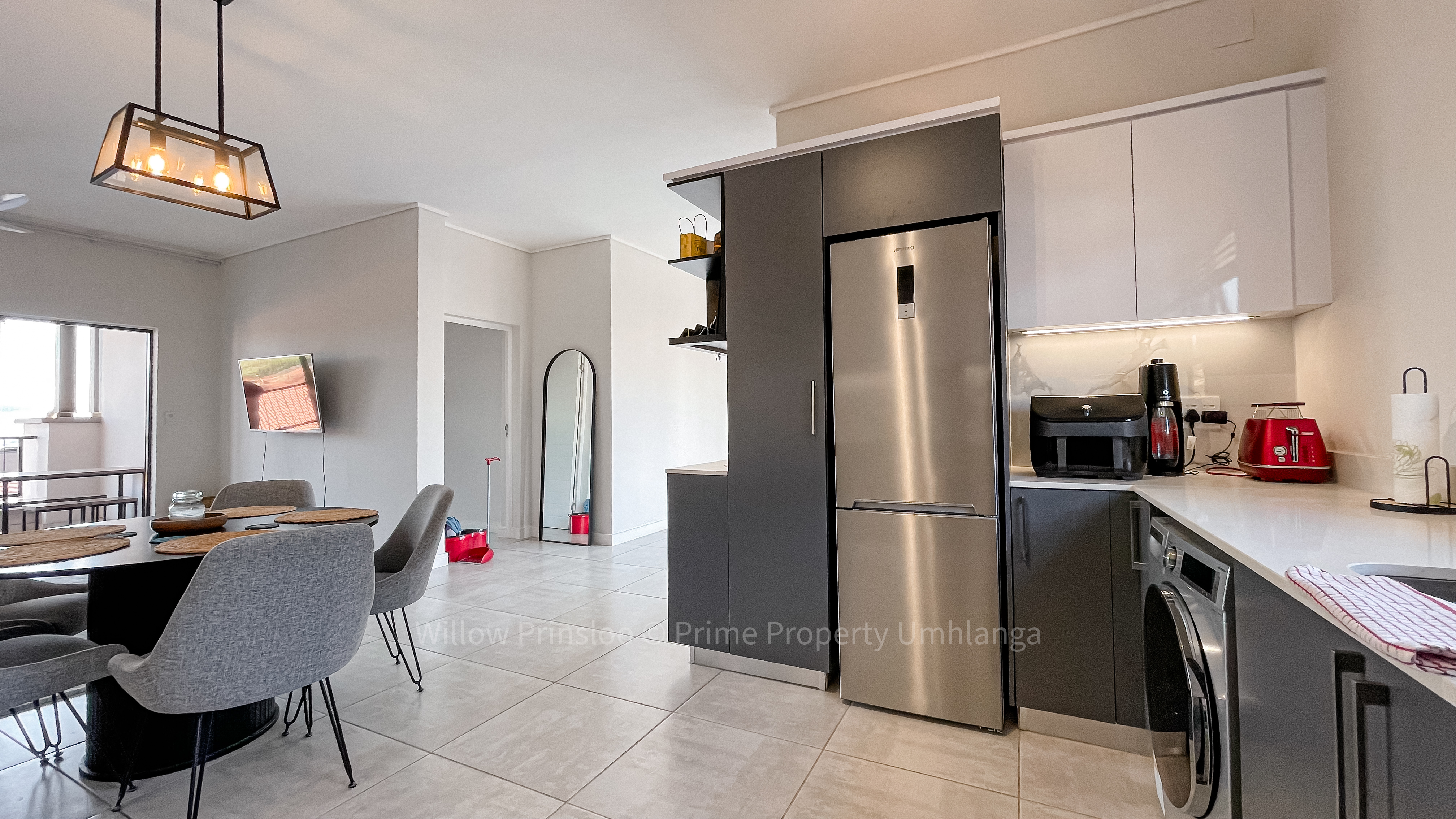 This luxury apartment offers 3 spacious bedrooms with 2 modern bathrooms. The airy living space leads out to a balcony that includes a neat built in braai. The apartment is situated on the second floor and comes with 2 undercover parking bays. All kitchen appliances are included with SMEG branded appliances.