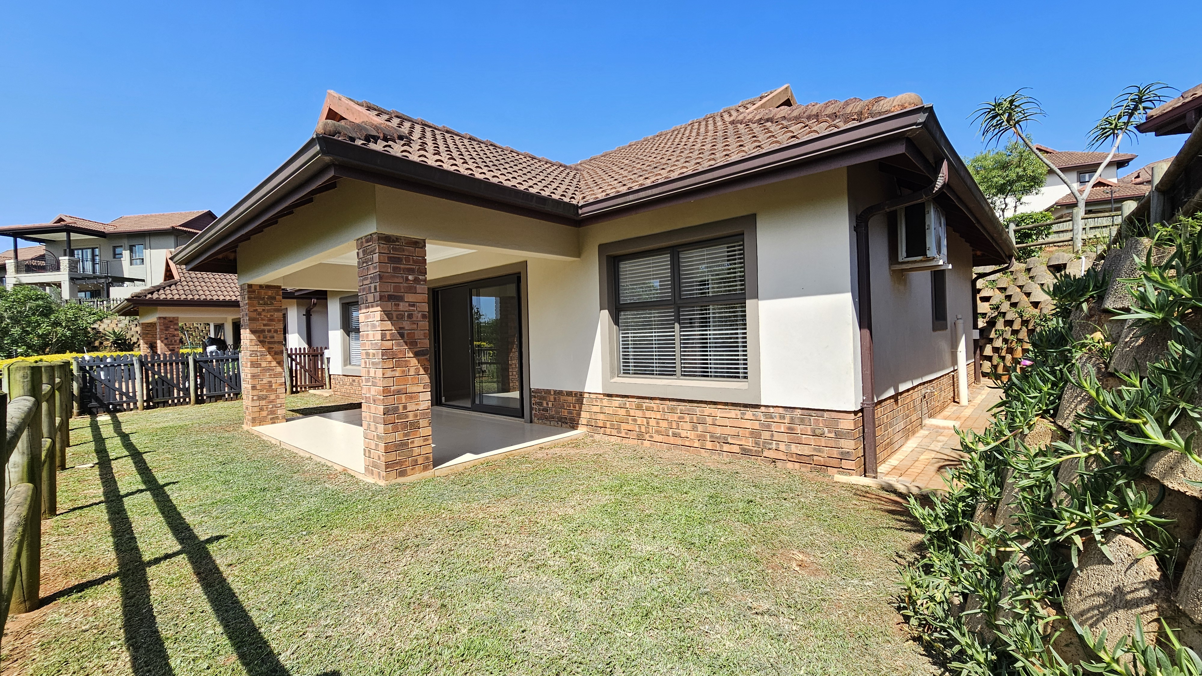 The home features three air-conditioned bedrooms, ensuring cool relaxation year-round.