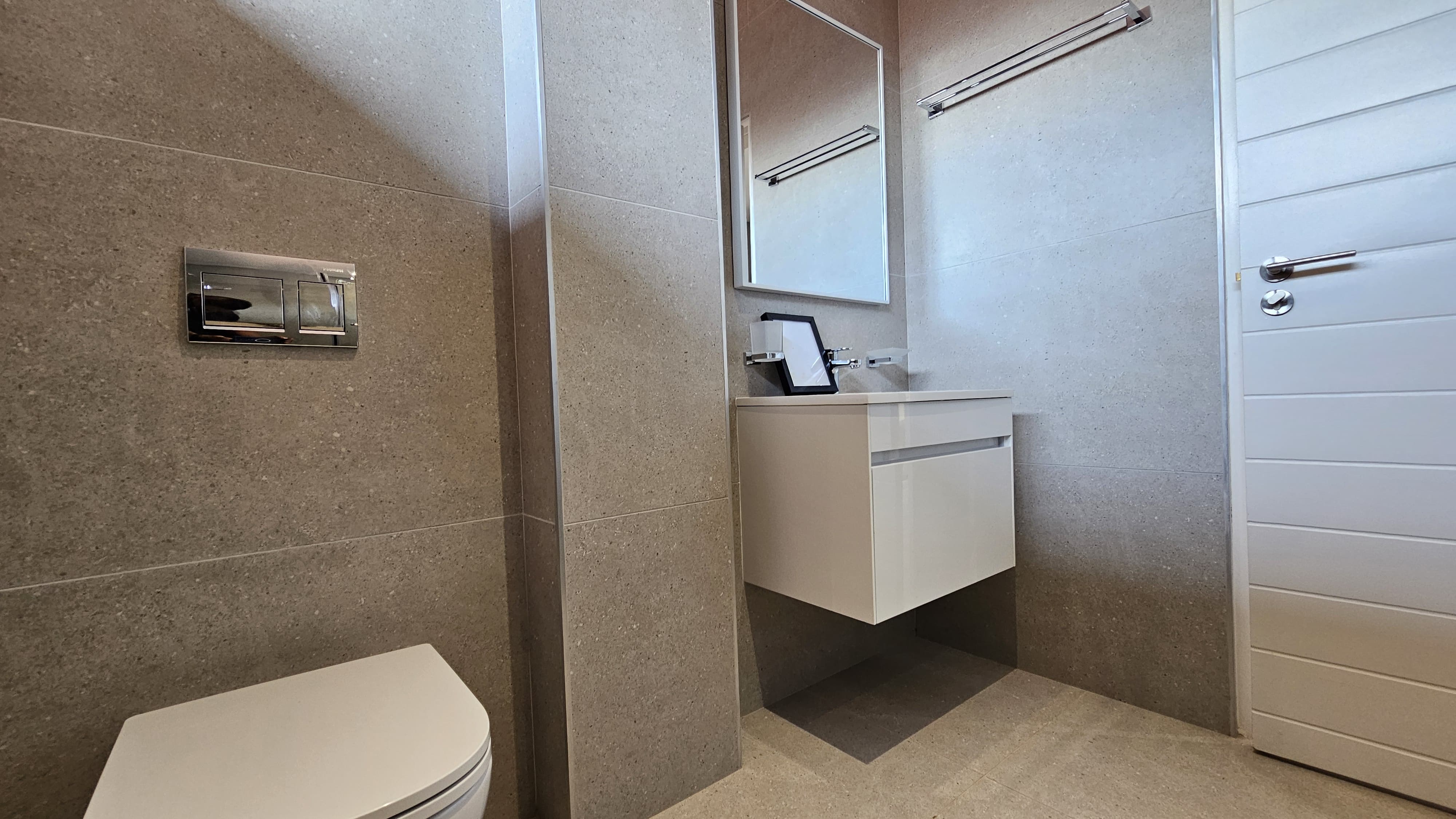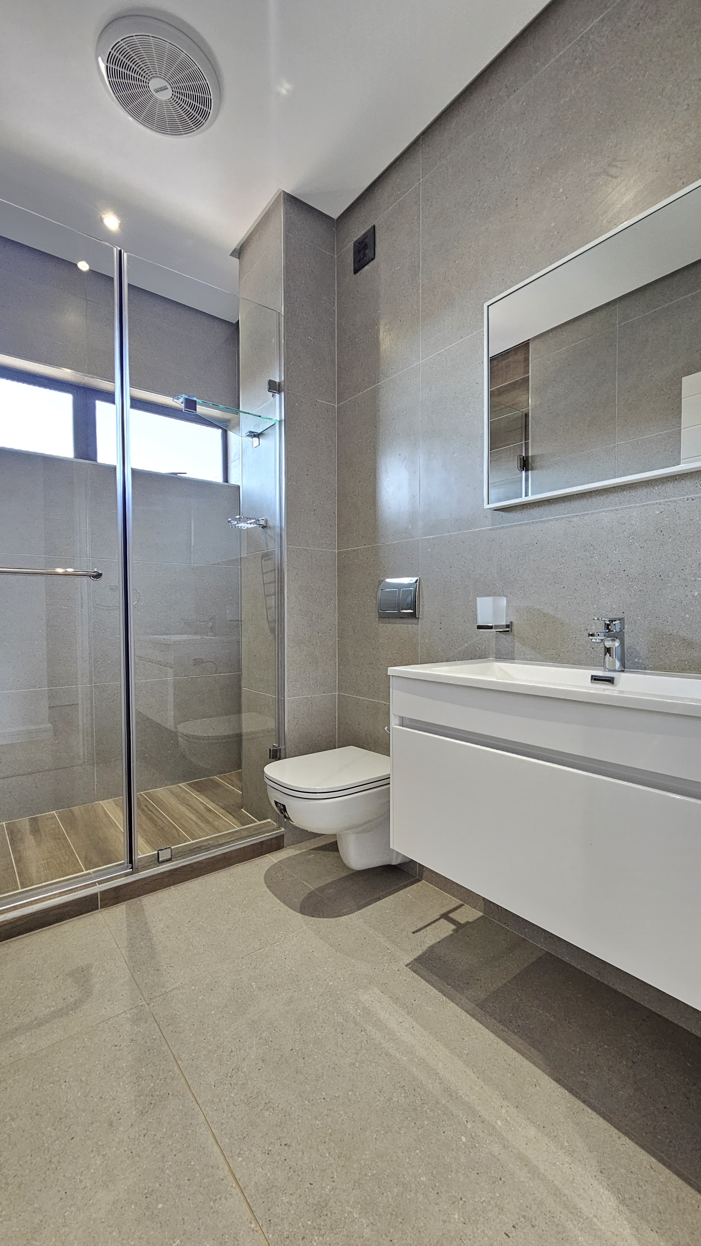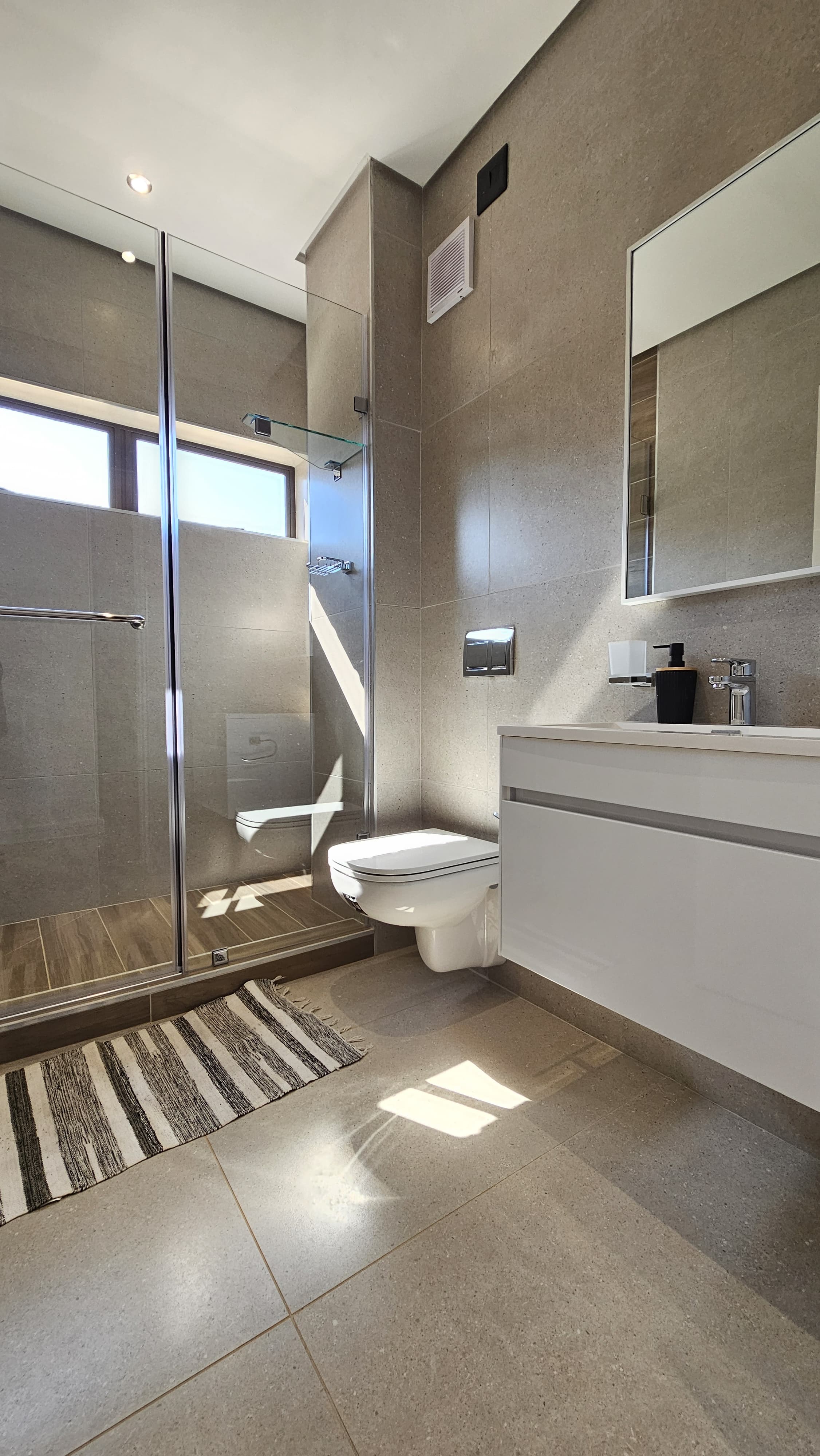 This stunning home offers four well-appointed bedrooms. Three are located upstairs, each boasting its own stylish en-suite bathroom, ensuring privacy and comfort.