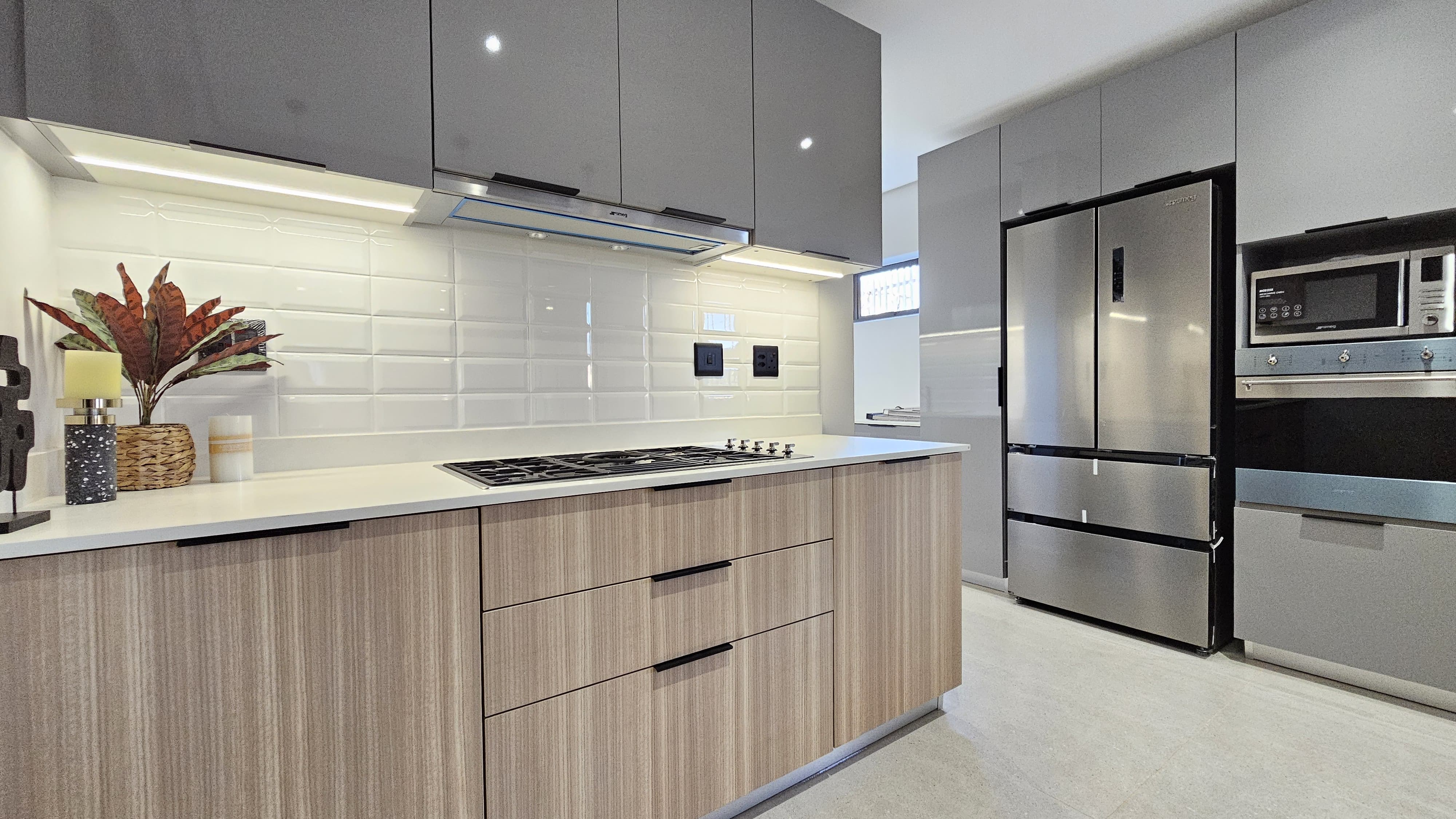 The modern kitchen features sleek, contemporary finishes and includes a separate scullery, ideal for discreet meal prep and cleanup. It opens onto an adjoining outdoor service yard for added day-to-day convenience.