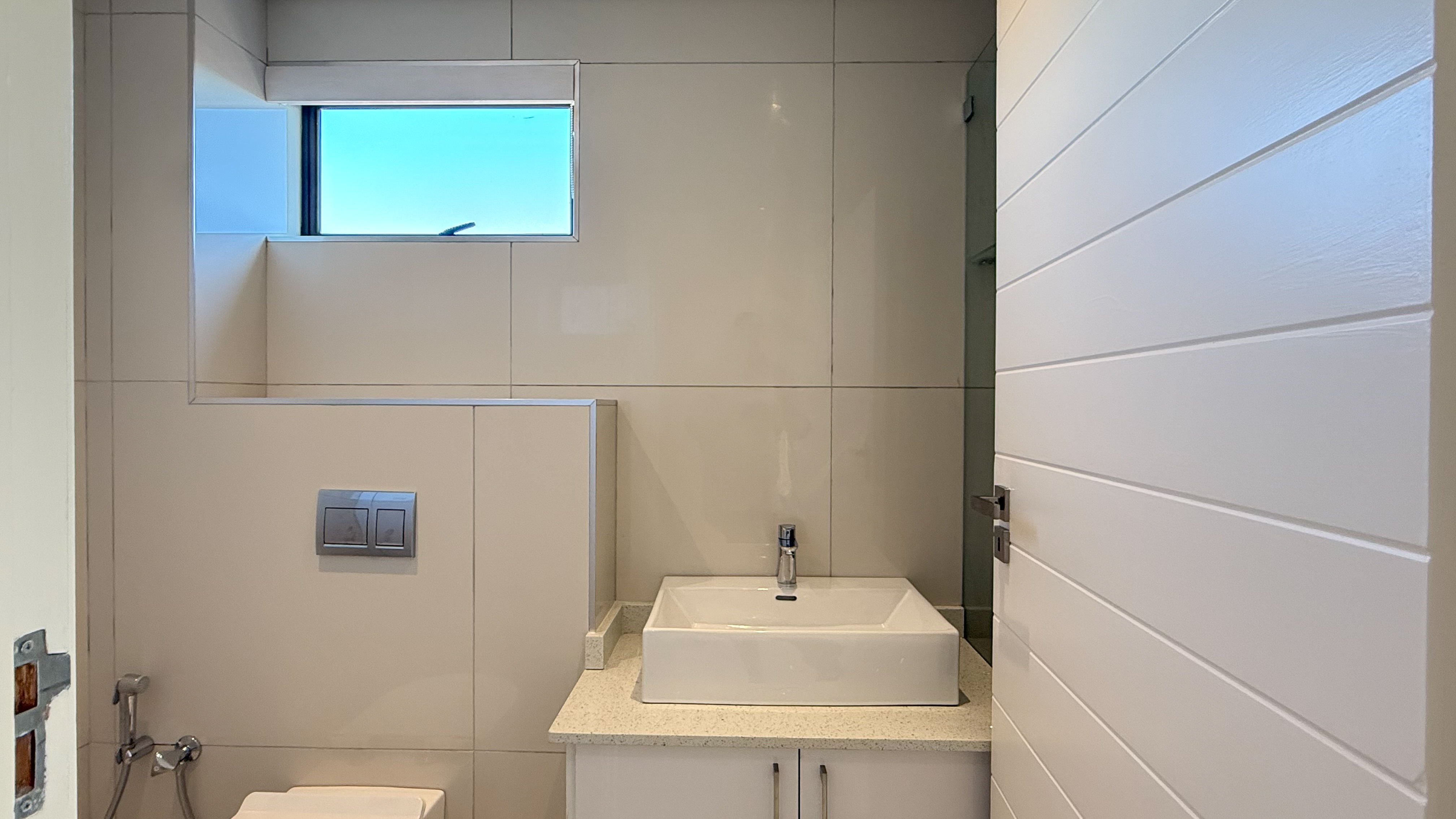 The top level offers a flexible space that can be used however you like — a cozy TV lounge, a quiet home office, or even a playroom for the kids. There’s also a generous fourth en-suite bedroom, ideal for visiting guests or extended family who’ll love the extra privacy and elevated views. The balcony up here is a perfect spot to catch the sea breeze with your morning coffee or a sundowner.