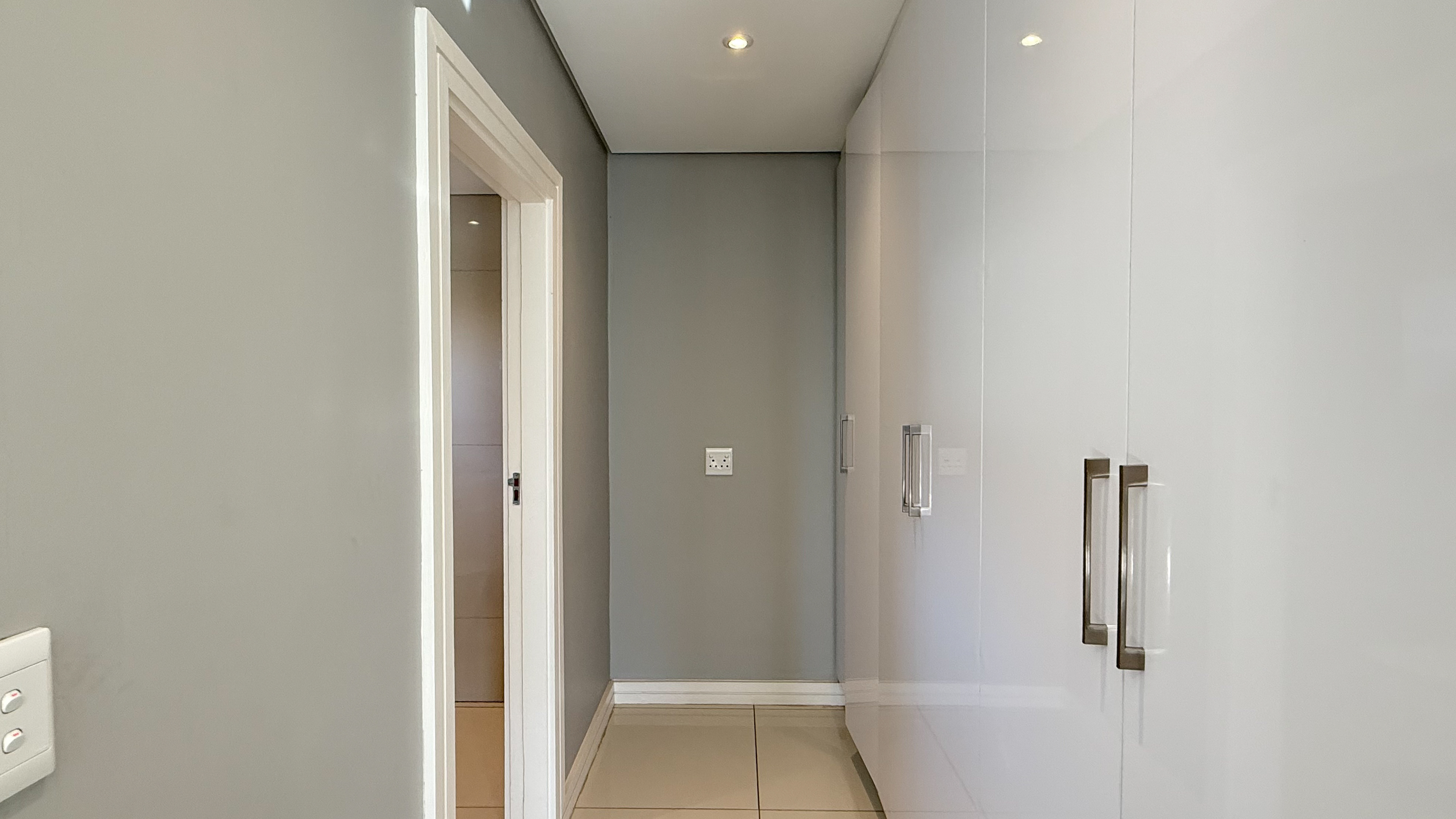 As you walk through the front door, you're greeted by an inviting open-plan living area where the kitchen, dining, and lounge flow seamlessly together. The sleek, modern kitchen is a standout — complete with a separate scullery, ideal for keeping things tidy while entertaining. Large stacking doors open up the living area to a covered patio and level garden, creating the perfect indoor-outdoor setup for weekend braais or relaxed afternoons in the sun. There's also a guest powder room tucked away on this level for added convenience.