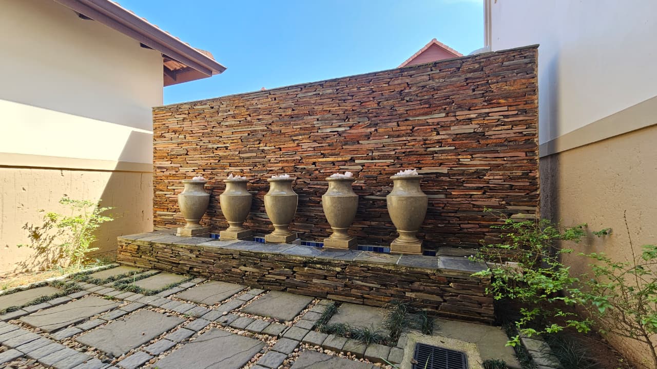 Step outside to a sparkling swimming pool, custom built-in braai and tranquil water feature.