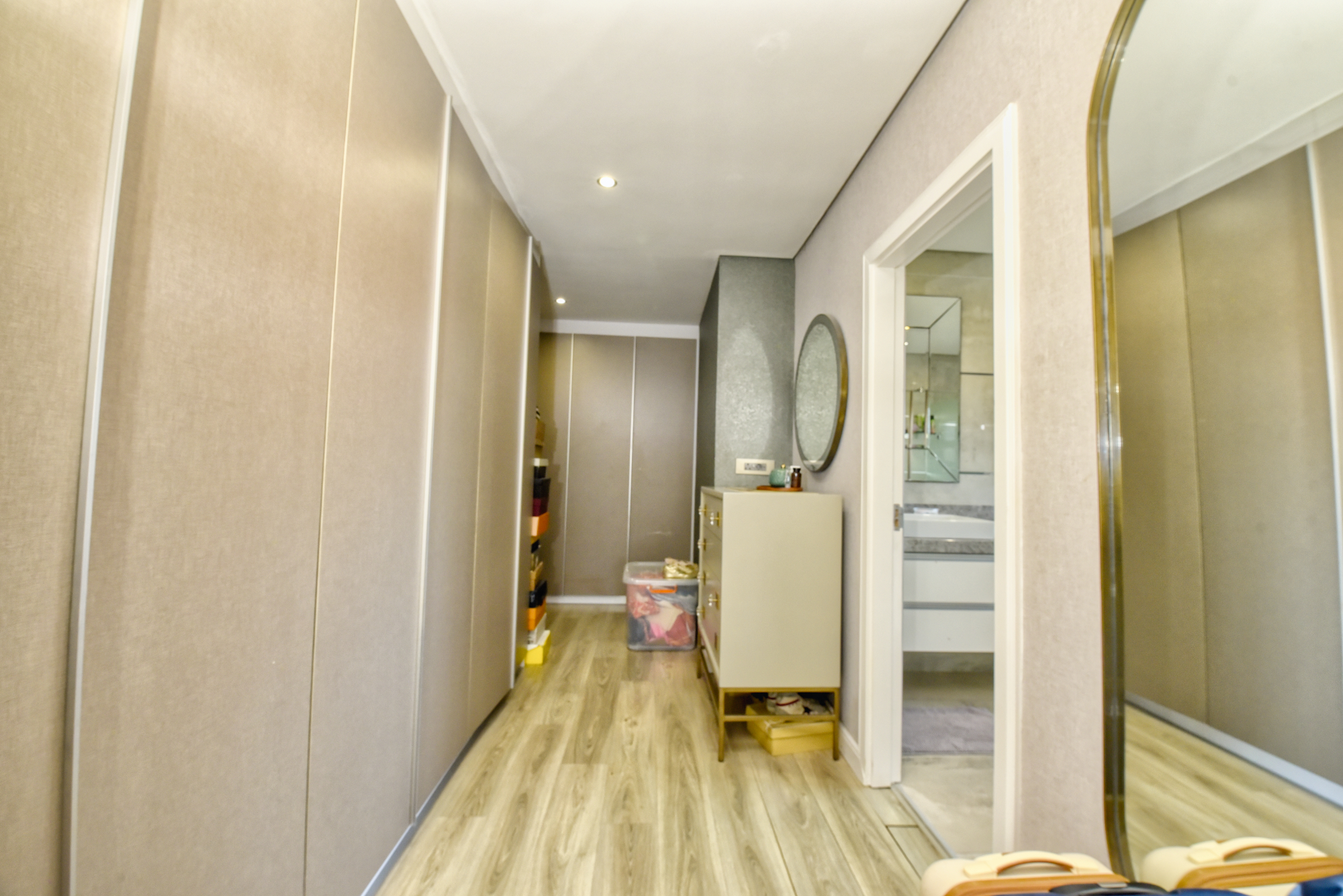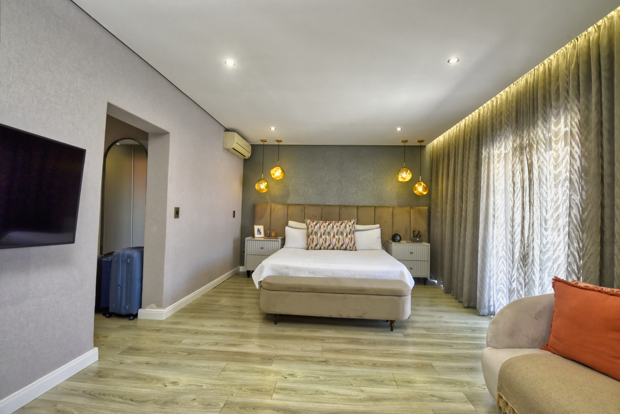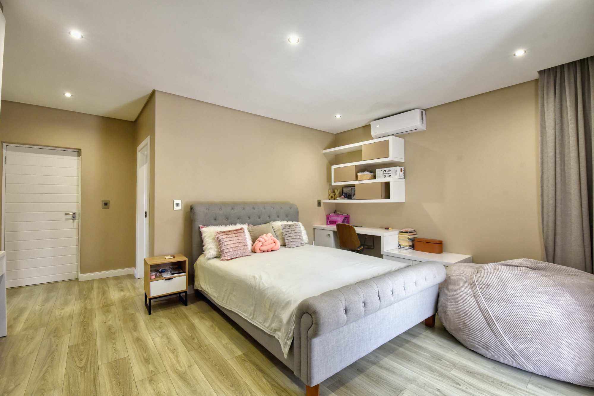 The bedrooms are finished with laminated wooden floors, adding warmth and elegance to the living spaces.