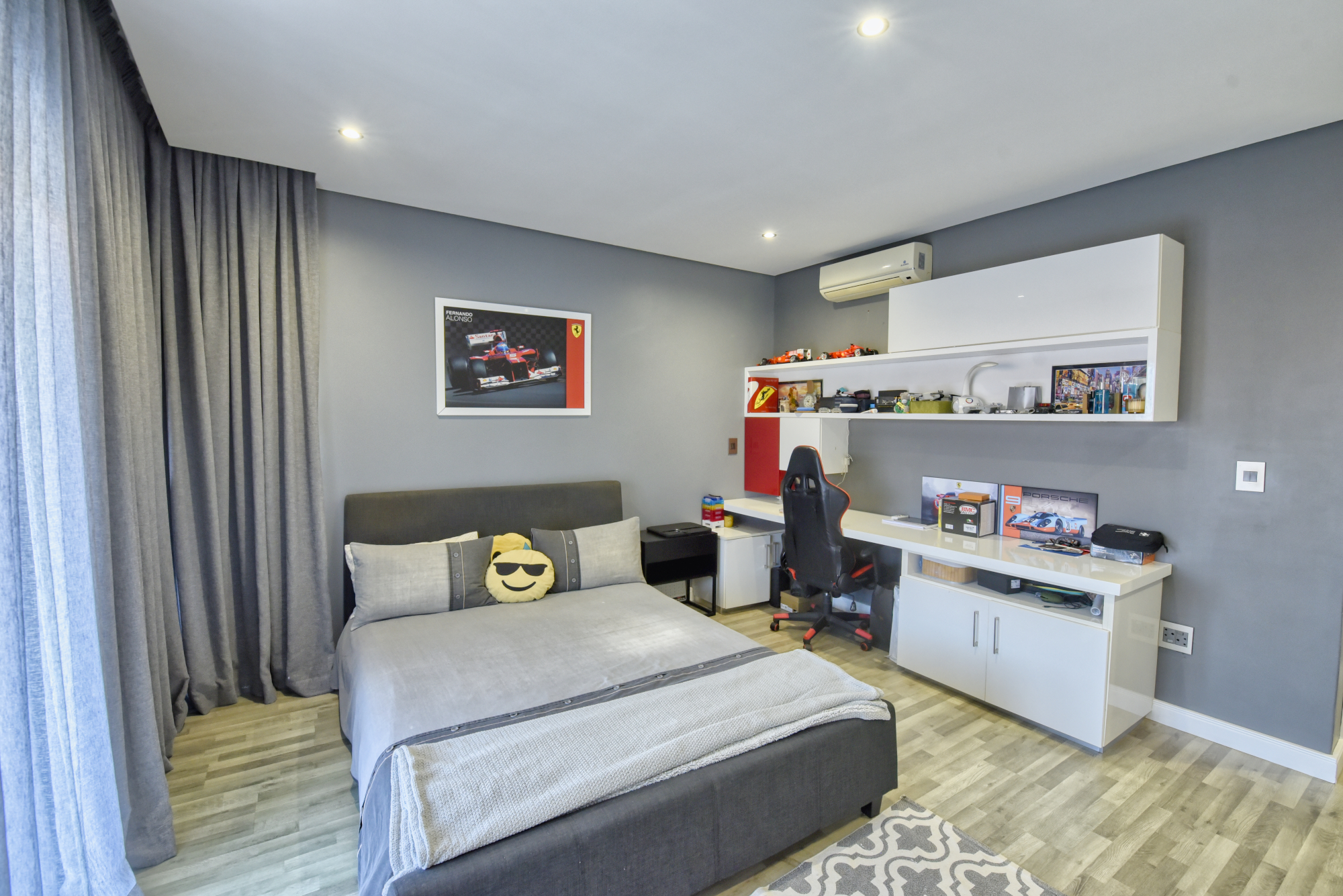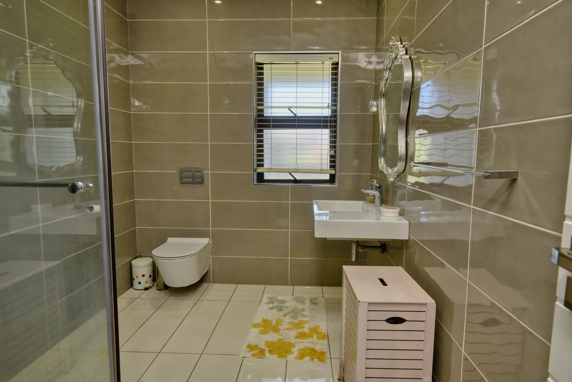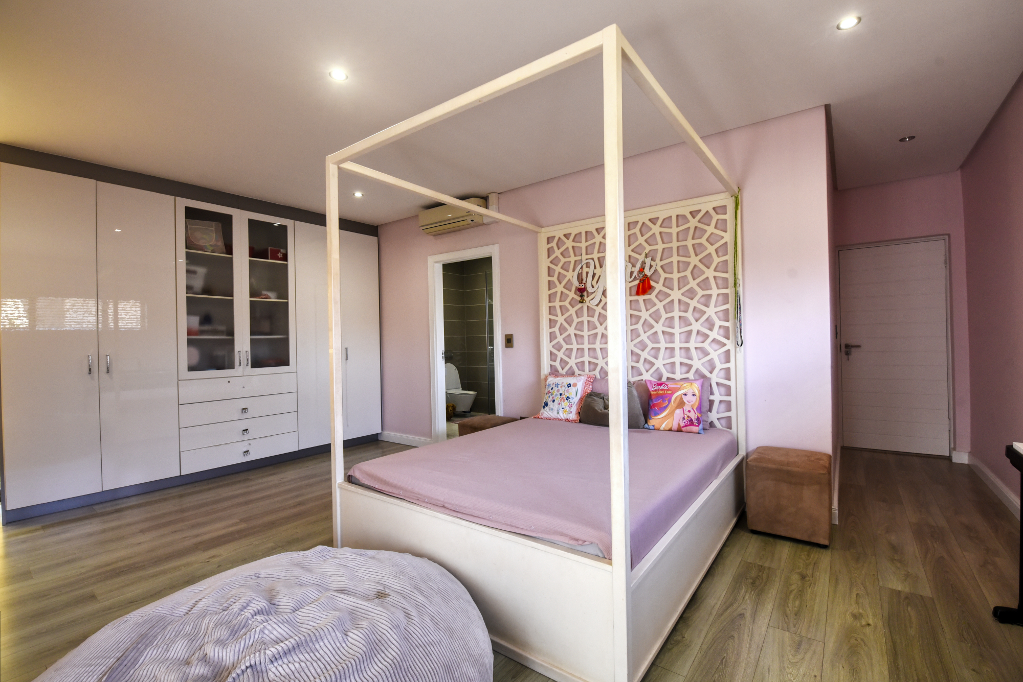 The bedrooms are finished with laminated wooden floors, adding warmth and elegance to the living spaces.