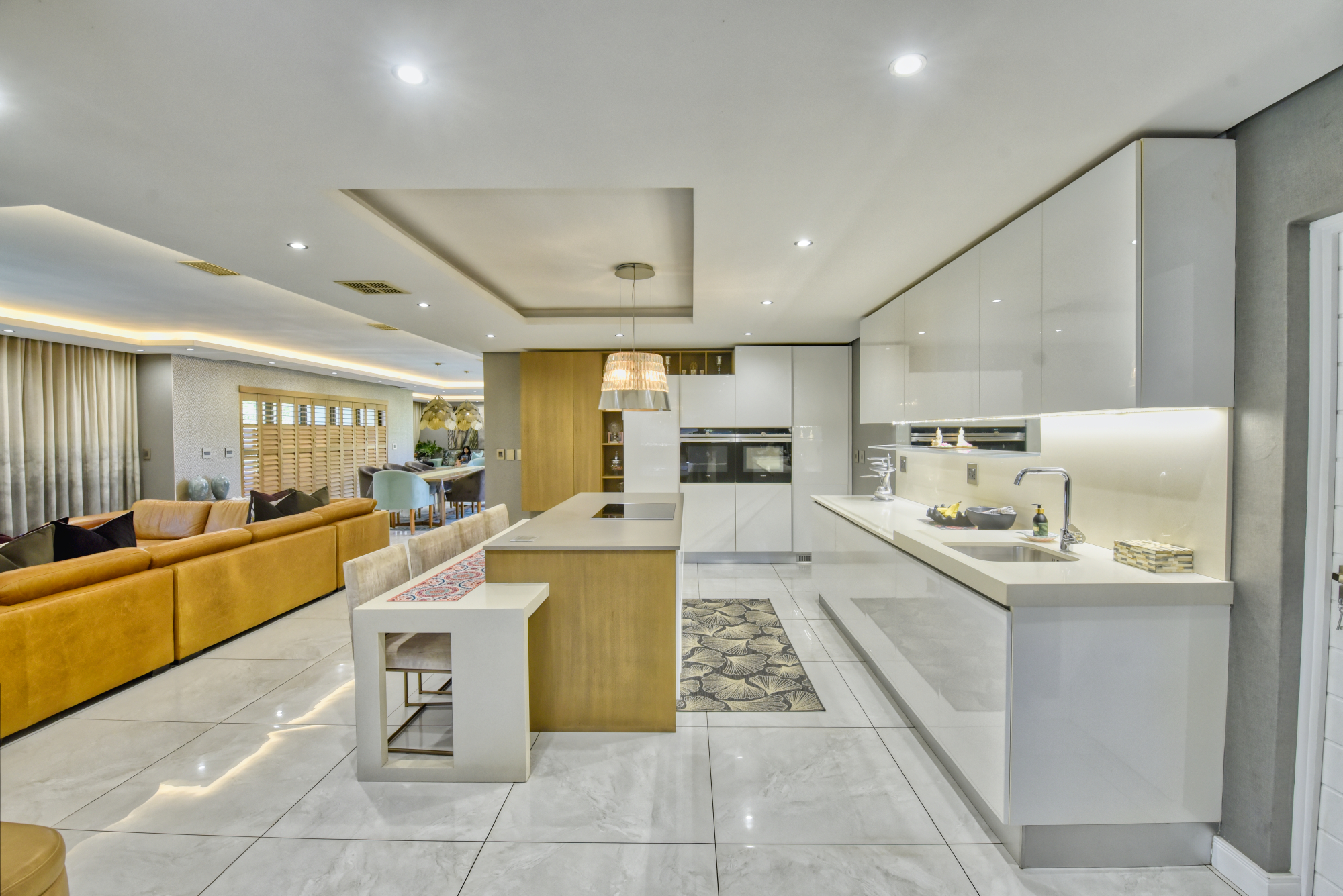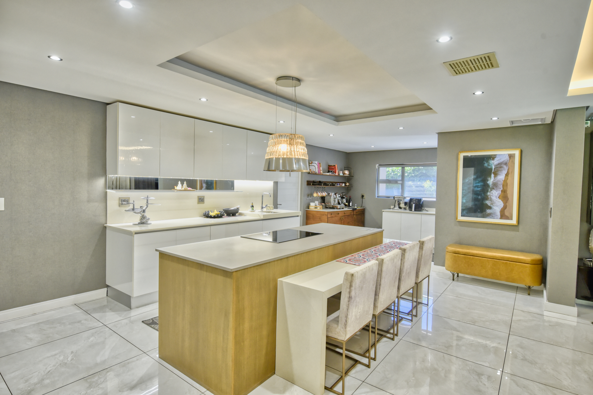 At the heart of the home is a designer kitchen complete with a stylish coffee station, integrated fridge and freezer, quality cabinetry.