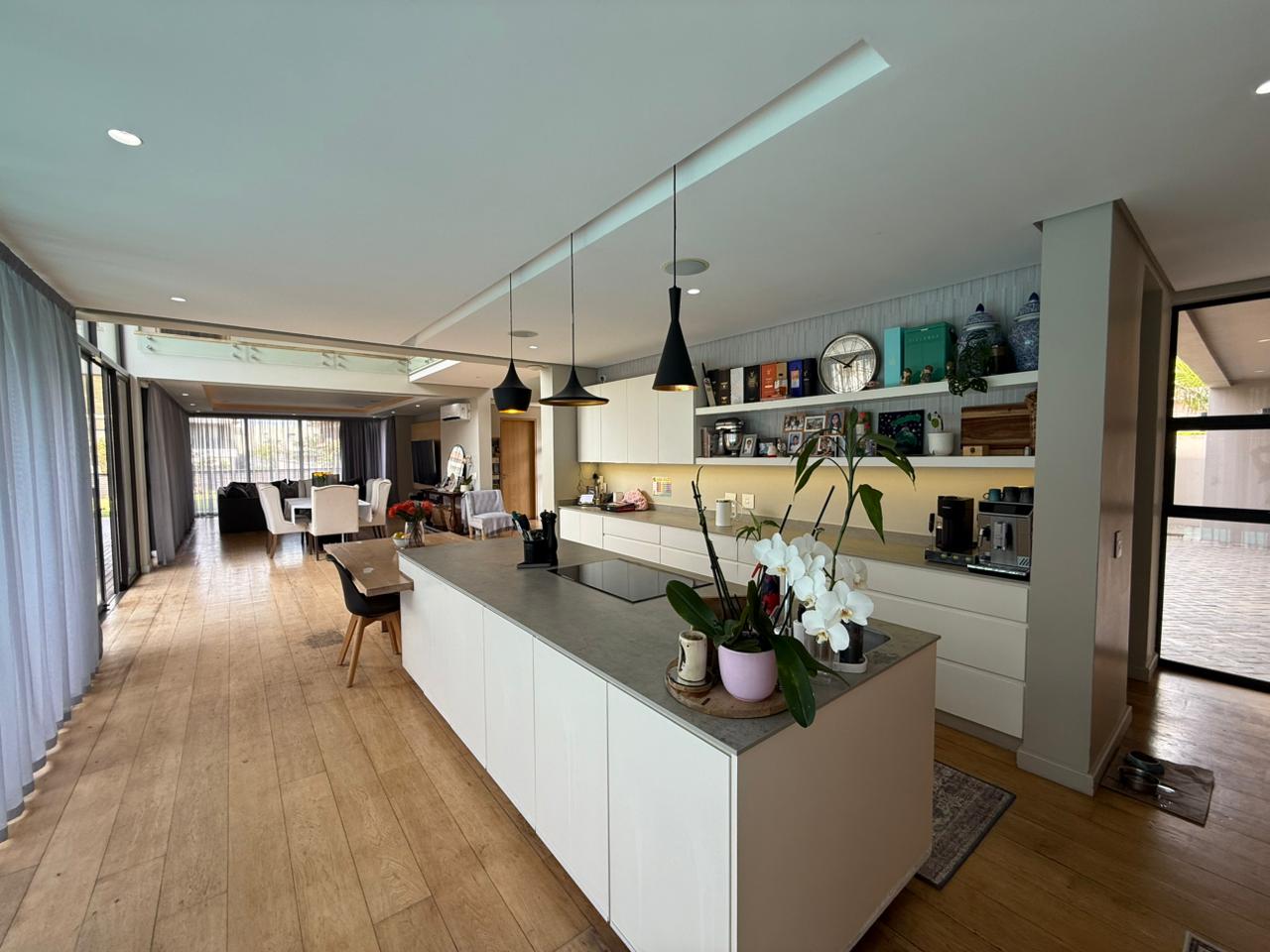Outdoors, you’ll find a dedicated braai and pizza oven area, perfect for social occasions. Adjacent to this is a sunken fire pit, offering a cosy spot to unwind under the stars. For ultimate relaxation, the Jacuzzi and swimming pool provide a private oasis. The open garden is pet friendly. A triple garage and additional on-site parking for up to six more vehicles. The property also includes staff accommodation. Security is a priority on the Estate and enabling residents to enjoy a carefree life.