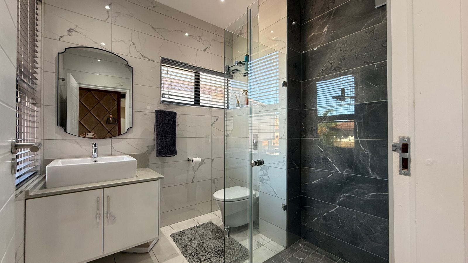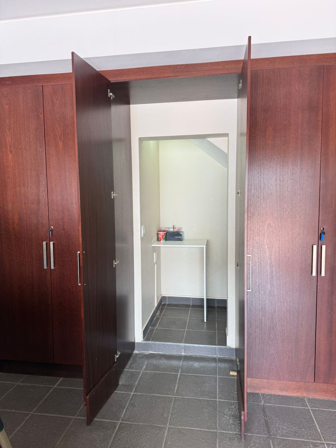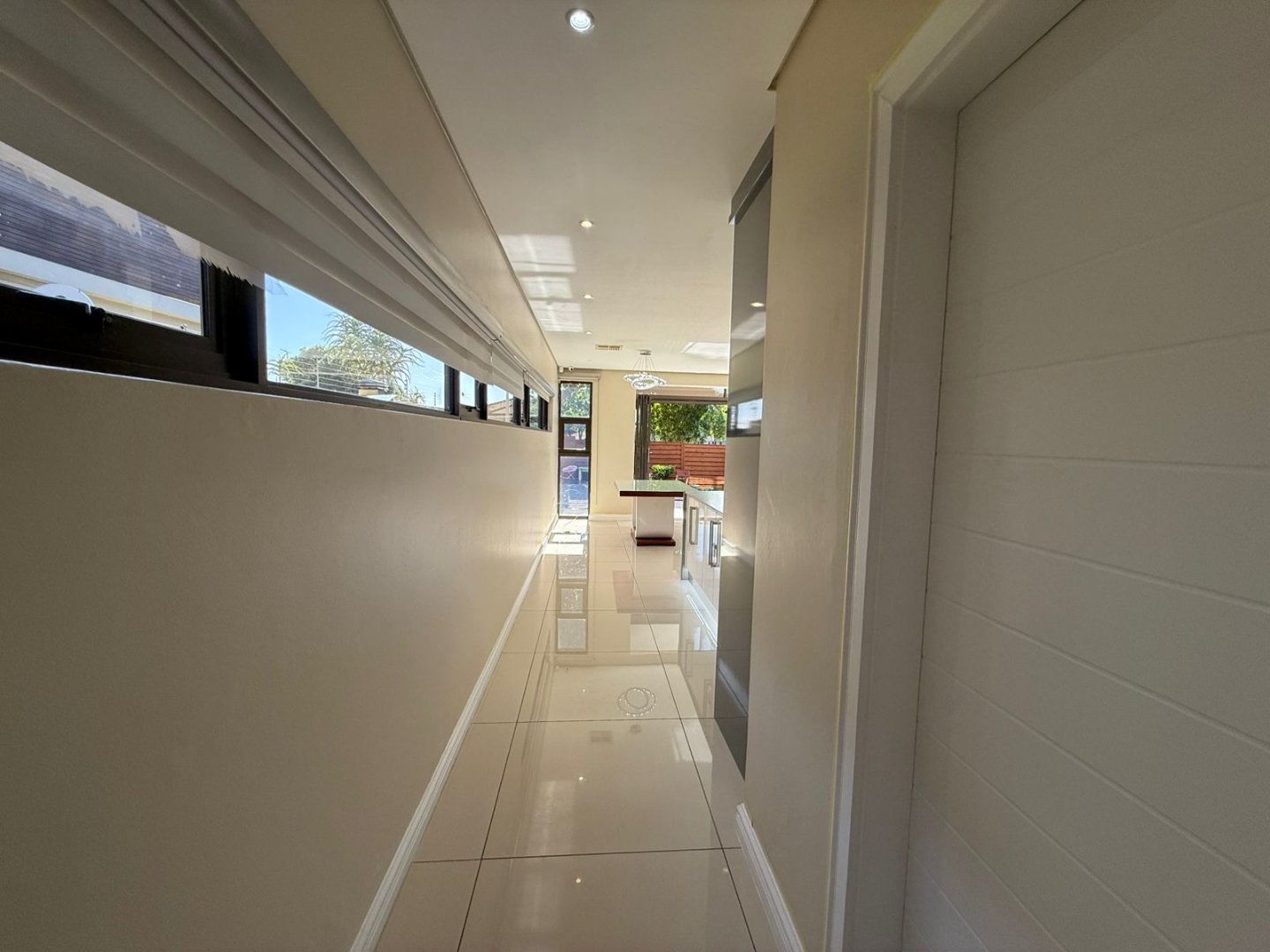A double automated garage with direct access has lots of storage space. The is exclusive use parking for at least 3 vehicles. The enclosed, low maintenance garden is pet friendly. A built in braai and deck area make socialising a requirement. Solar power adds to convenience and assists in keeping costs down. Located in a secure area with manned access control at both the street and complex entrance. Close to excellent schools, business hubs and shopping venues, but far from the everyday madness.