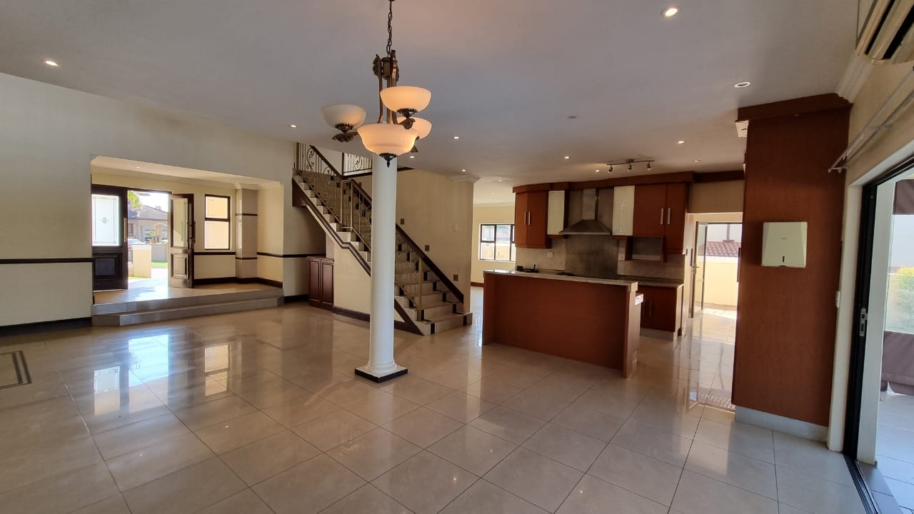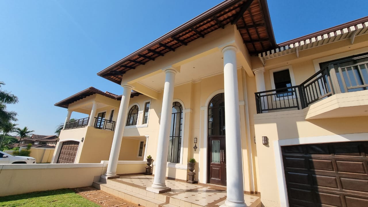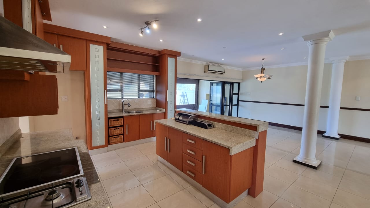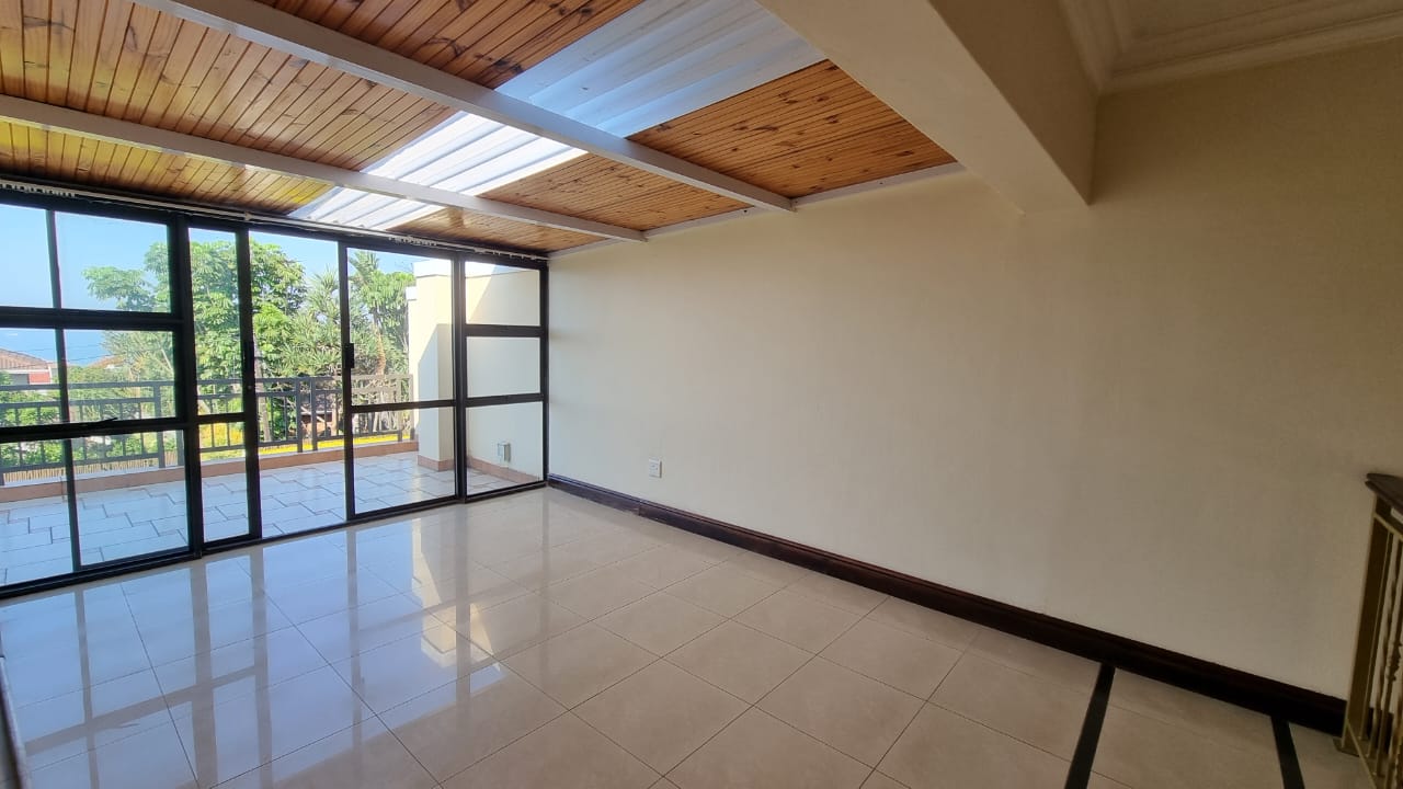 A beautiful double storey duet located in Izinga Ridge offers you luxury and security. 4 spacious en suite bedrooms with balconies and a large open plan living area with built in bar allows one space to enjoy life. A sunroom/office is also located on the first floor. The kitchen is fitted with a gas hob, is plumbed for a double door fridge and has a separate scullery/laundry. A patio which can be enclosed looks out over the private pool and garden area.