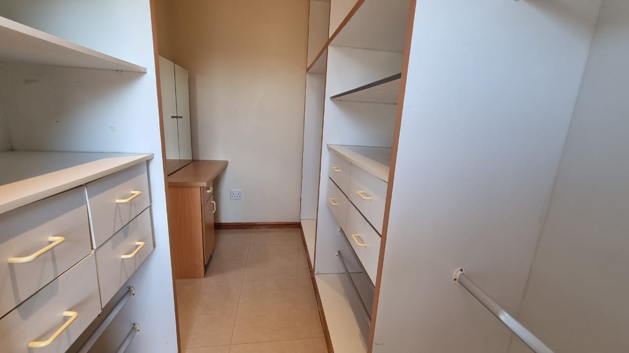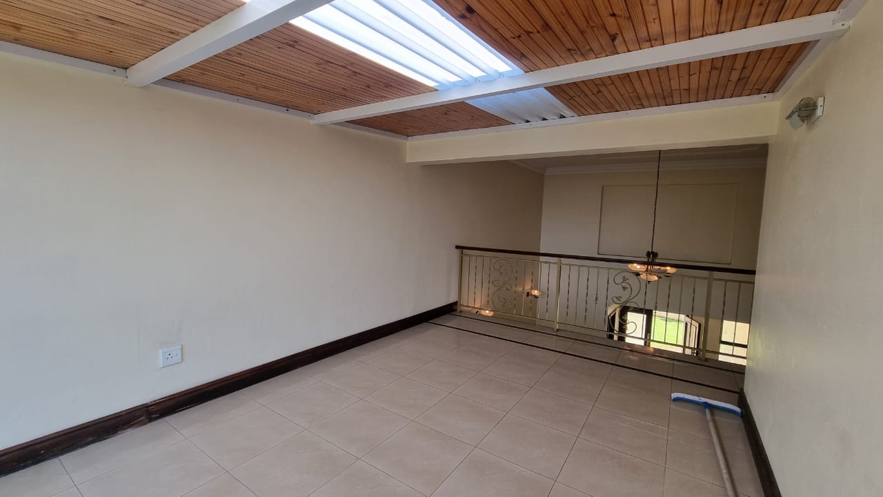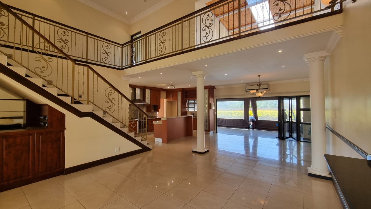 There is a double automated garage which has direct access as well as ample driveway parking. Domestic quarters are on the premises. Water tanks ensure there are no shortages. Gardens are cared for at an extra cost per month. The Izinga Ridge Estate is very safe with manned access control.