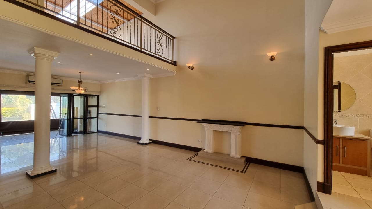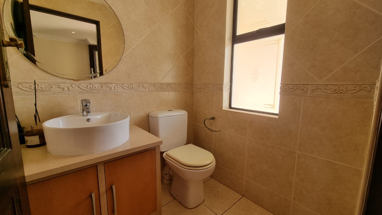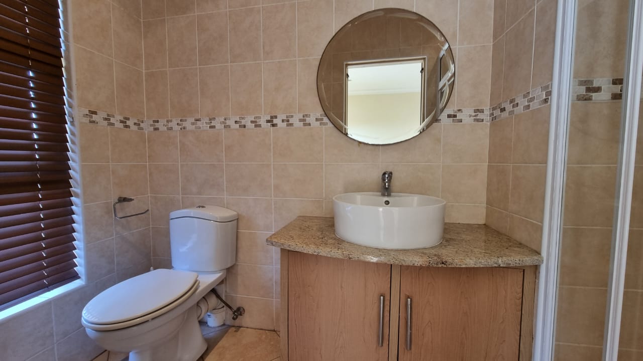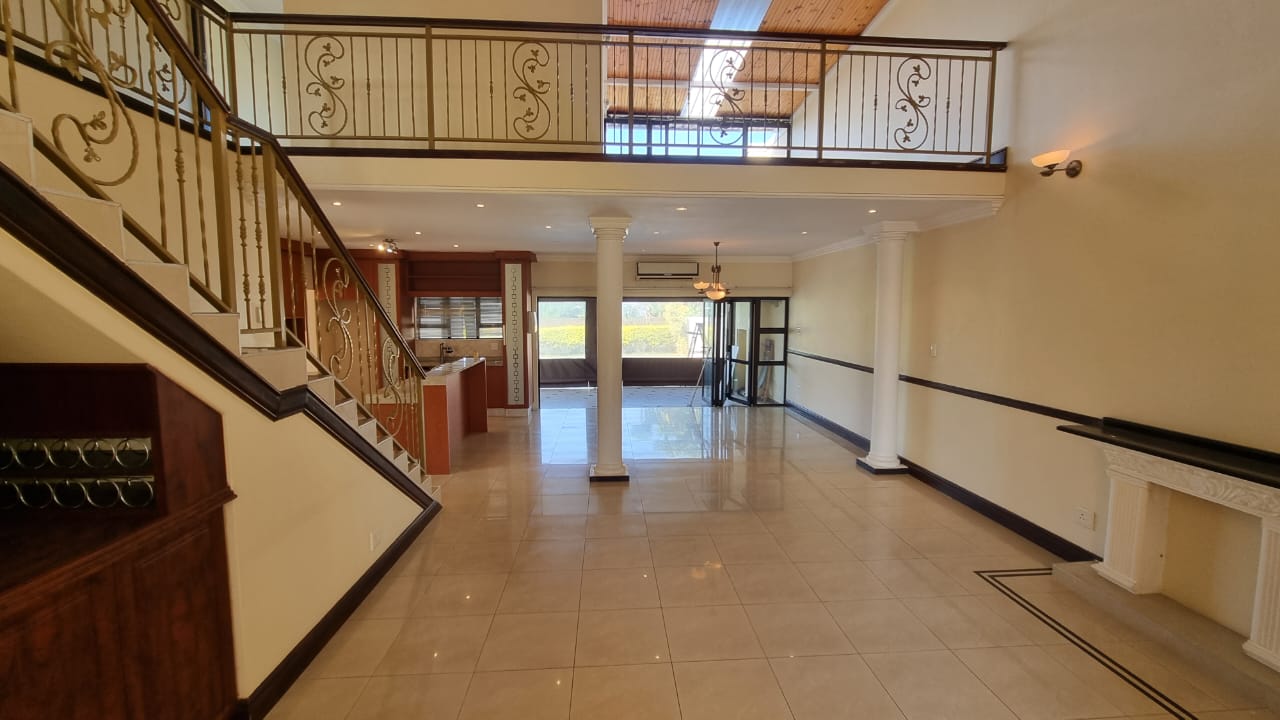 There is a double automated garage which has direct access as well as ample driveway parking. Domestic quarters are on the premises. Water tanks ensure there are no shortages. Gardens are cared for at an extra cost per month. The Izinga Ridge Estate is very safe with manned access control.