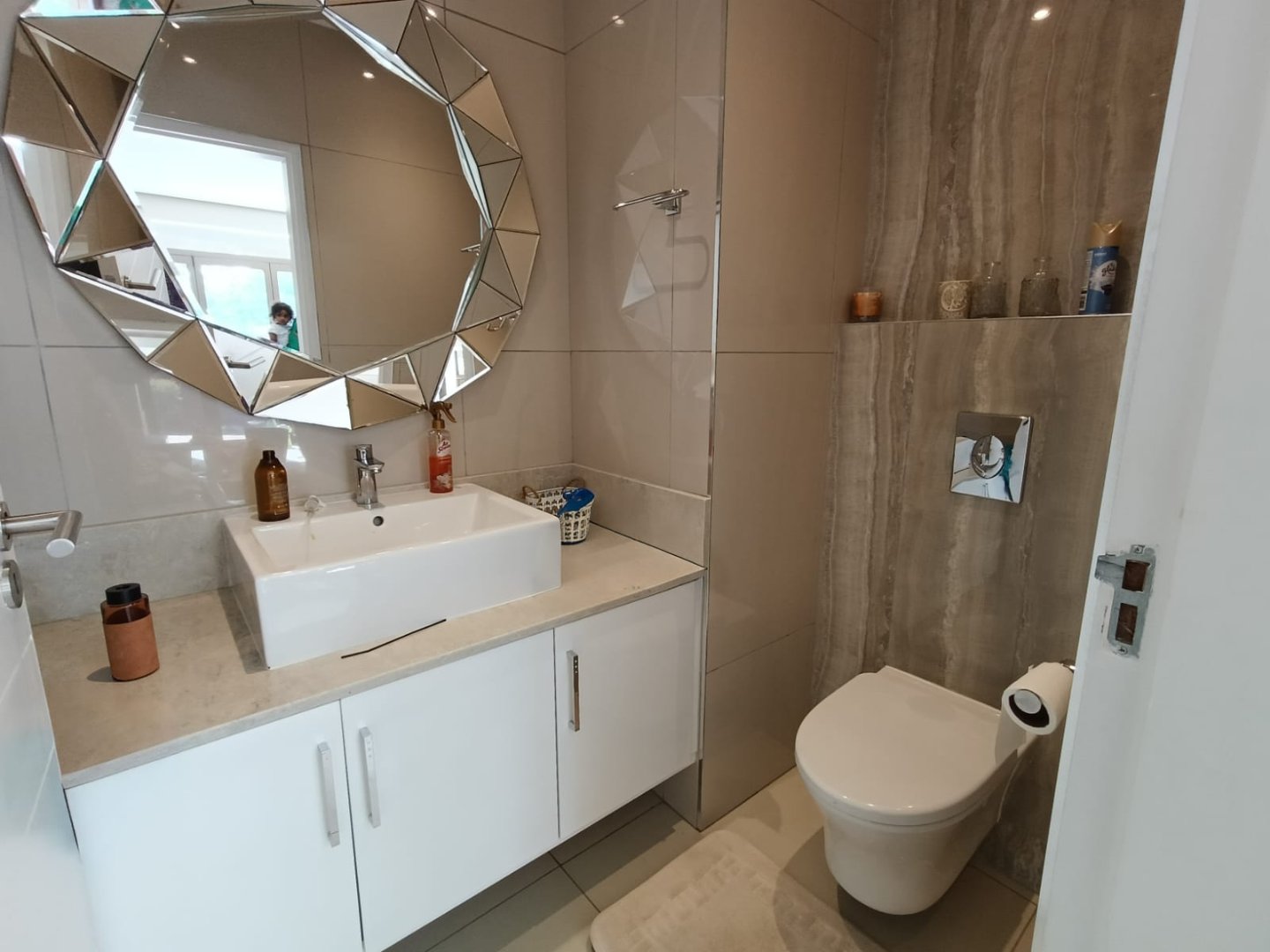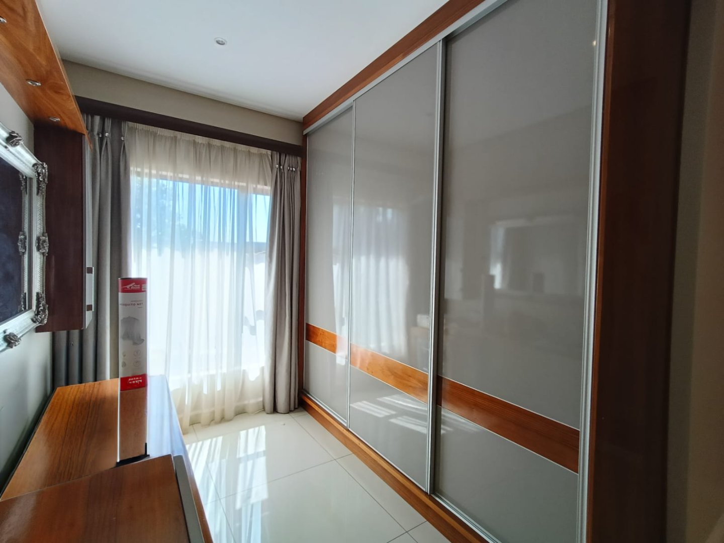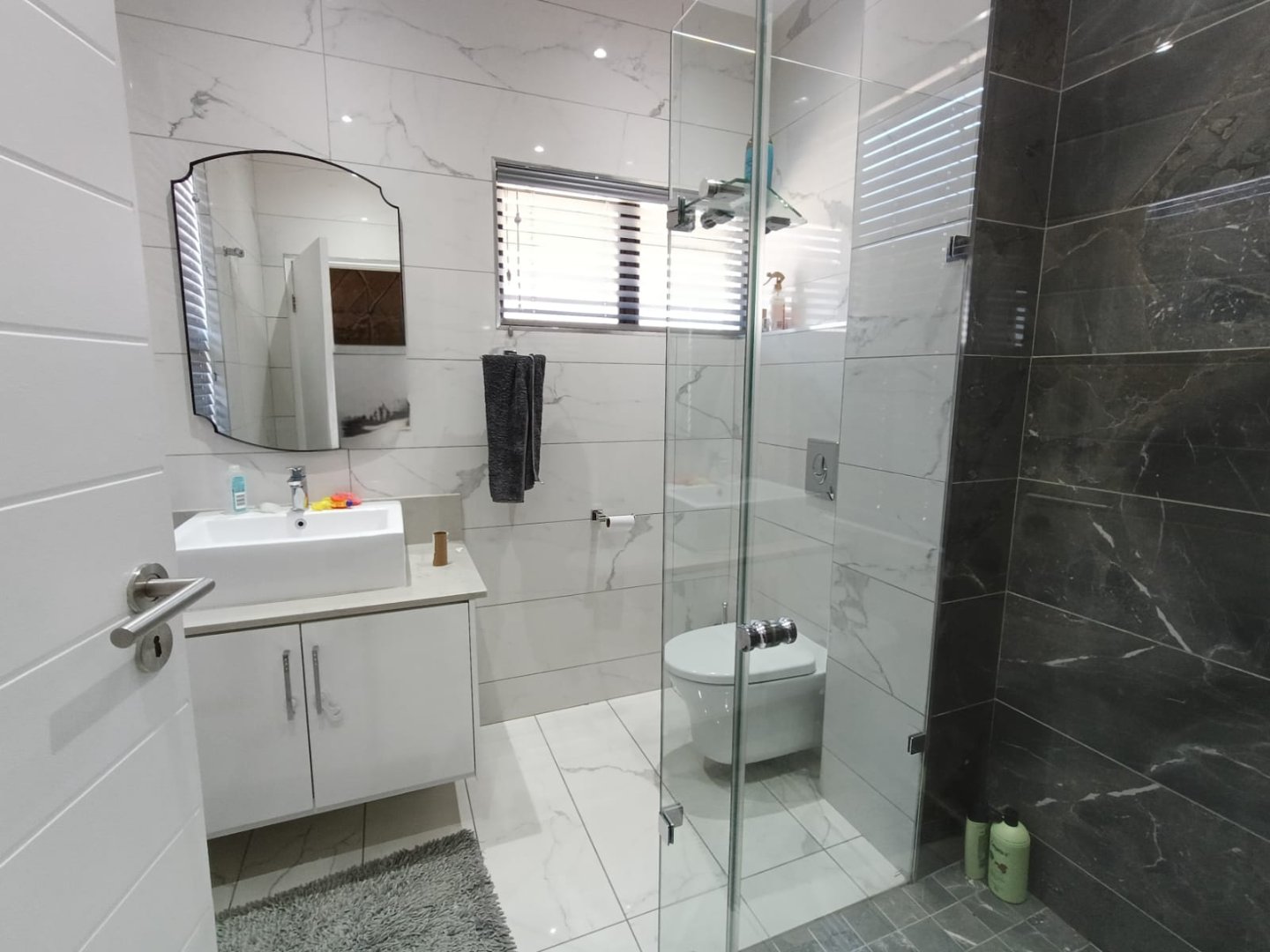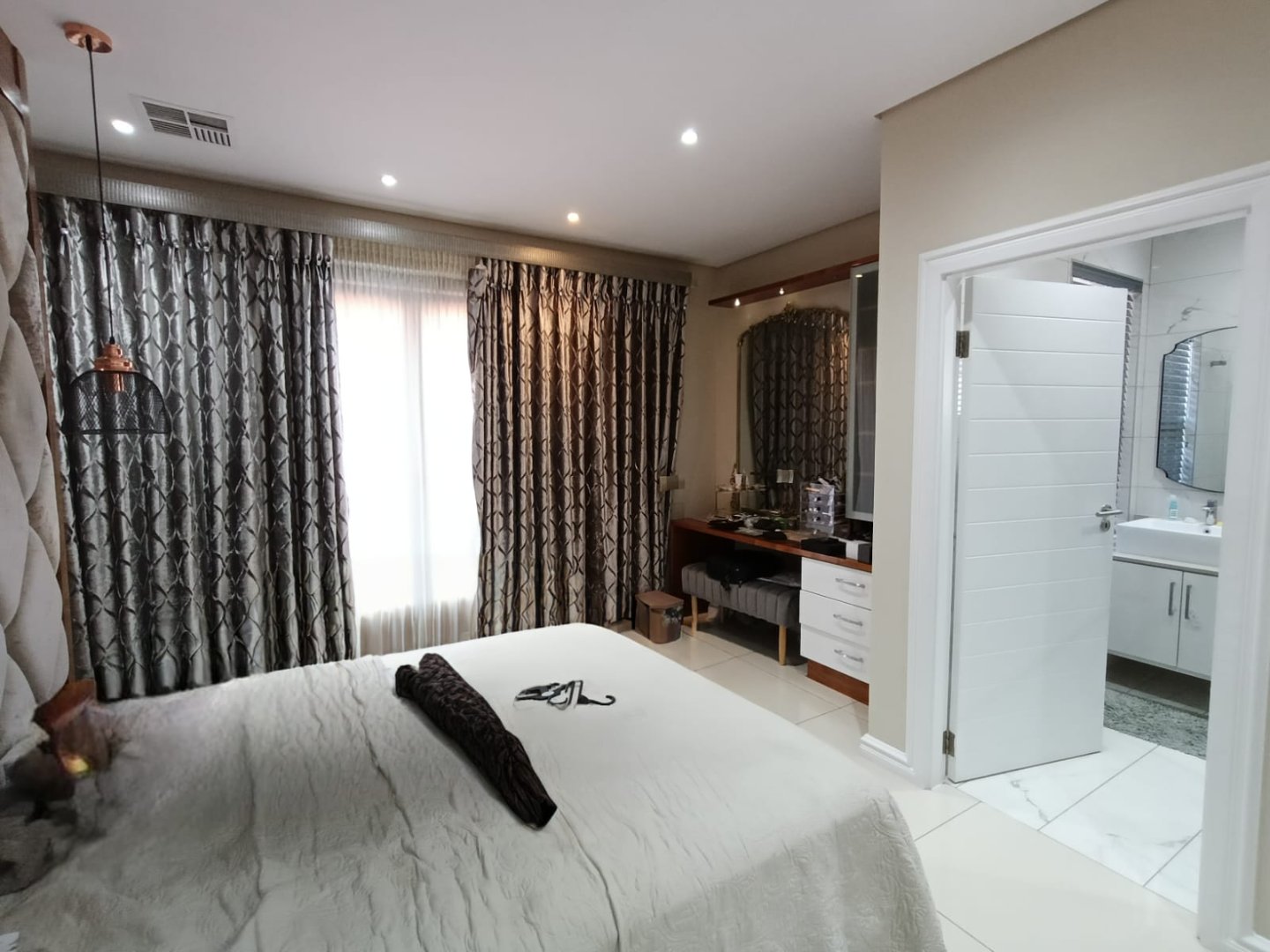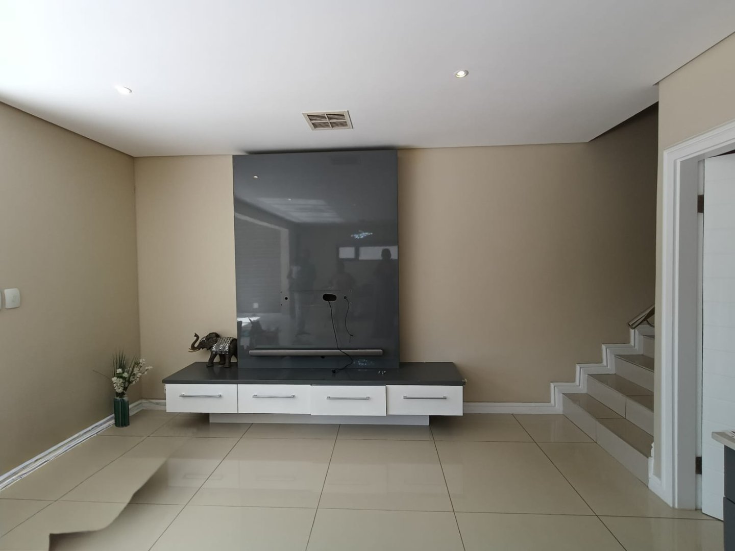 A double automated garage with direct access has lots of storage space. The is exclusive use parking for at least 3 vehicles. The enclosed, low maintenance garden is pet friendly. A built in braai and deck area make socialising a requirement. Solar power adds to convenience and assists in keeping costs down. Located in a secure area with manned access control at both the street and complex entrance. Close to excellent schools, business hubs and shopping venues, but far from the everyday madness.