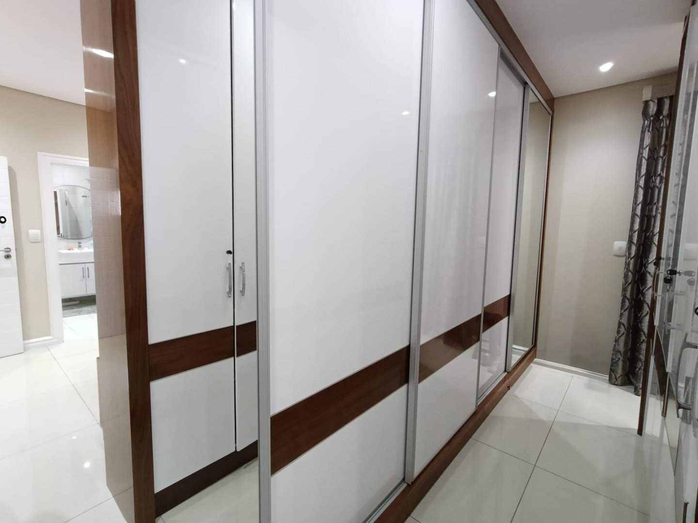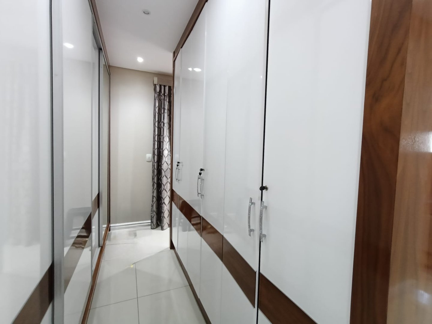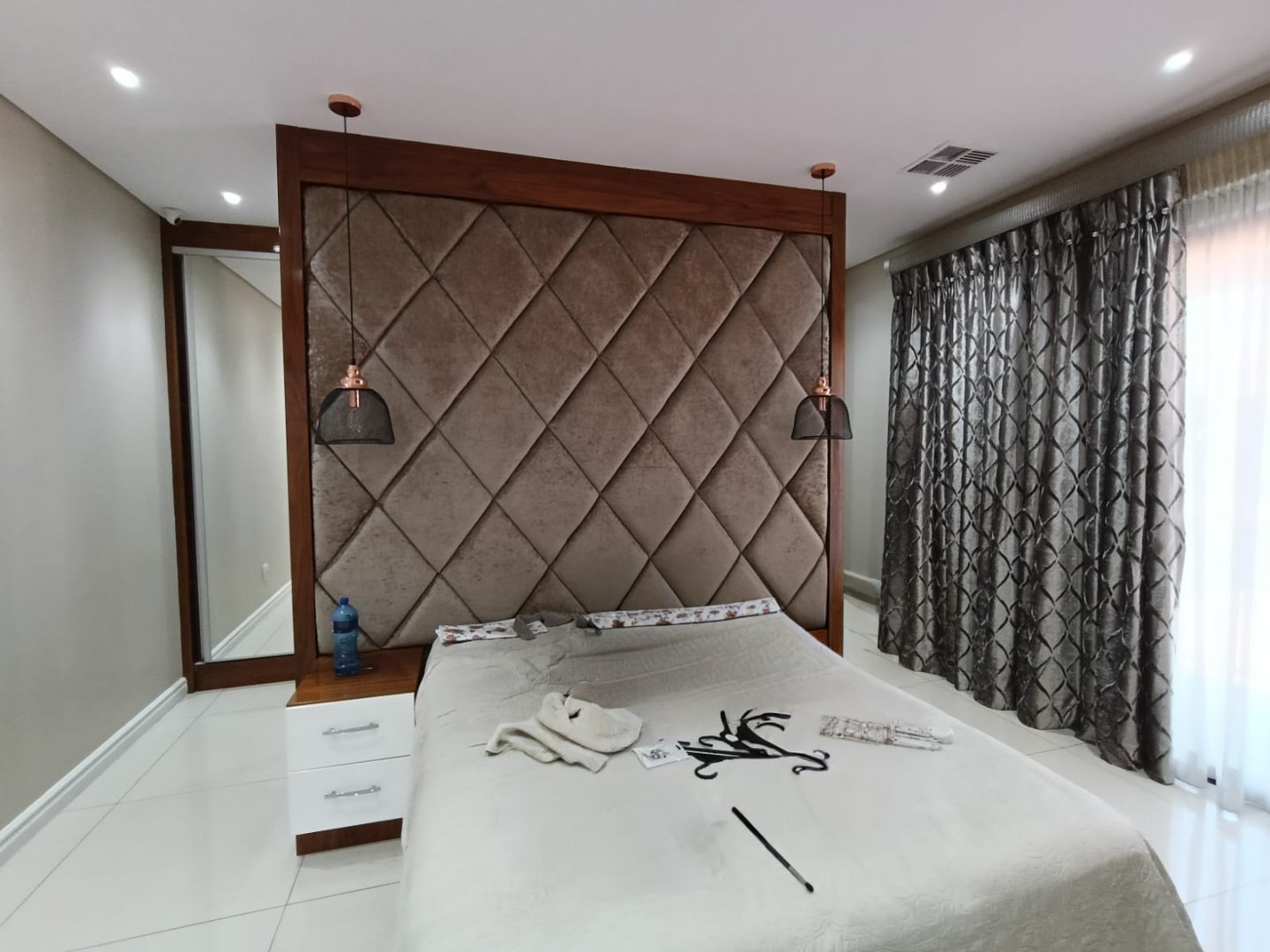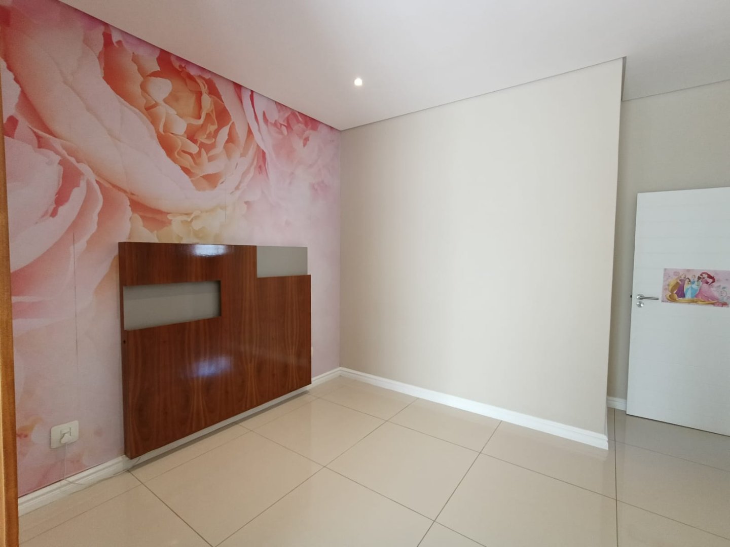 A private corner townhouse in secure Izinga Estate. The spacious open plan lounge opens to a covered patio which flows into the enclosed, pet friendly garden with a built in braai. The full length lounge windows have a drop down blackout blind. The kitchen has ample storage space and features a centre island with gas cooker. The 3 bedrooms and 2 bathrooms are upstairs, the main having a beautiful walk in closet and en suite bathroom. The 2 other bedrooms are a generous size with loads of cupboard space. There is a full family bathroom. The PJ lounge is central to all the bedrooms.