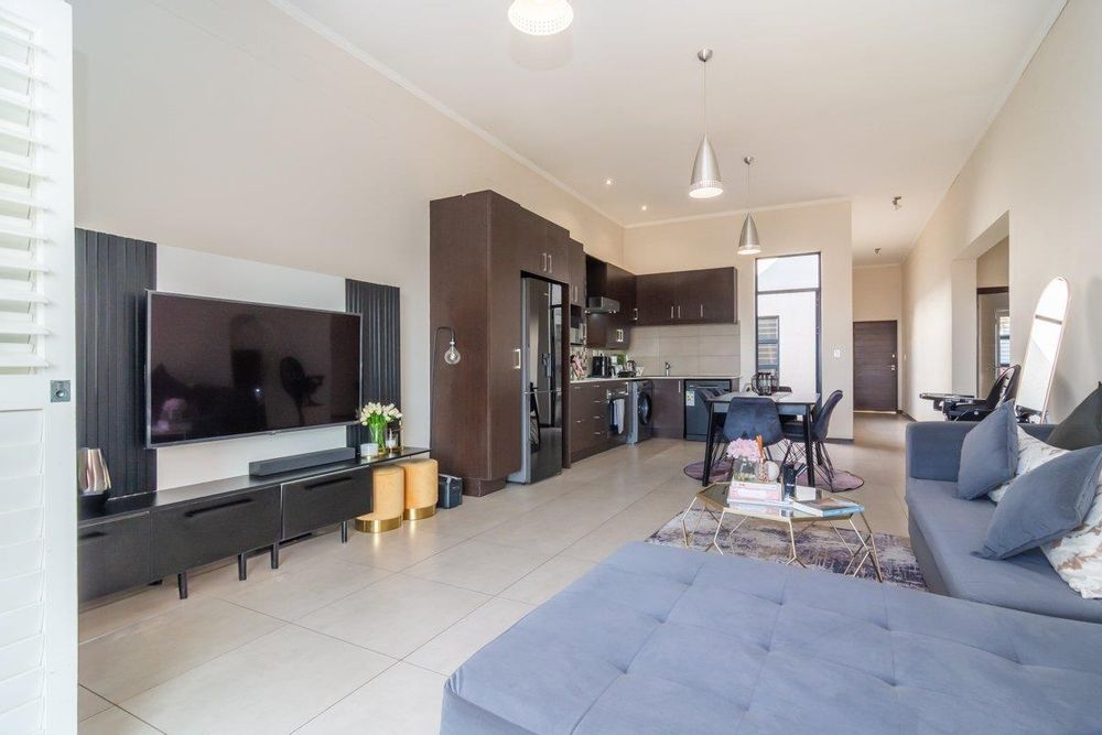 The sliding door seamlessly connects the living space to a tiled covered patio, perfect for indulging in panoramic views that stretch as far as the majestic Magaliesberg mountains. Ideal for morning coffees or intimate gatherings.