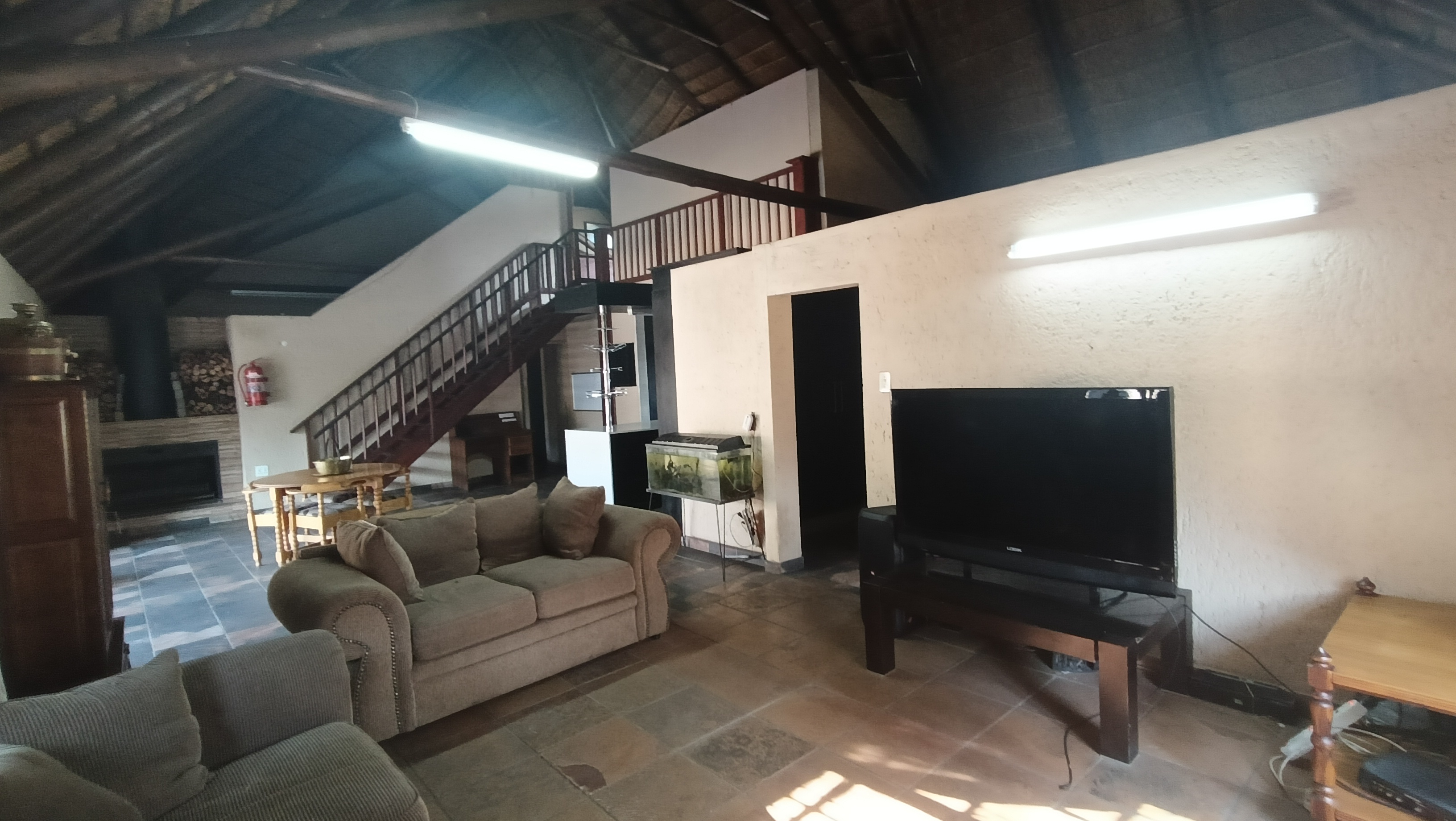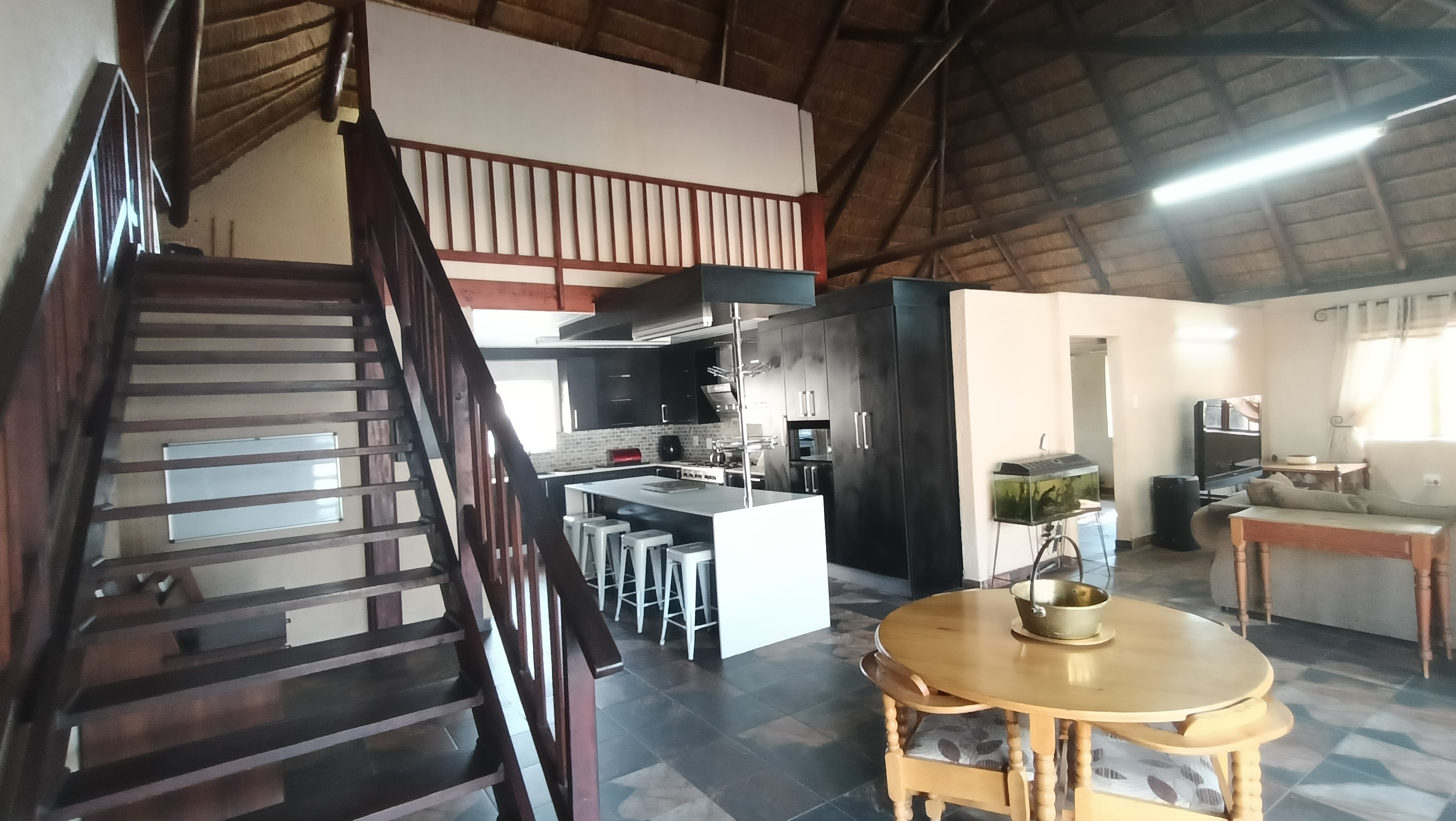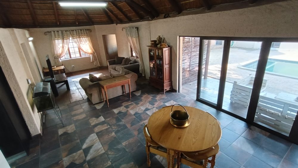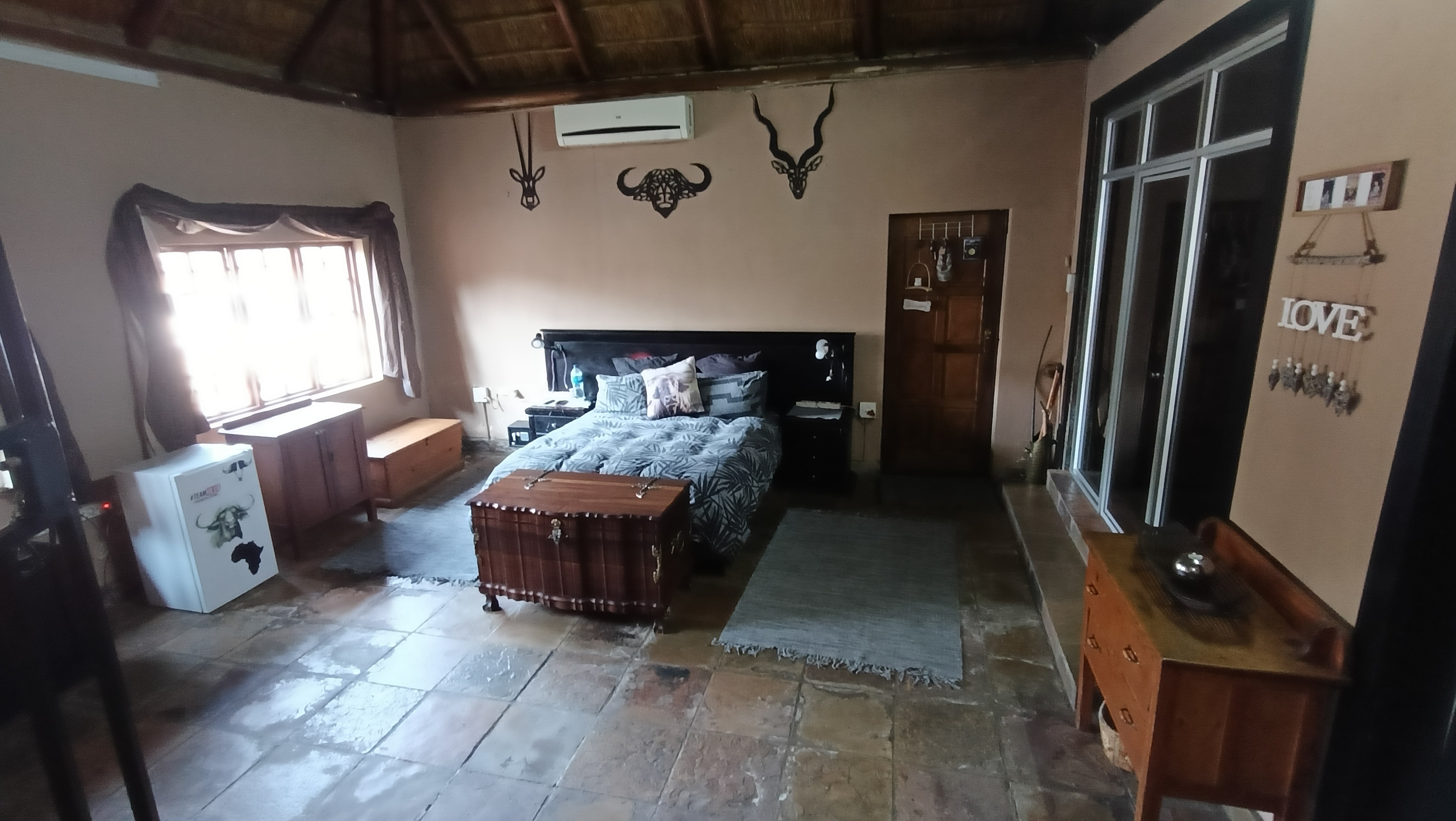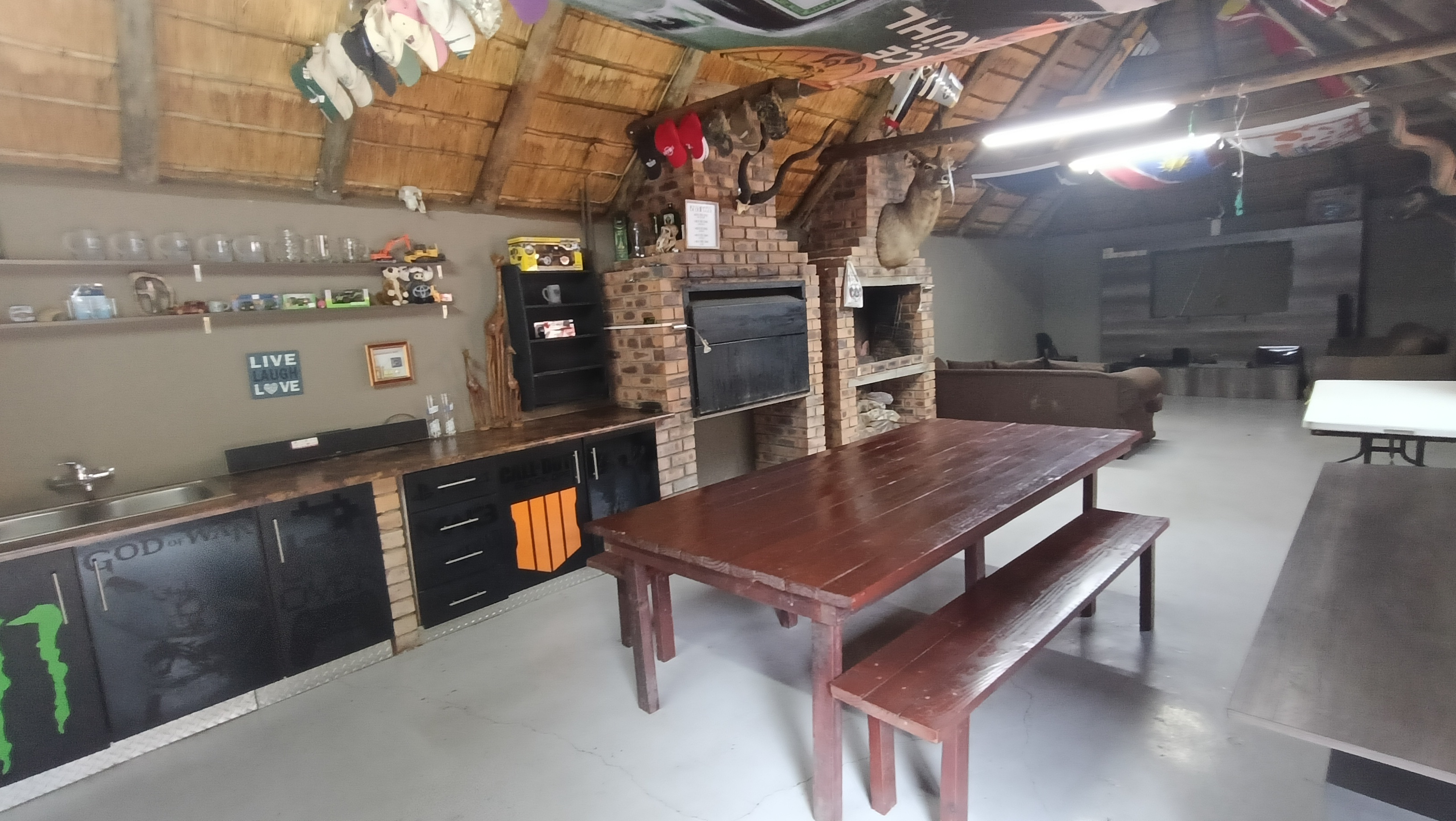 Set on a generous 2.2-hectare plot, this inviting property combines comfort and charm. The main house welcomes you with a cozy feel, featuring two garages and covered parking for ten vehicles. A courtyard pool adds a refreshing touch to the home. Two boreholes with a pump house keep the grounds lush and self-sufficient, ideal for family life or entertaining.