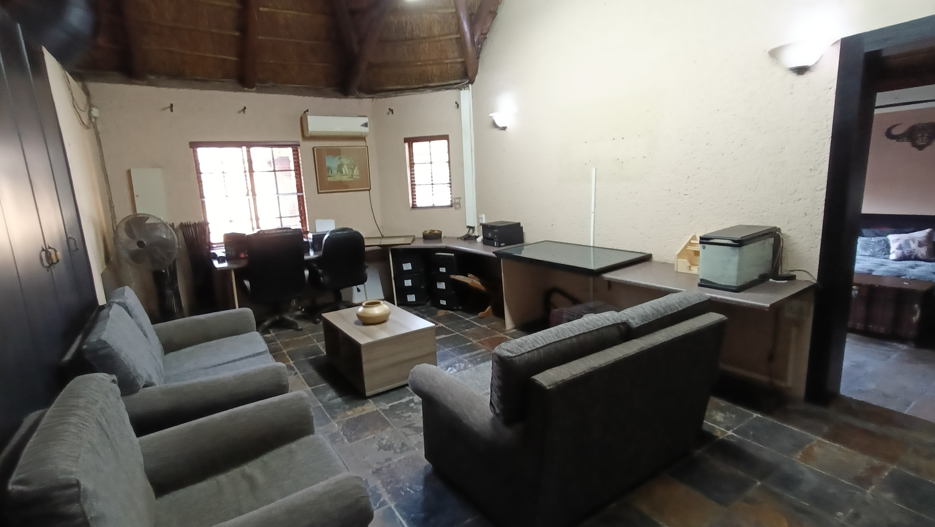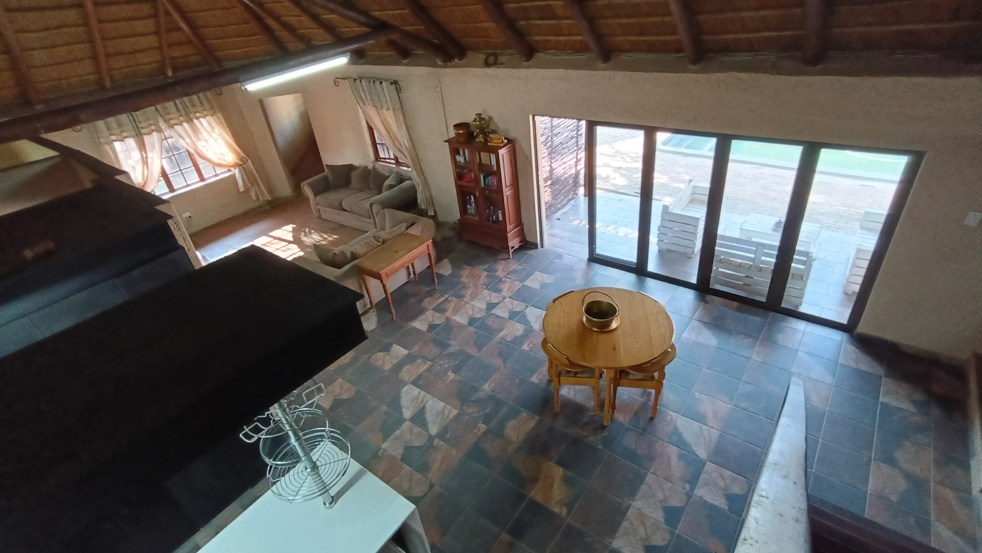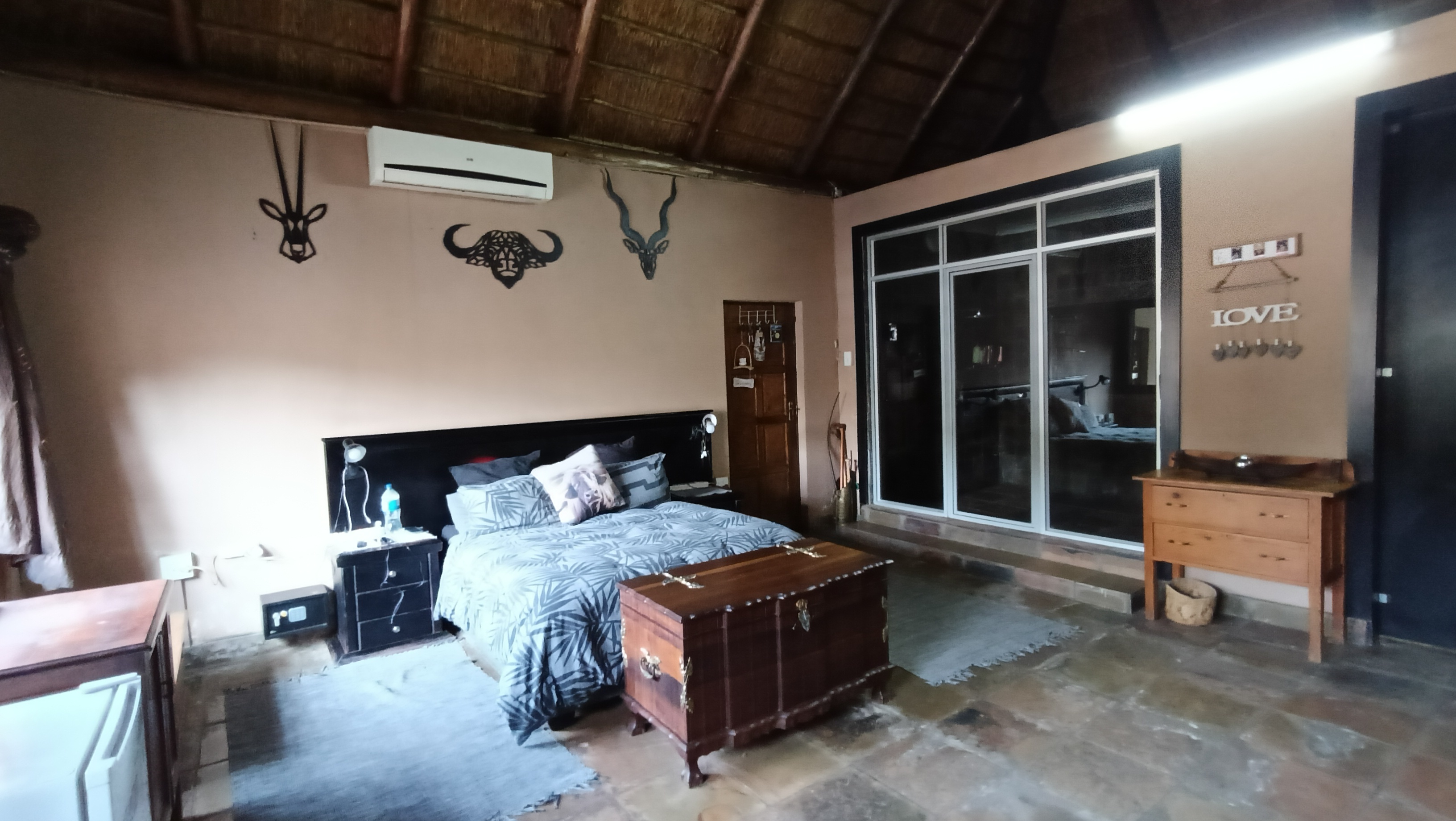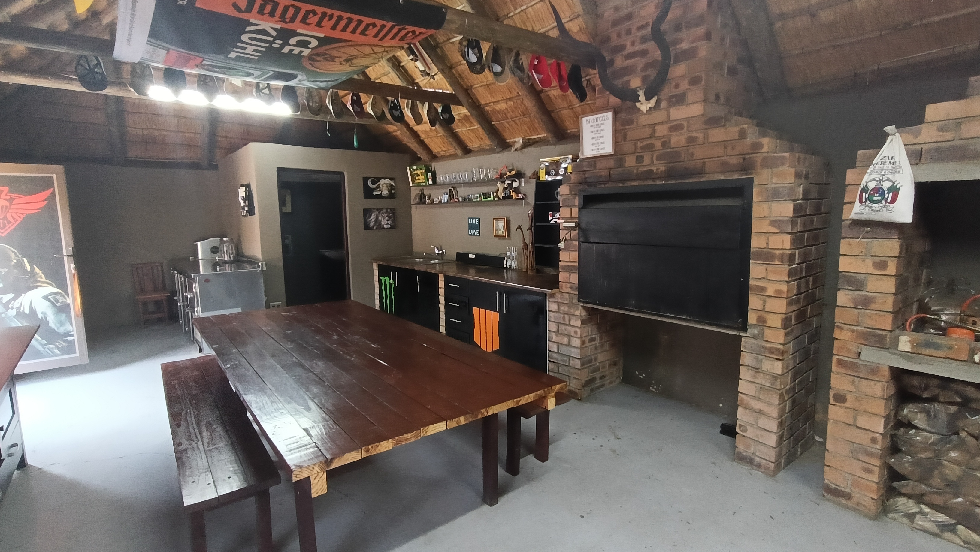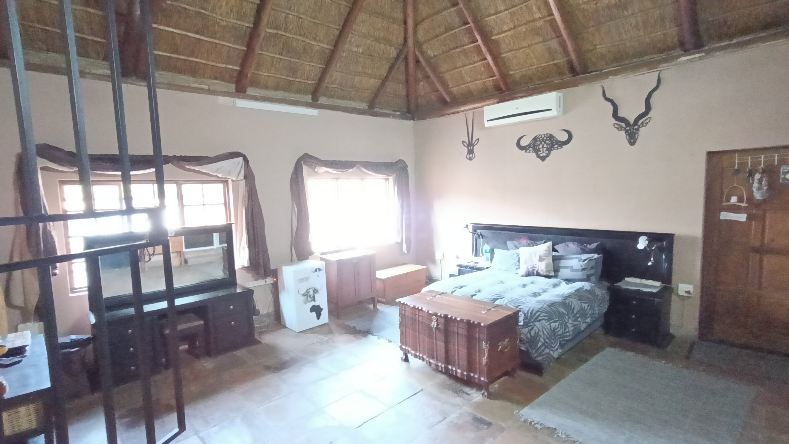 Set on a generous 2.2-hectare plot, this inviting property combines comfort and charm. The main house welcomes you with a cozy feel, featuring two garages and covered parking for ten vehicles. A courtyard pool adds a refreshing touch to the home. Two boreholes with a pump house keep the grounds lush and self-sufficient, ideal for family life or entertaining.