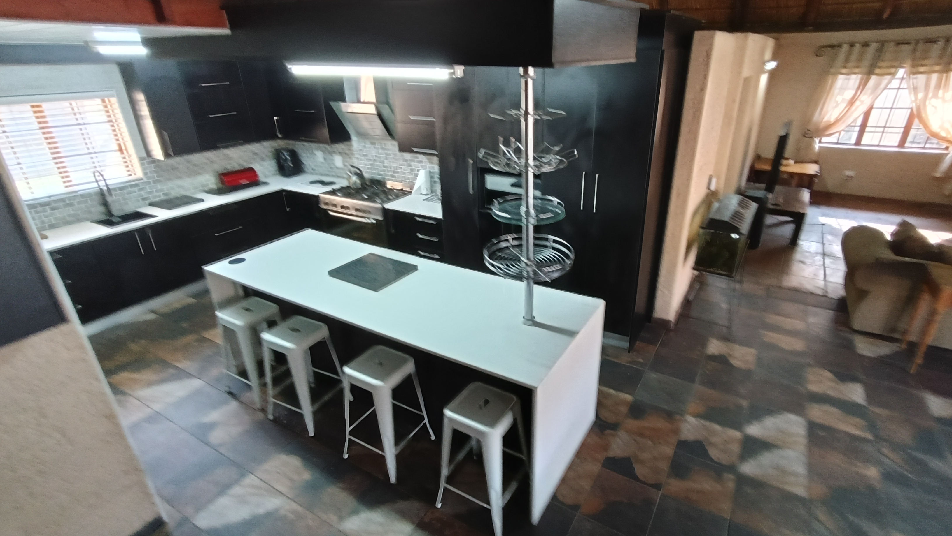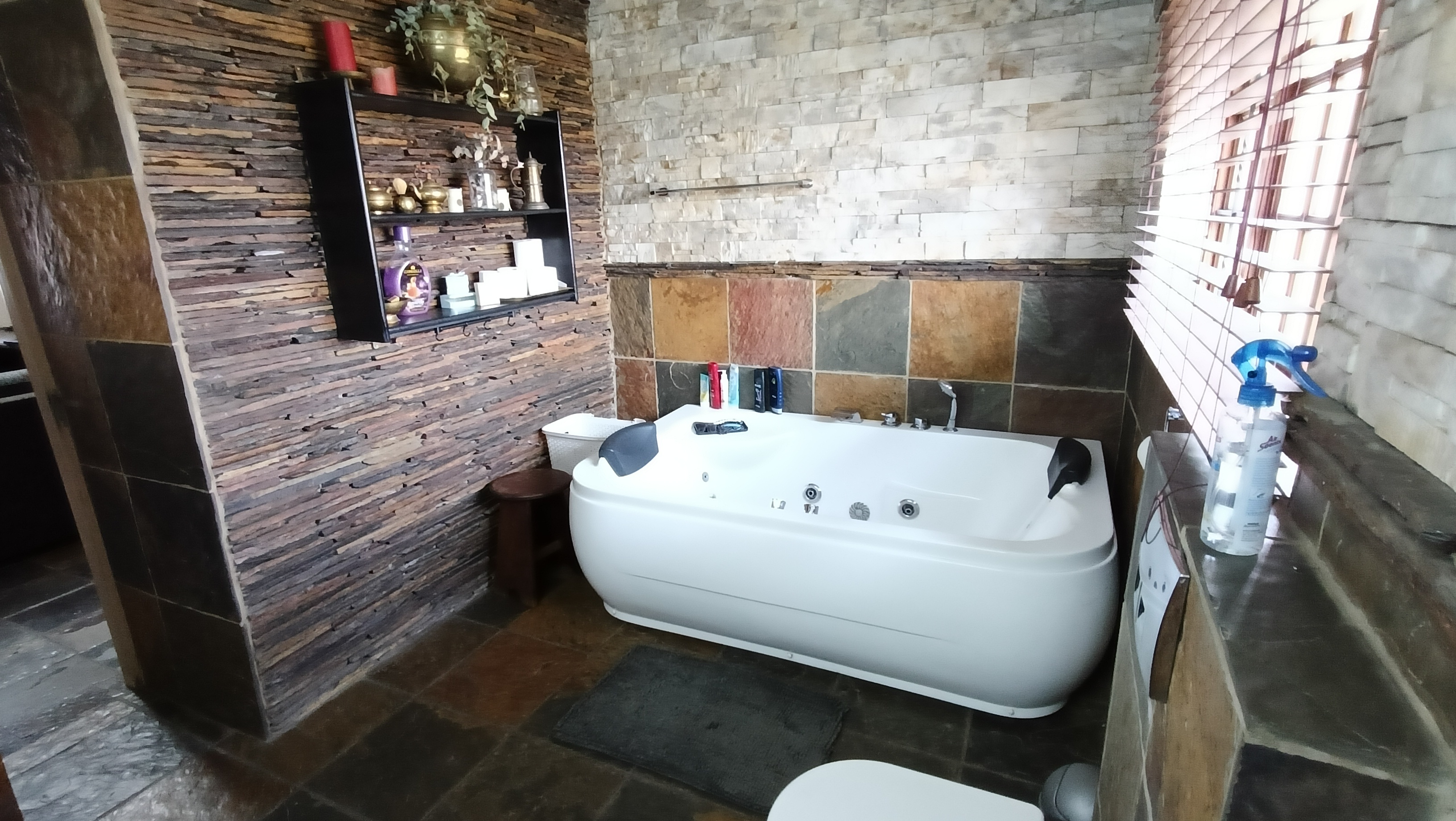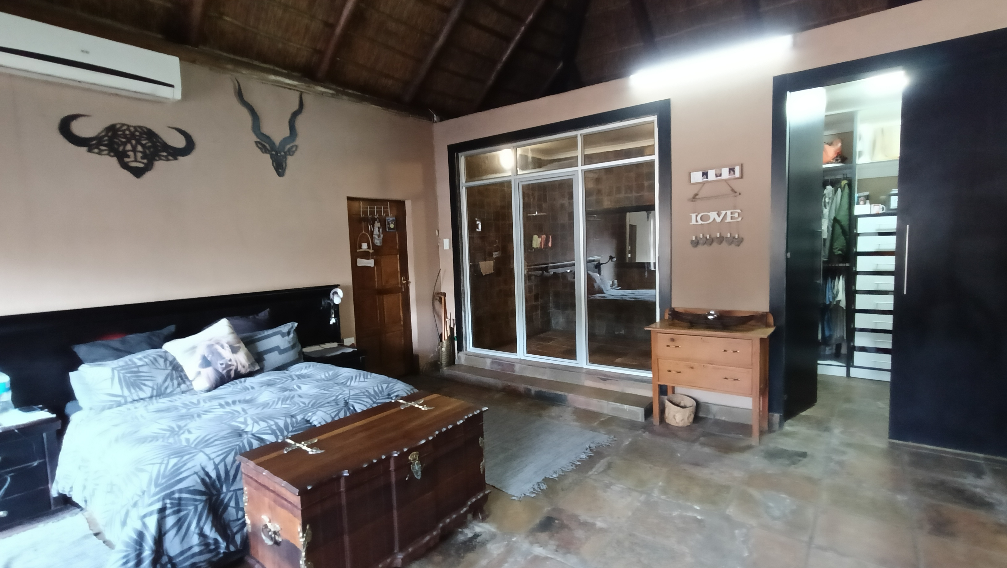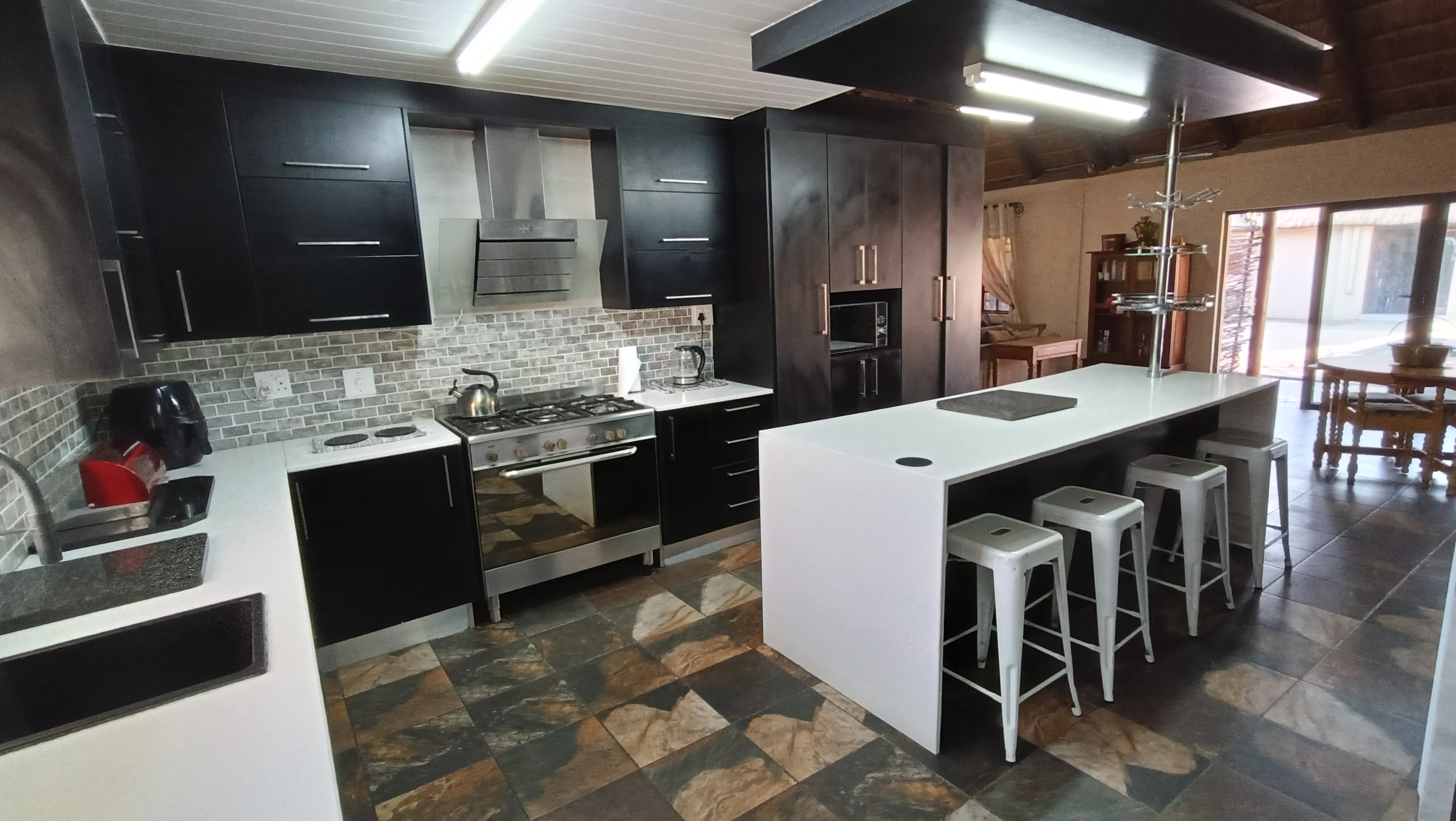 Set on a generous 2.2-hectare plot, this inviting property combines comfort and charm. The main house welcomes you with a cozy feel, featuring two garages and covered parking for ten vehicles. A courtyard pool adds a refreshing touch to the home. Two boreholes with a pump house keep the grounds lush and self-sufficient, ideal for family life or entertaining.