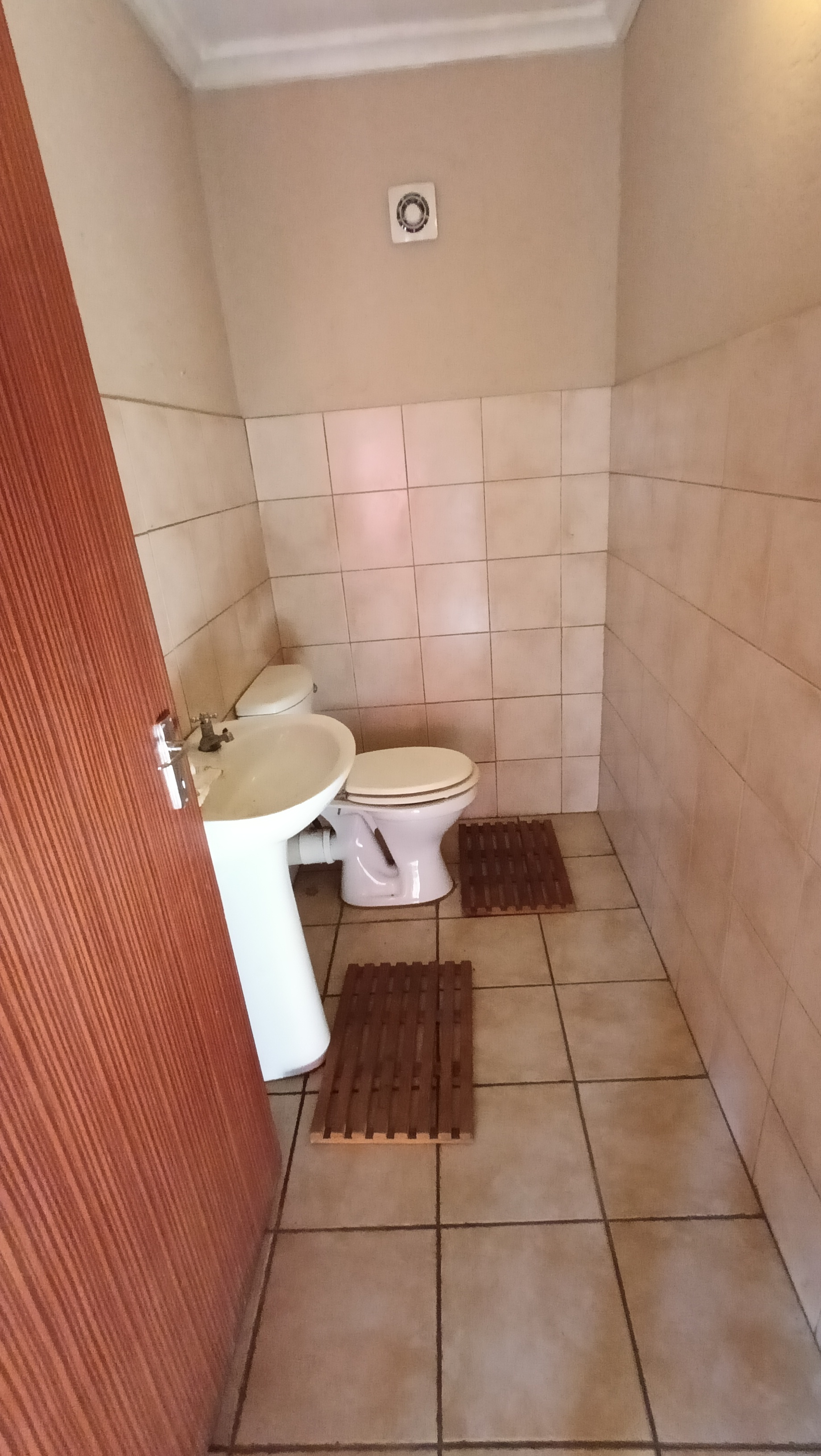 The outdoor lapa, with two braai areas and a guest toilet, is great for gatherings. Two one-bedroom flats, each with an open-plan kitchenette, lounge, and parking, are perfect for guests or rentals. A functional office includes a kitchen, two toilets, and a large open area. A storeroom/workshop with three toilets and a patio with a braai complete this delightful property.