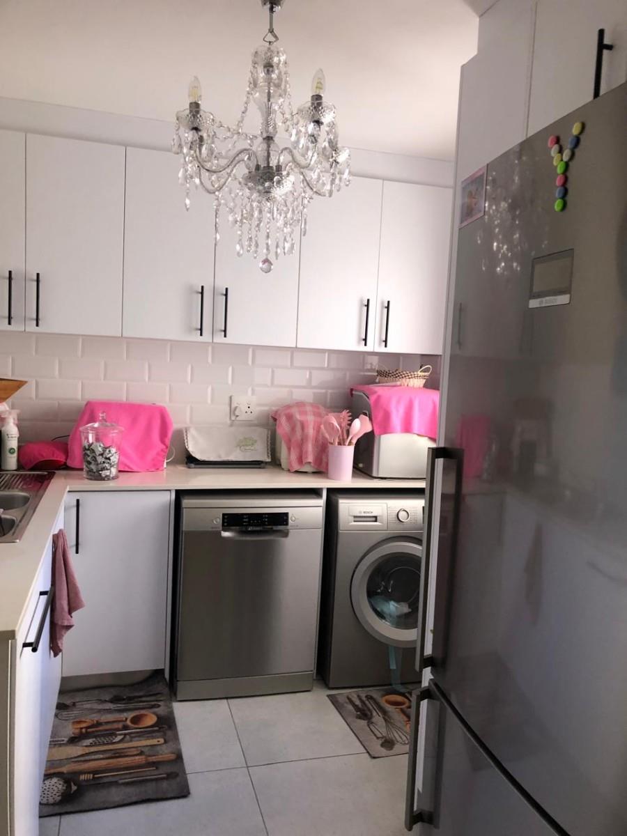 Spacious kitchen with electric hob, oven, and plenty of cupboard space