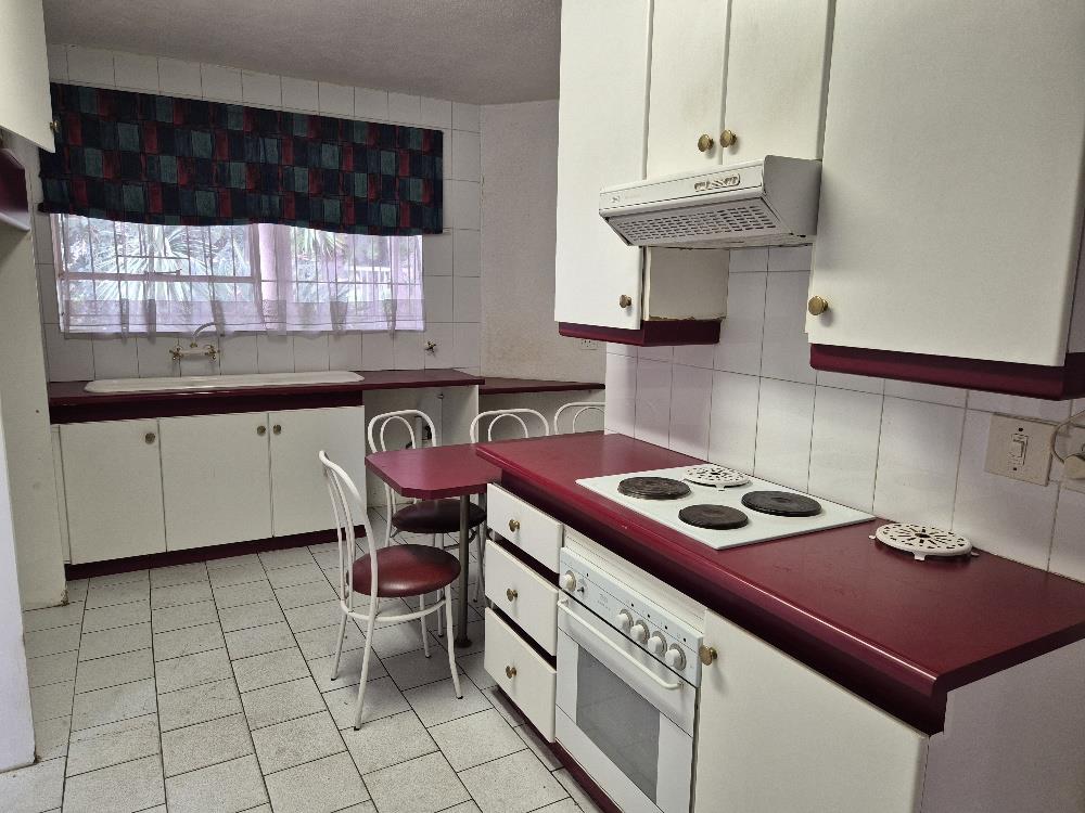 The well-appointed kitchen is a chef's delight, featuring built-in cupboards, space for a double fridge, and a three-piece stove. Adjacent to the kitchen is a practical laundry room with a basin. The property also includes an outside room equipped with a bed, toilet, basin, and gas heater.