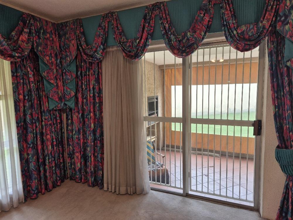 The heart of the home comprises a spacious lounge and dining room, both adorned with blinds and ceiling fans for comfort. The lounge has a sliding door that opens up to an enclosed (fold-up blinds) barbeque area, ideal for entertaining guests or enjoying family barbecues.
