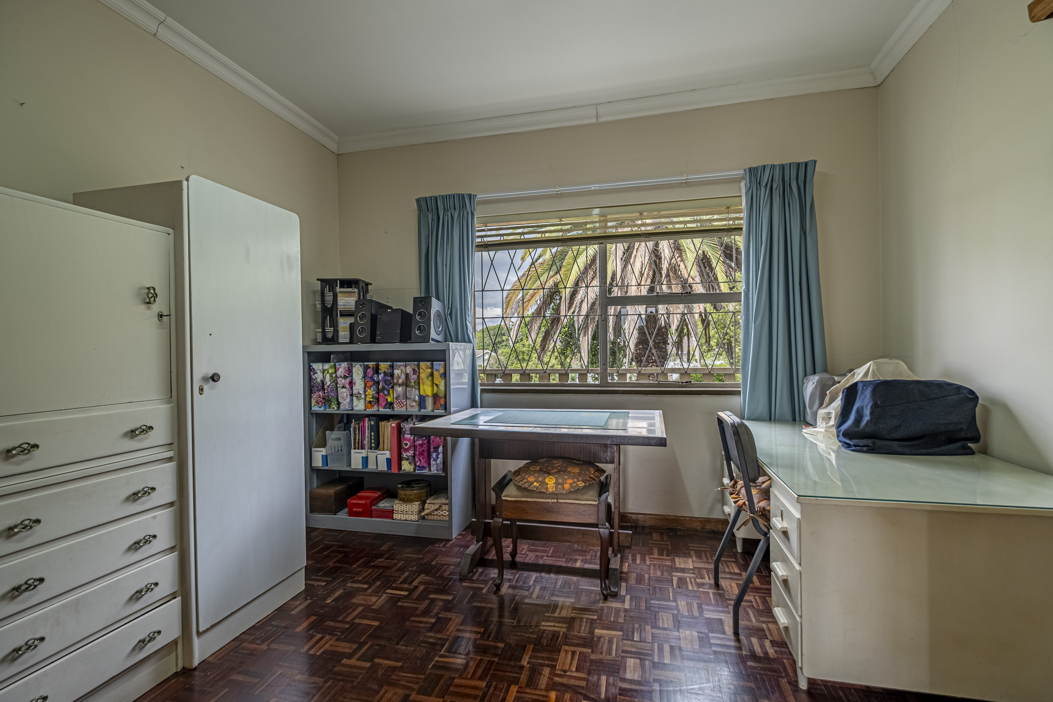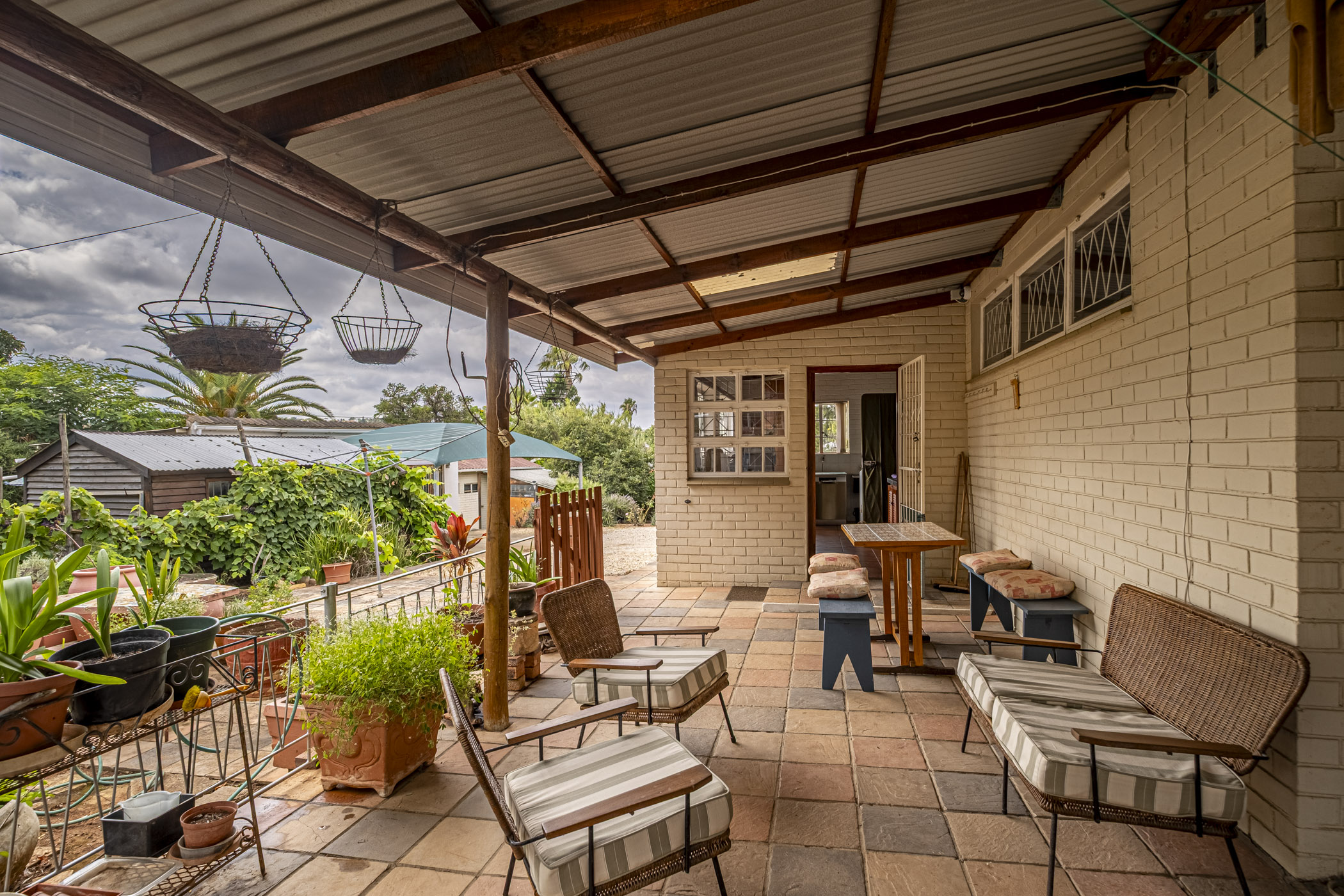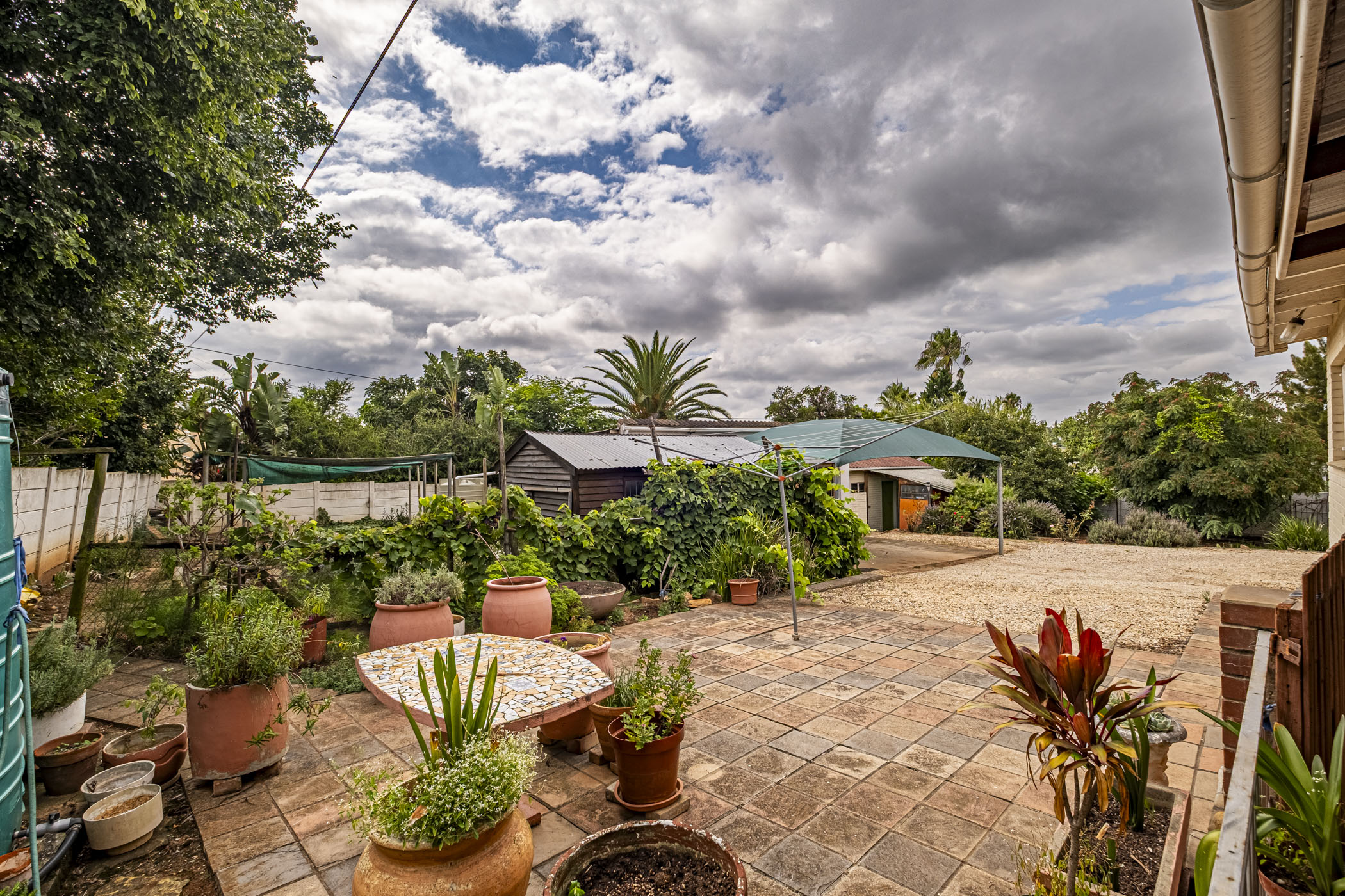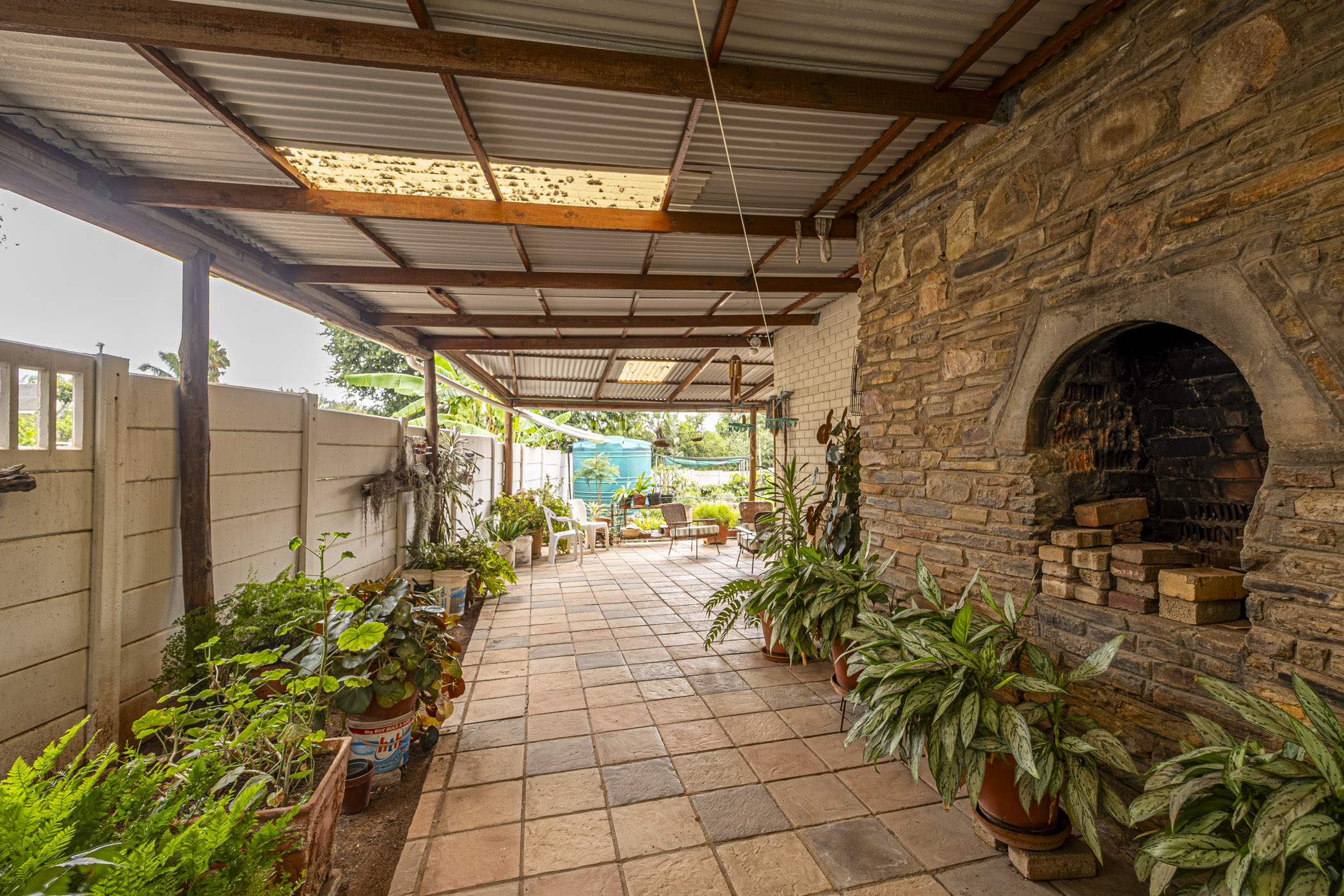 The outdoor space is designed for both relaxation and practicality, featuring a covered entertainment area, a double carport, and a double garage converted into a versatile work area. Additional features include domestic quarters, a wendy house for extra storage, and a vegetable and herb garden. The beautiful garden completes this inviting property, making it an excellent choice for families or those needing extra space.