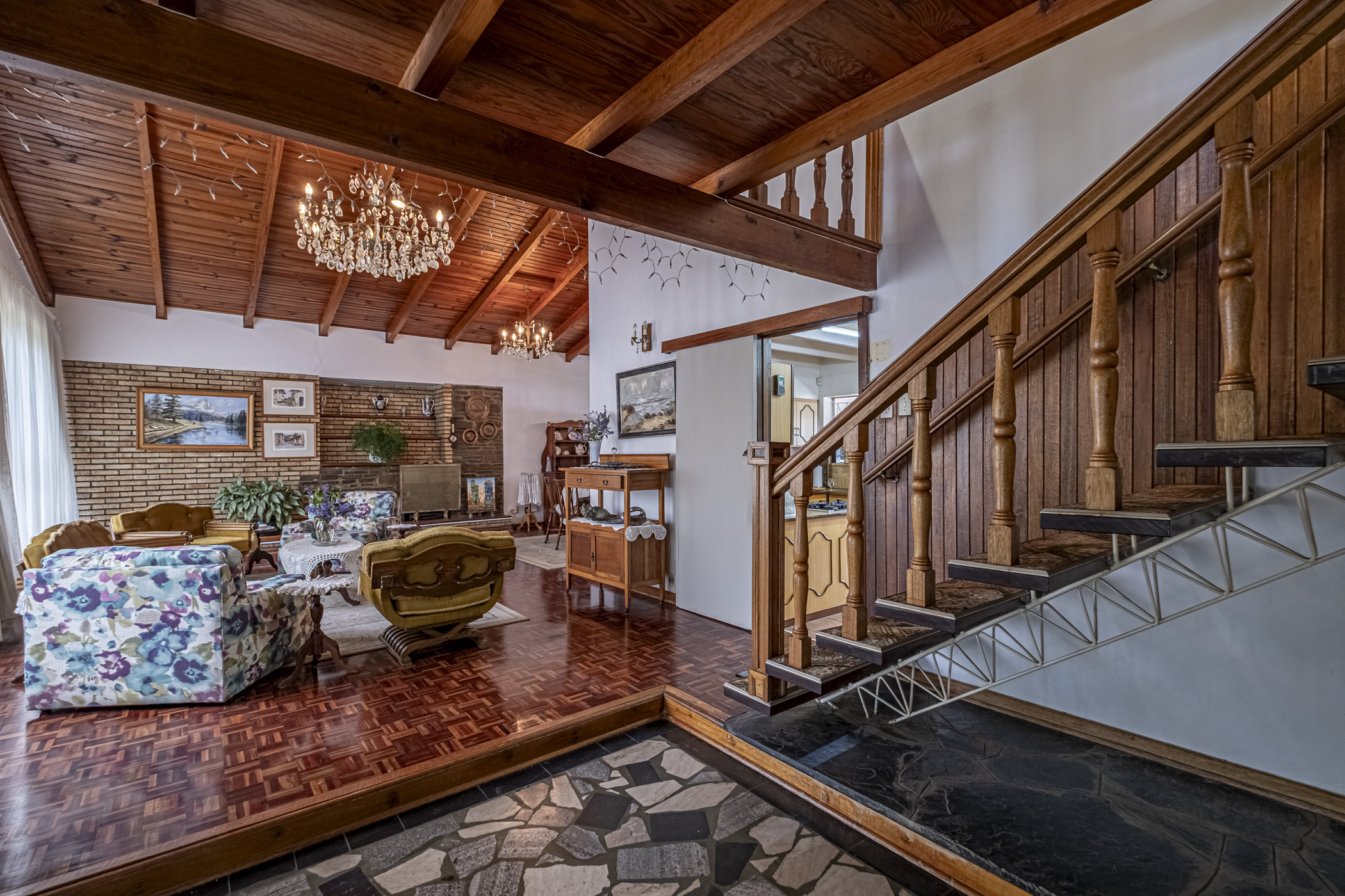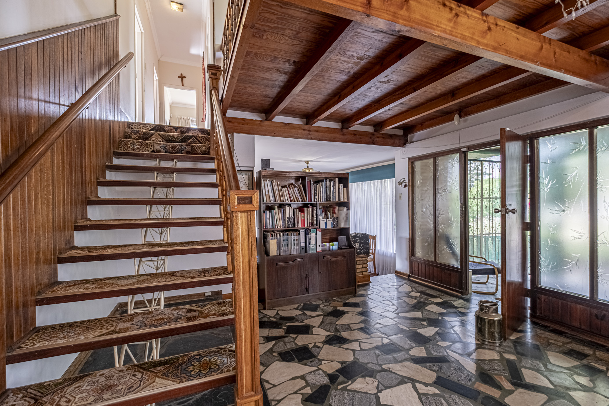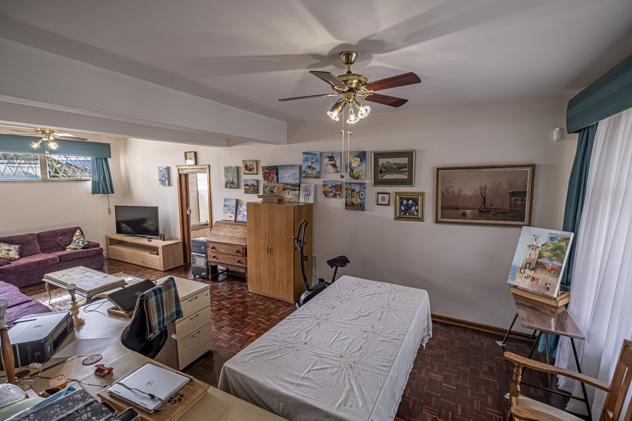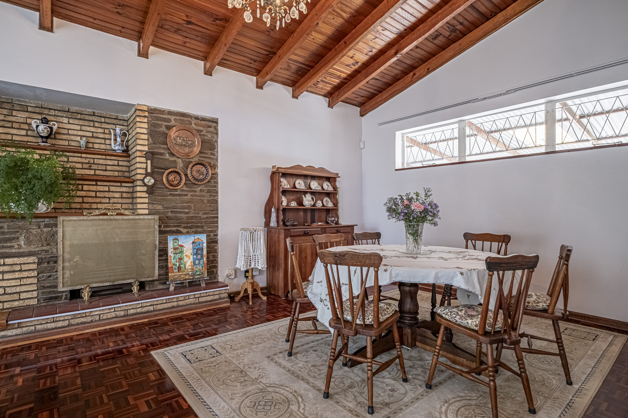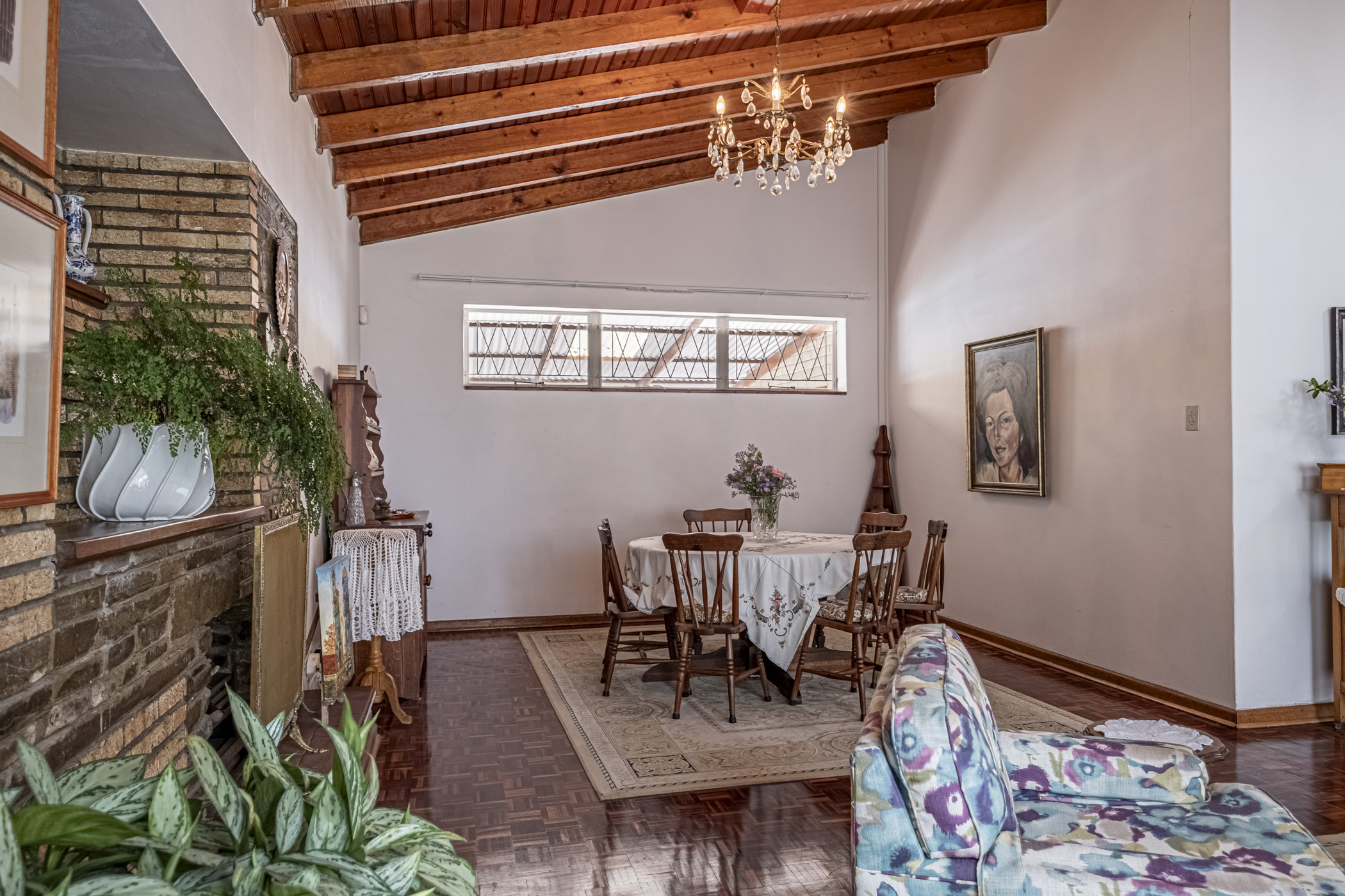The outdoor space is designed for both relaxation and practicality, featuring a covered entertainment area, a double carport, and a double garage converted into a versatile work area. Additional features include domestic quarters, a wendy house for extra storage, and a vegetable and herb garden. The beautiful garden completes this inviting property, making it an excellent choice for families or those needing extra space.