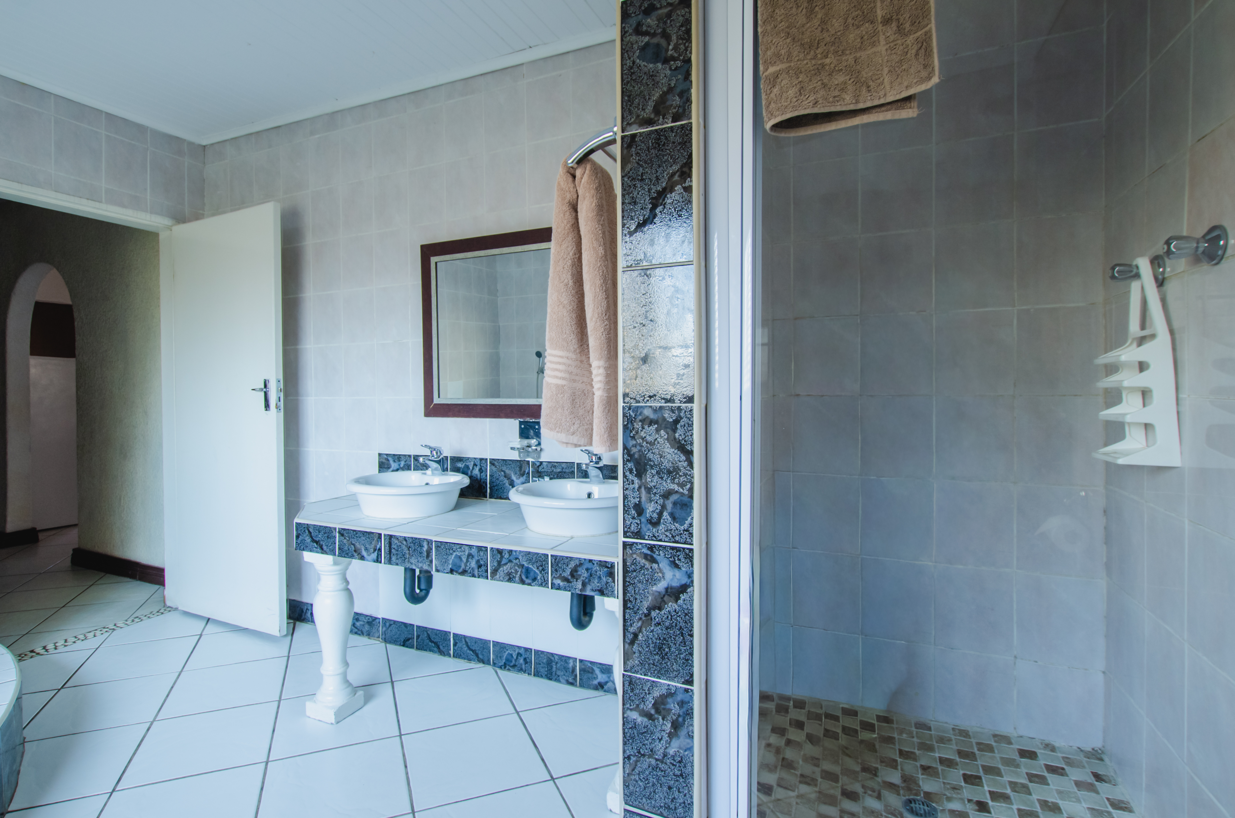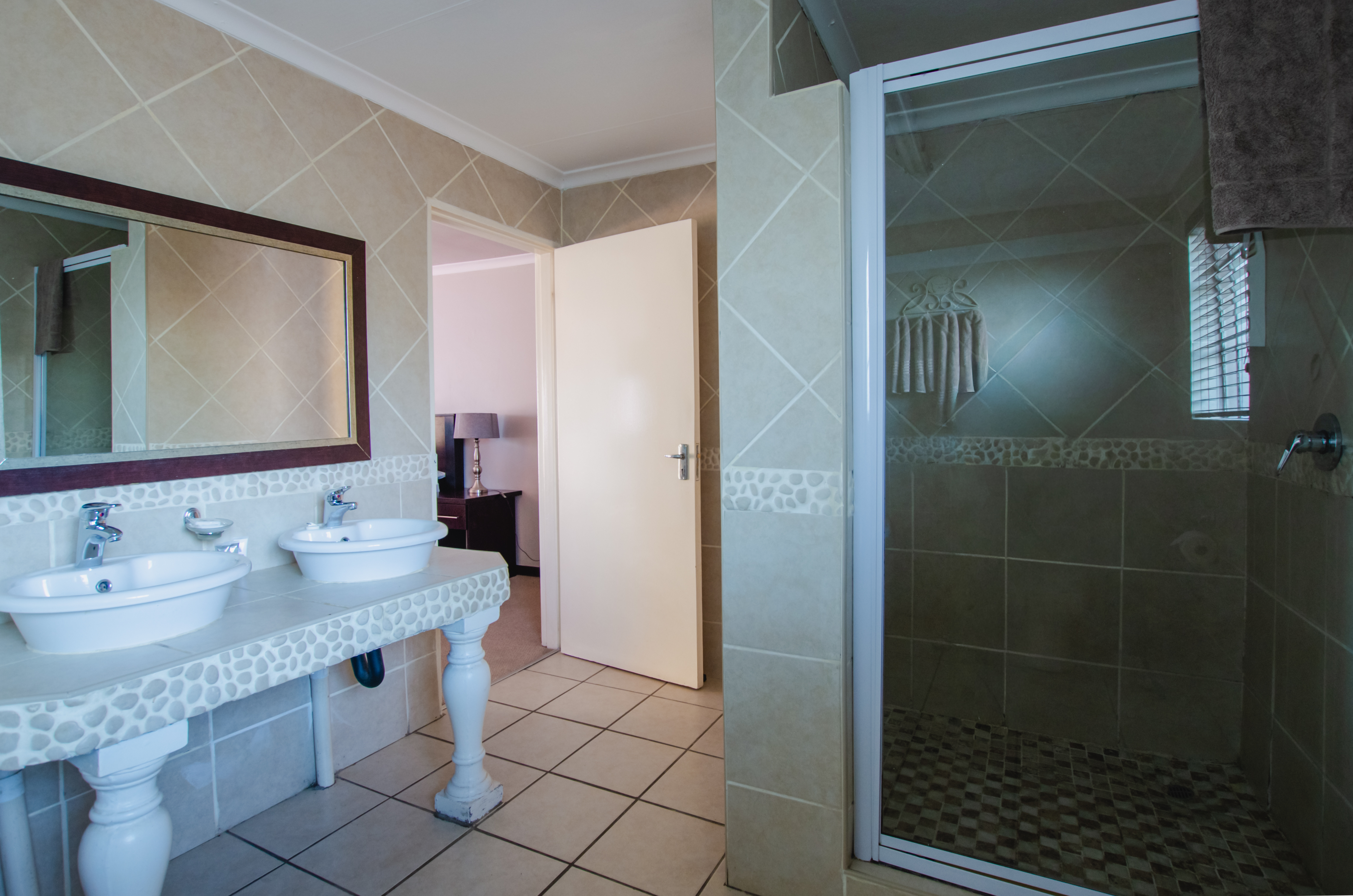 2 x single beds with a Huge en-suite bathroom with a corner bath and Shower