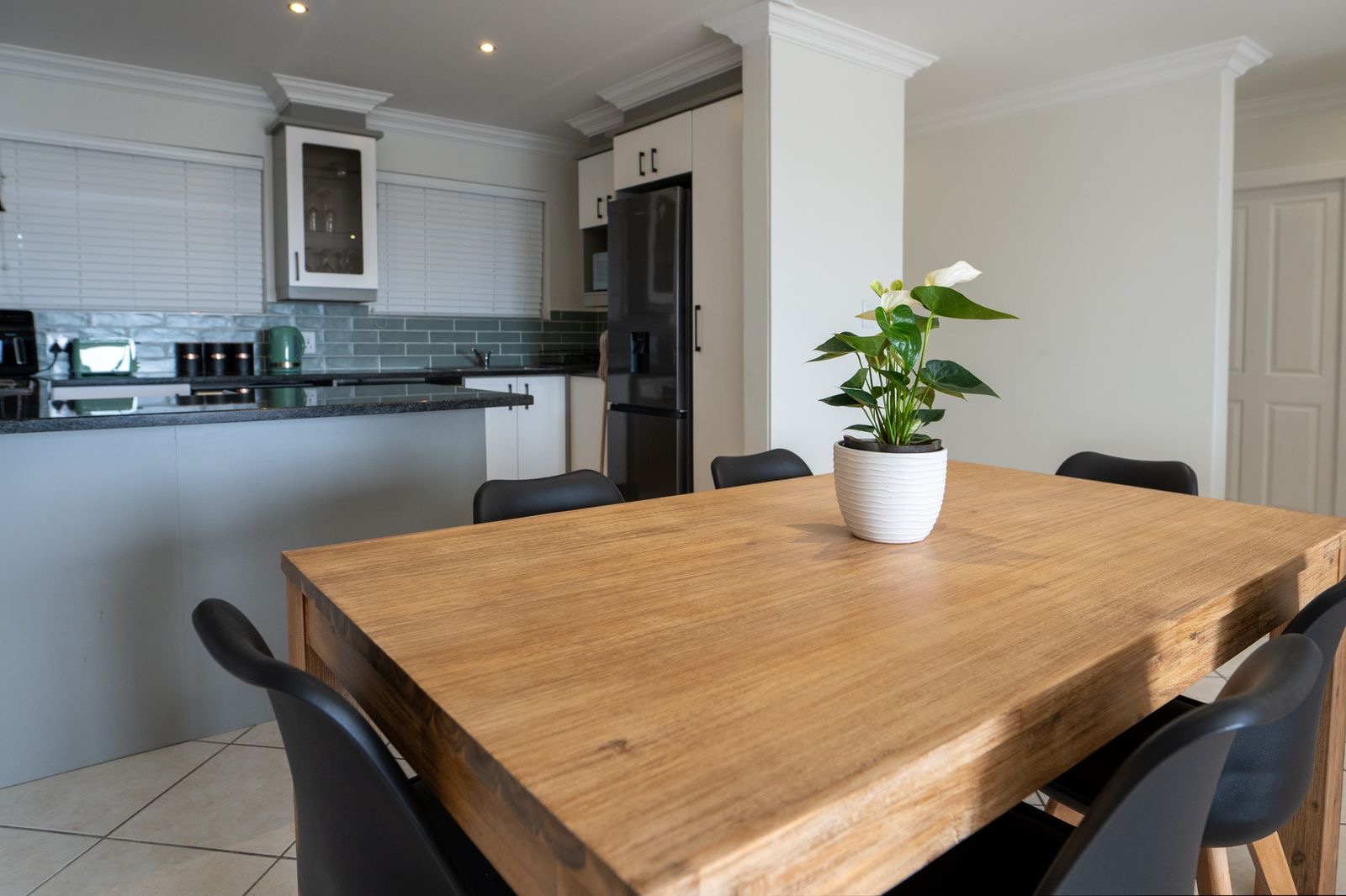 Open-plan living and dining area boasting fresh décor, abundant natural light, and a relaxed, coastal vibe.