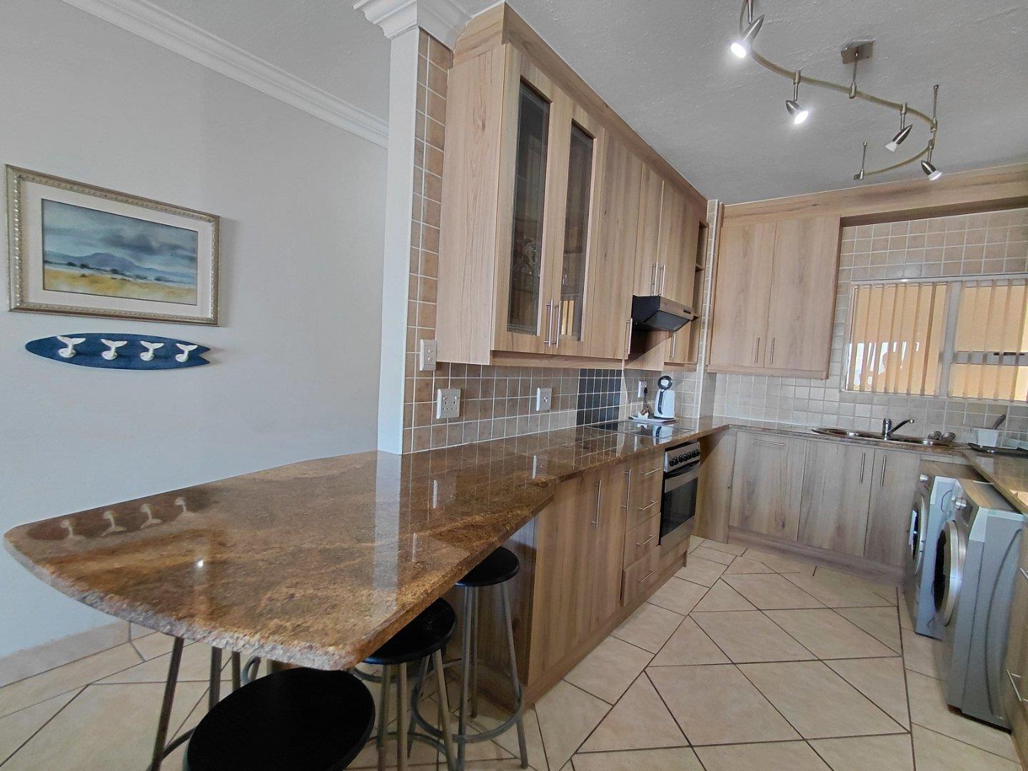The apartment boasts two beautifully modern bedrooms, a sleek open-plan kitchen and living area, and a fully enclosed patio with a built-in braai—perfect for relaxed entertaining in any weather. Enjoy ocean views and sea breezes from the comfort of your own private outdoor space.