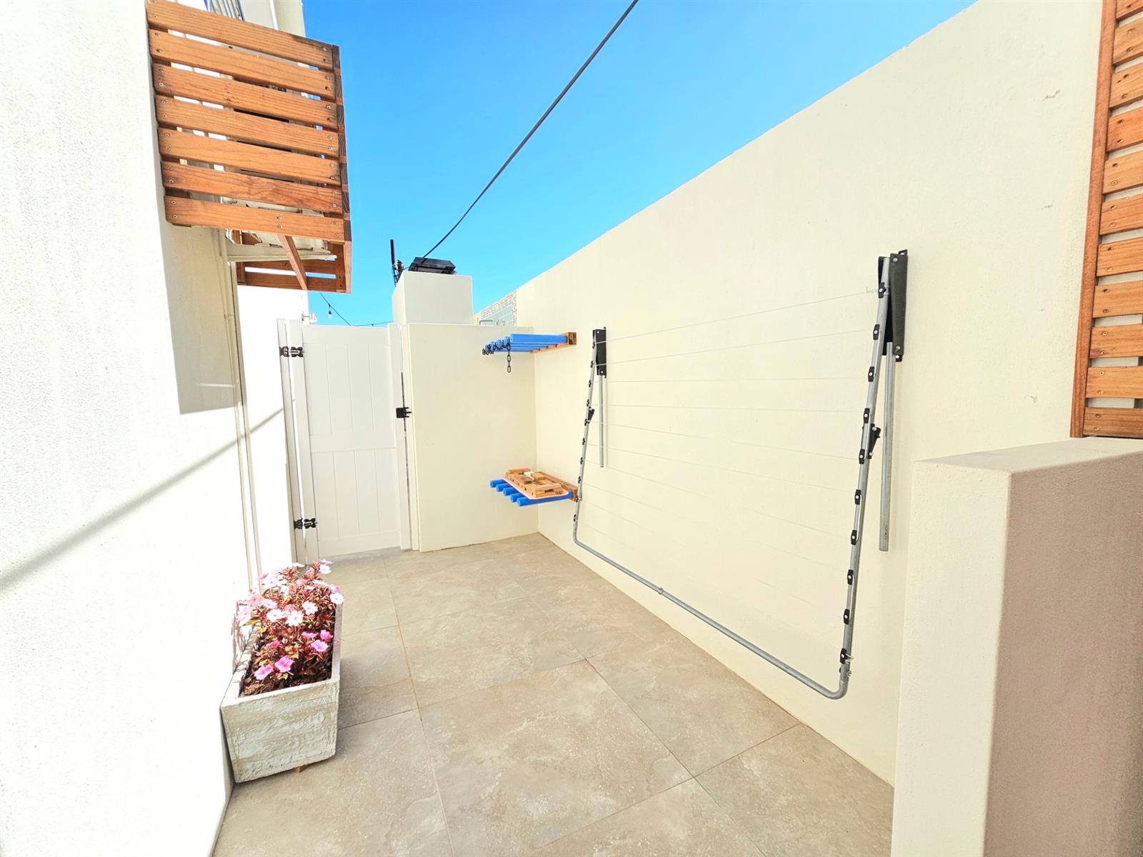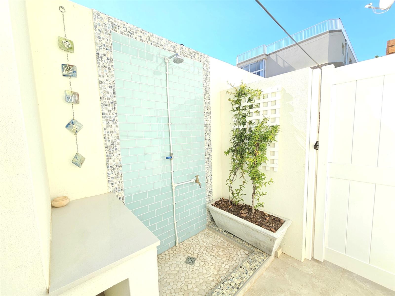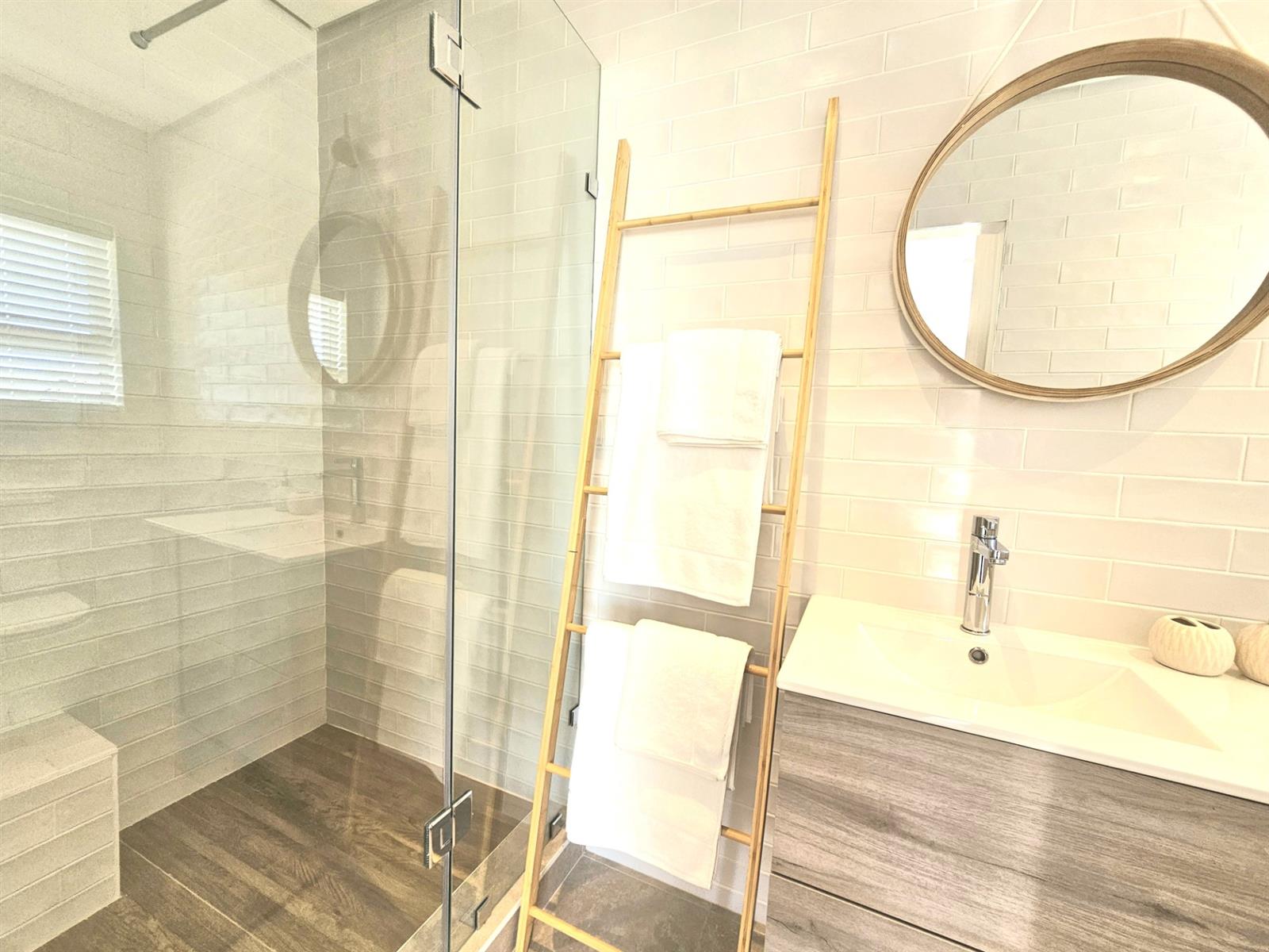 Outside, a beautifully sculpted entertainment courtyard elevates this property into a class of its own. Completely walled for privacy, this tranquil space includes a smokeless fireplace, a generous built-in braai, and an invigorating outdoor shower—ideal after a day spent on the sand and surf.