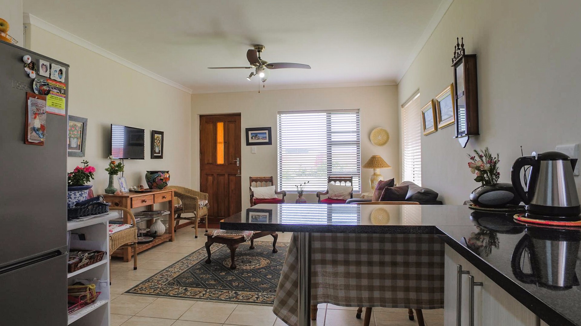 This secure, face-brick home features beautiful gardens and a safe entrance, with a small pet-friendly policy for peace of mind. Inside, the open-plan living area combines a comfortable lounge with a functional kitchen, creating a welcoming space for easy living.