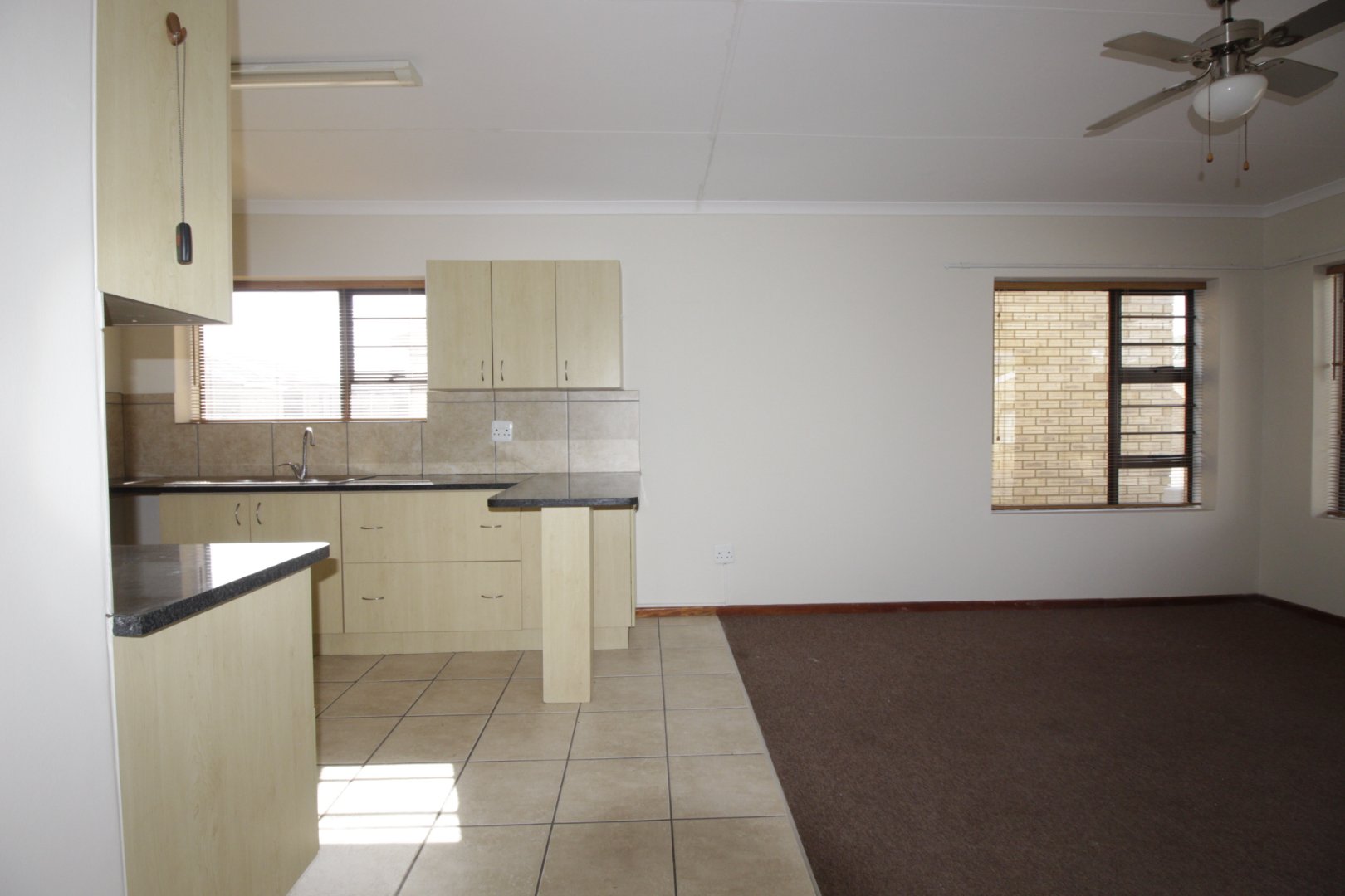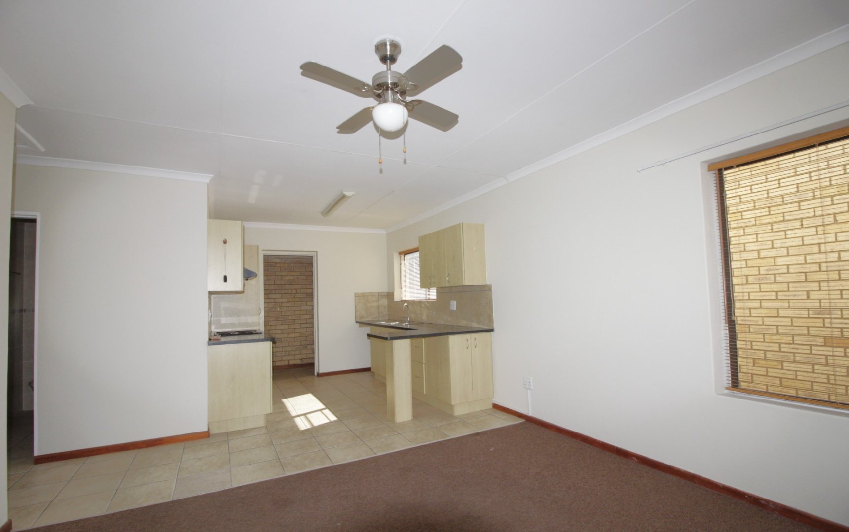 This secure, face-brick home features beautiful gardens and a safe entrance, with a small pet-friendly policy for peace of mind. Inside, the open-plan living area combines a comfortable lounge with a functional kitchen, creating a welcoming space for easy living.