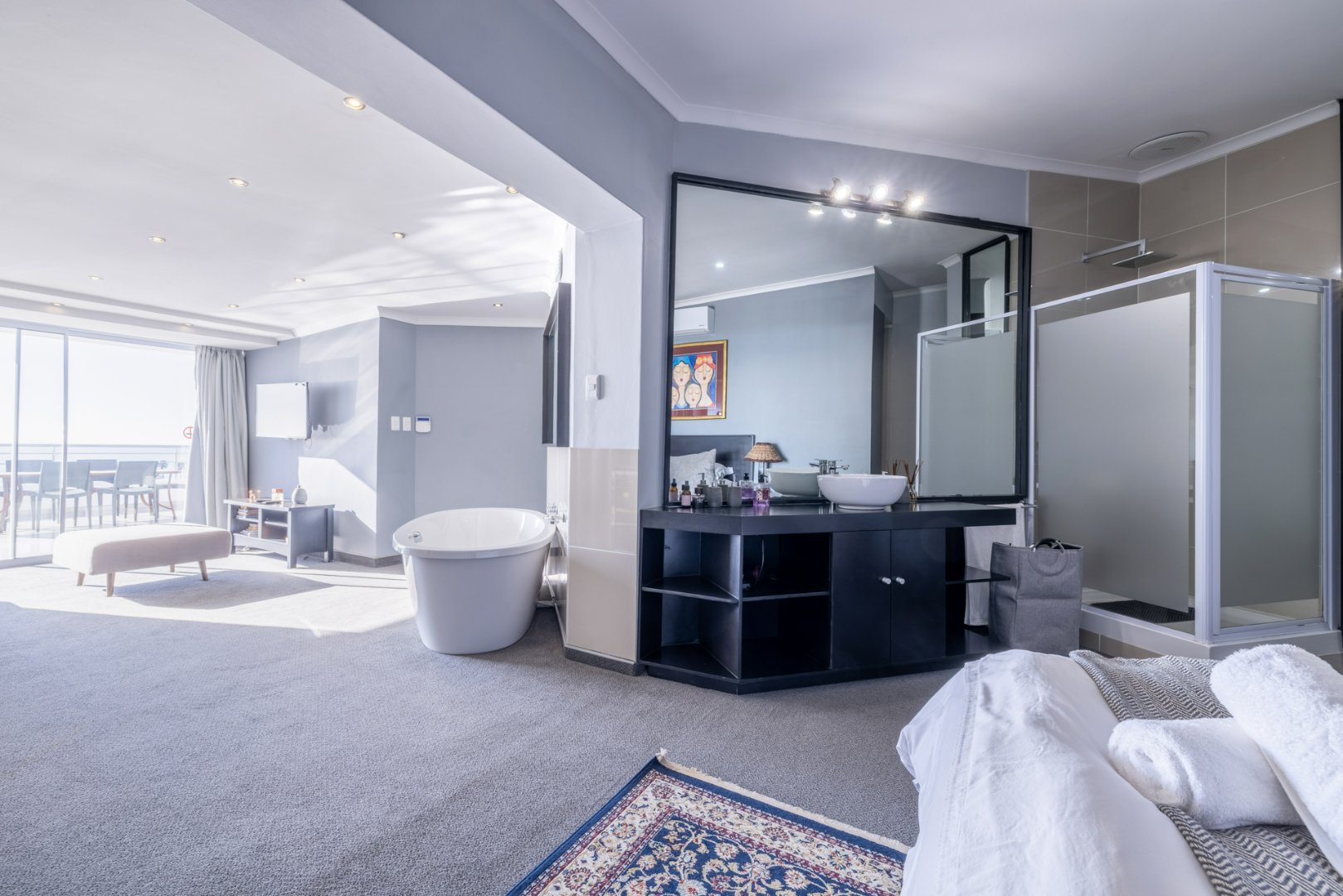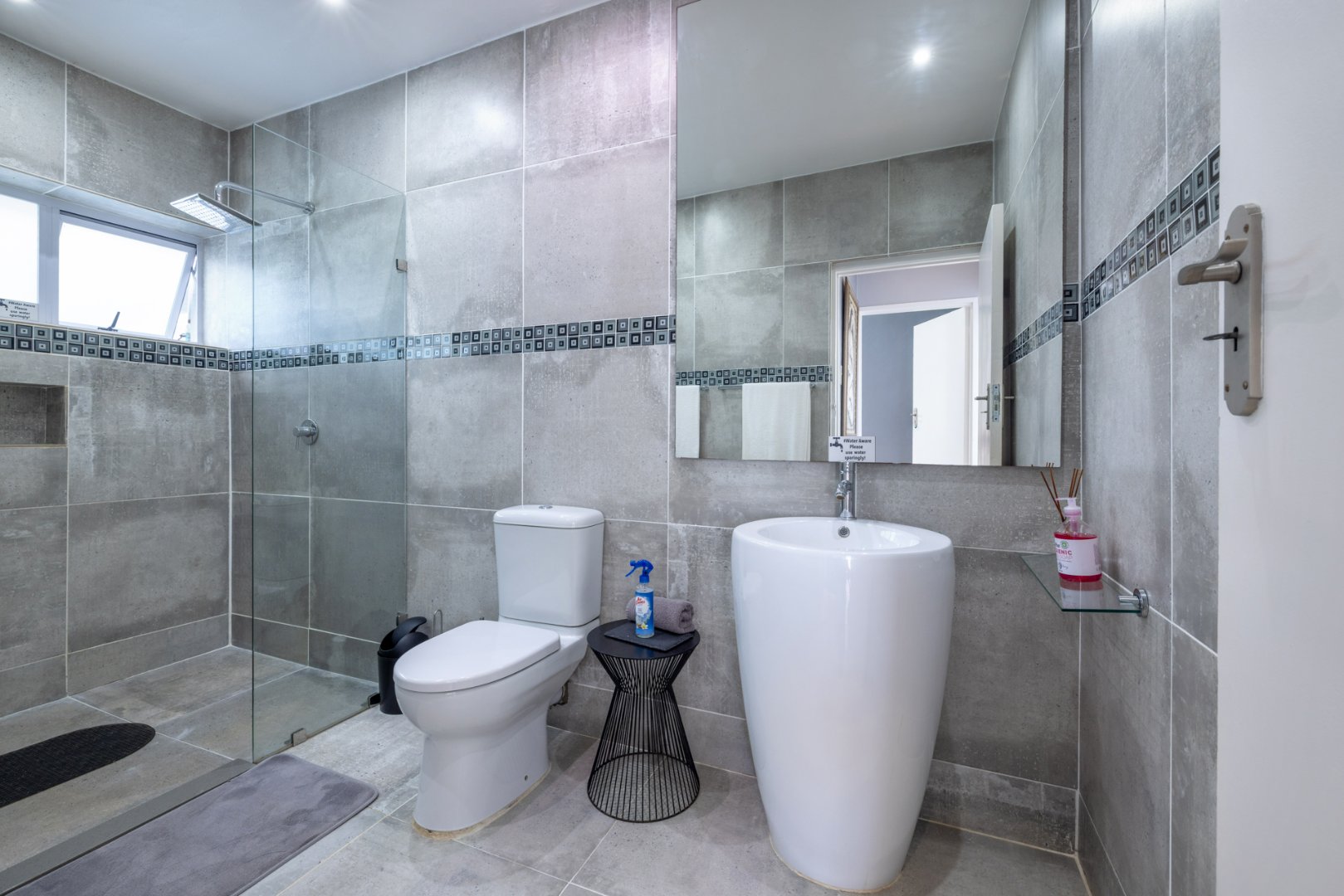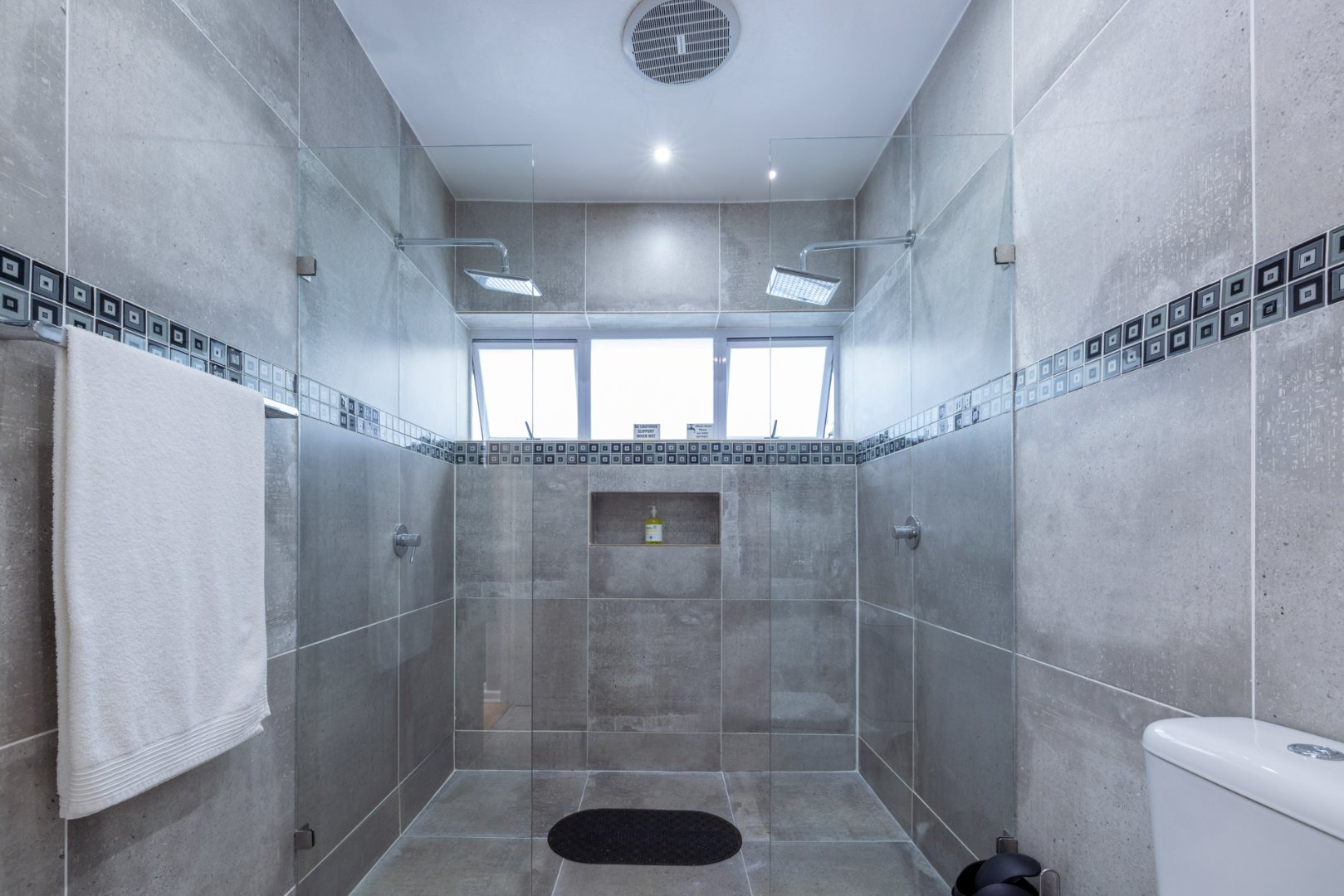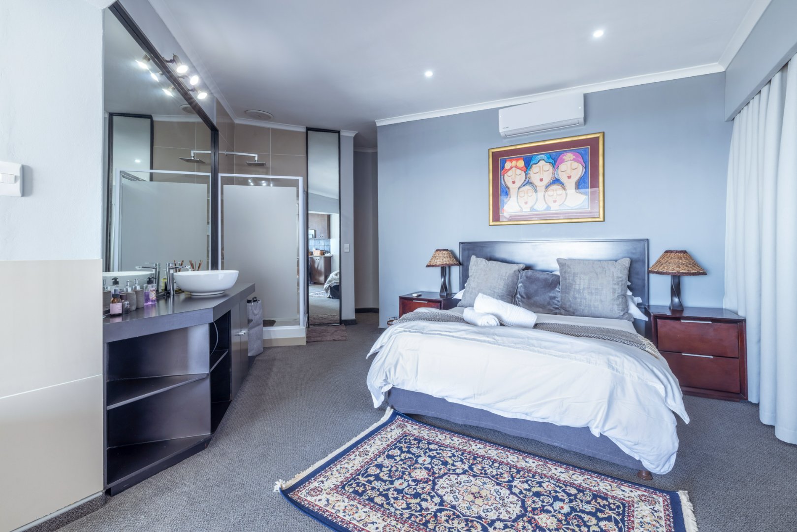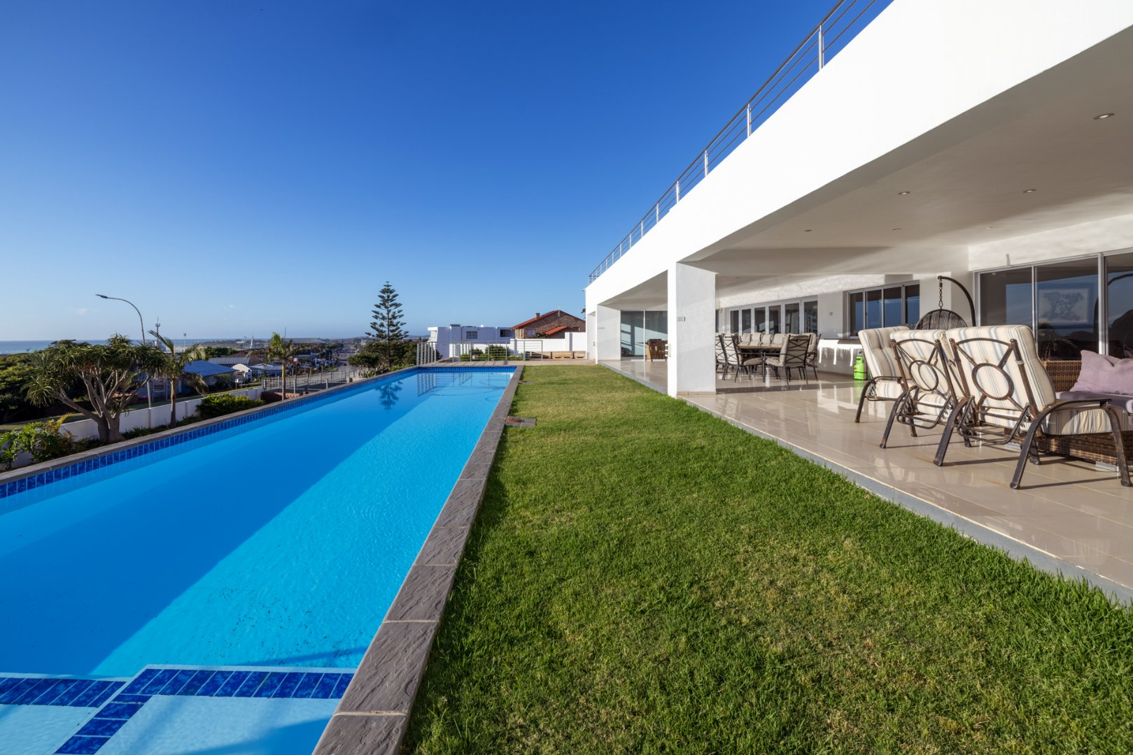 The expansive open-plan living area downstairs is perfect for entertaining, with seamless flow between the dining area, TV lounge, and indoor braai room. Large sliding doors open out to the sparkling pool and outdoor entertainment area, creating the ultimate space for relaxed coastal living and year-round enjoyment.
