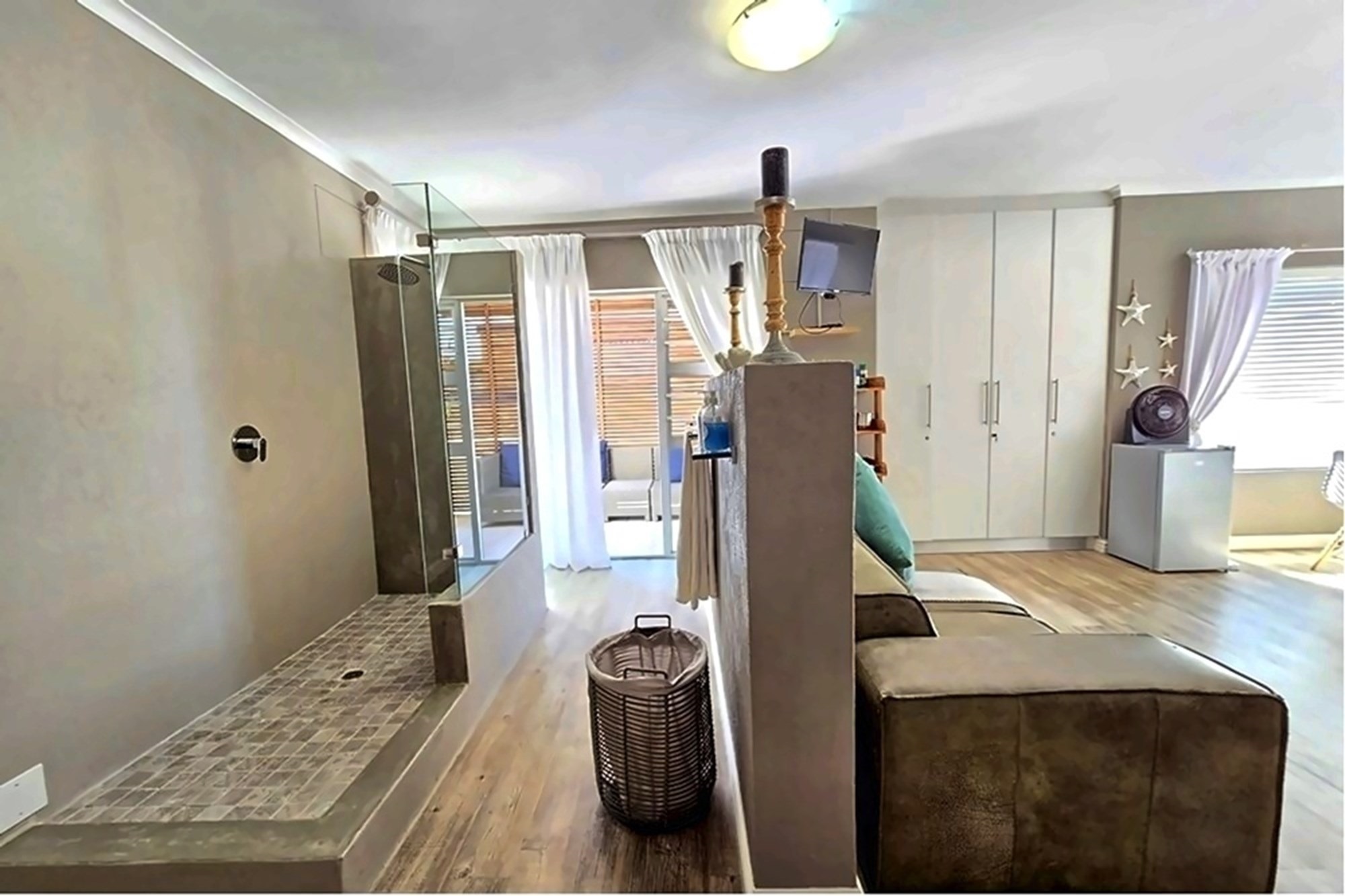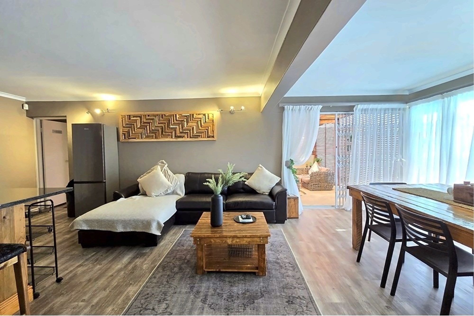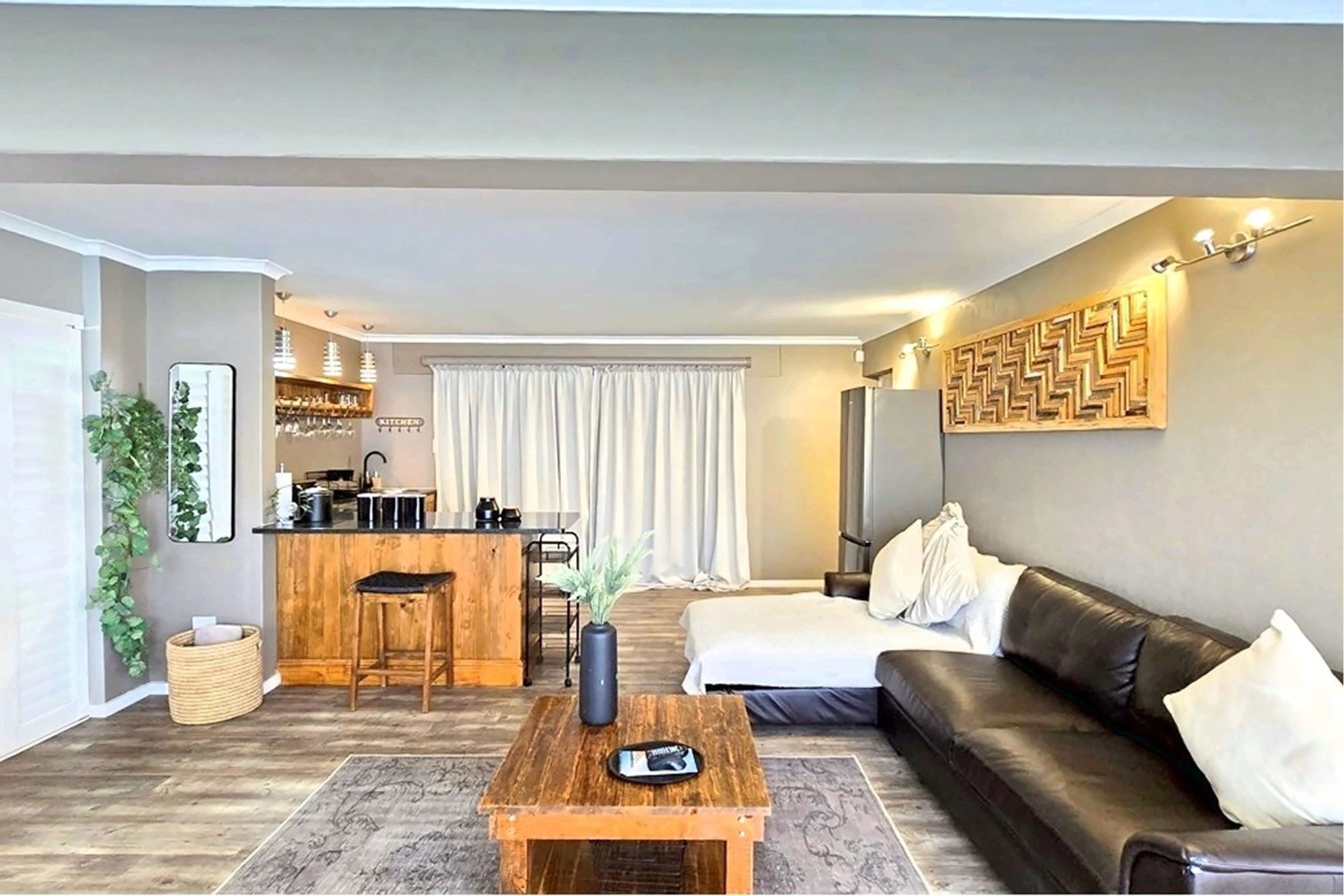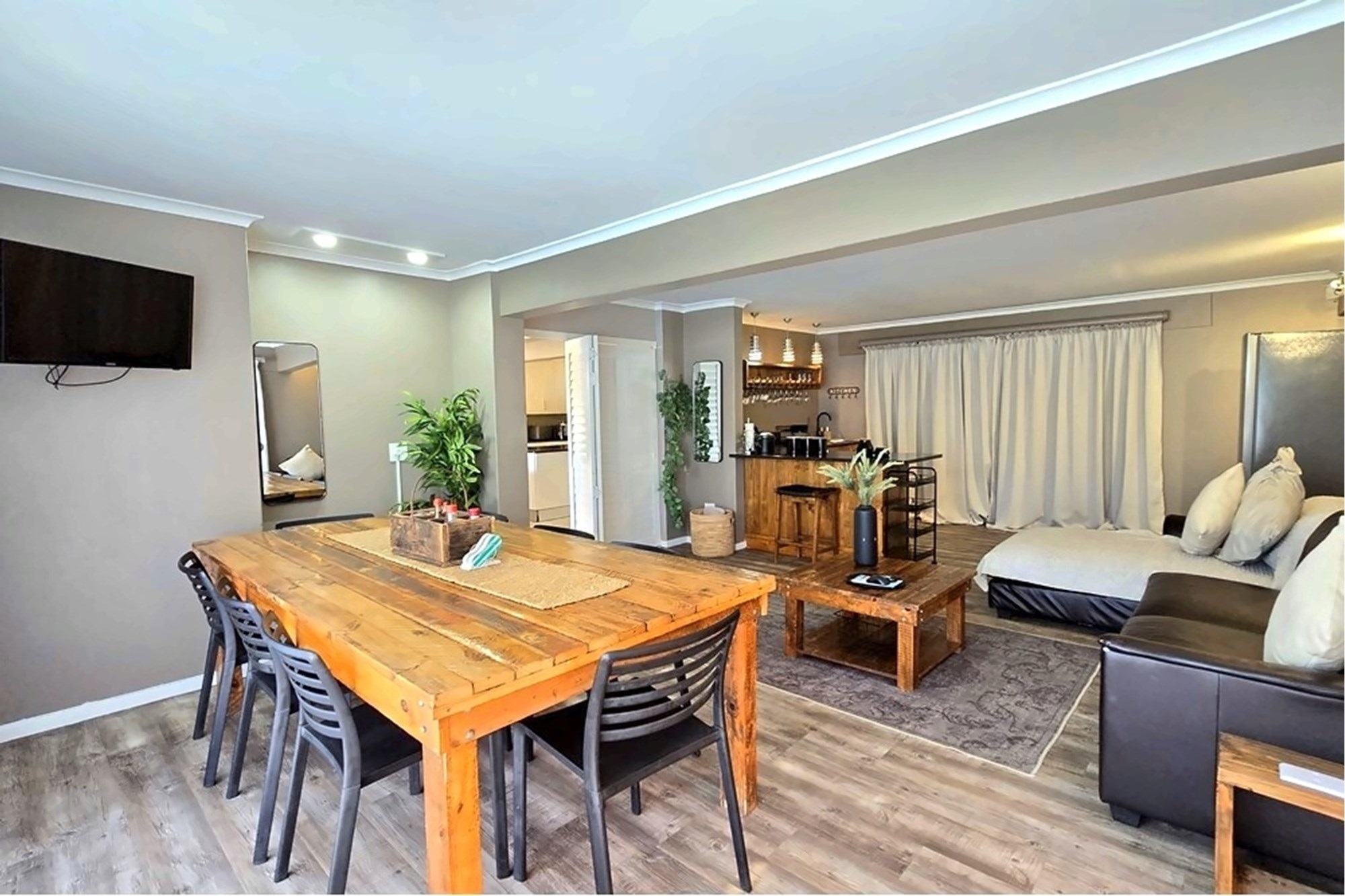 Designed with meticulous attention to detail, the residence is offered fully furnished, showcasing bespoke interiors, luxurious finishes, and designer décor throughout. Expansive open-plan living areas flow effortlessly to a generous entertainment terrace, featuring a private swimming pool, manicured gardens, and outdoor braai facilities — all harmoniously integrated with the surrounding coastal landscape.