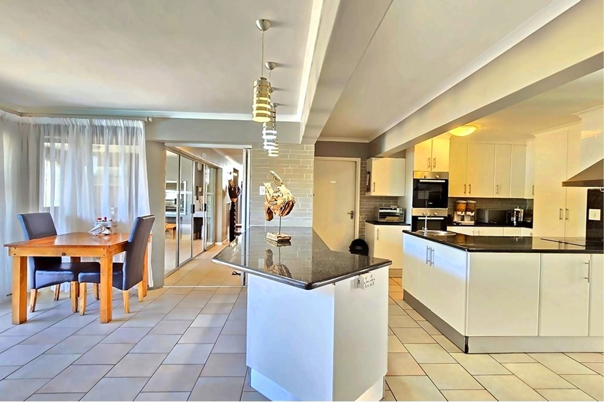 The gourmet kitchen is a statement of both form and function, complete with high-end built-in appliances, a gas hob, and elegant dining spaces ideal for both intimate and grand entertaining. Each bedroom serves as a private sanctuary, offering built-in wardrobes, en-suite bathrooms, and serene views.