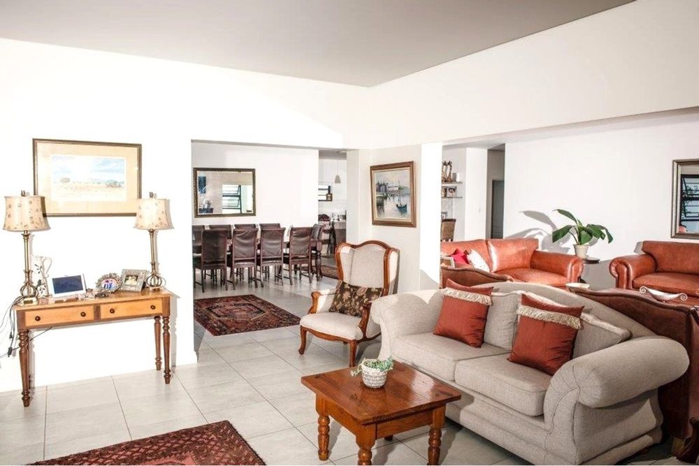 For entertaining, the double-lounge layout provides multiple options, including a formal lounge that opens to a sunny, enclosed braai room. Here, you can host guests year-round while enjoying garden and ocean views. The private bedroom wing offers three generously sized bedrooms and two elegant bathrooms, including a luxurious master suite with its own sea-facing retreat.