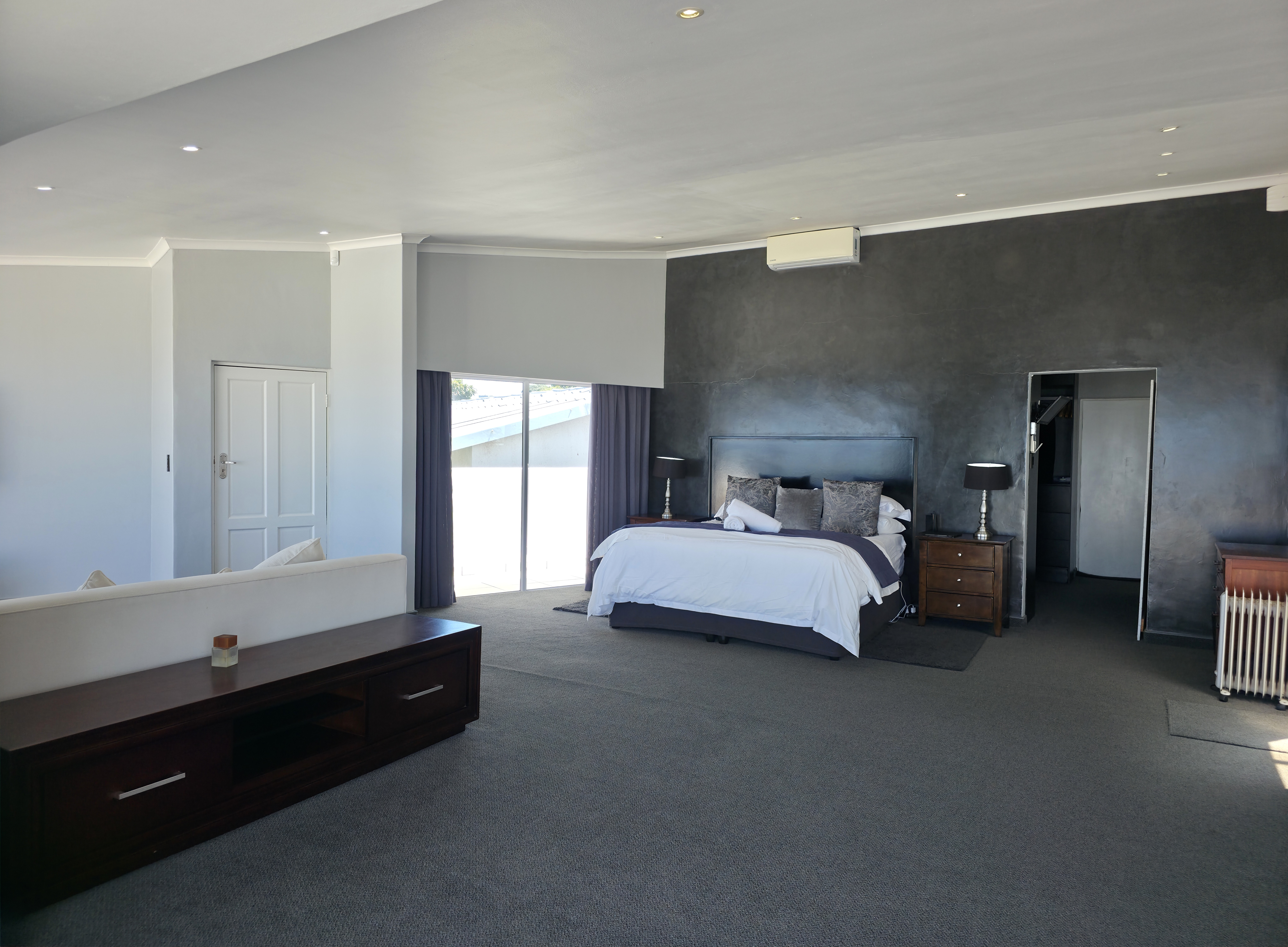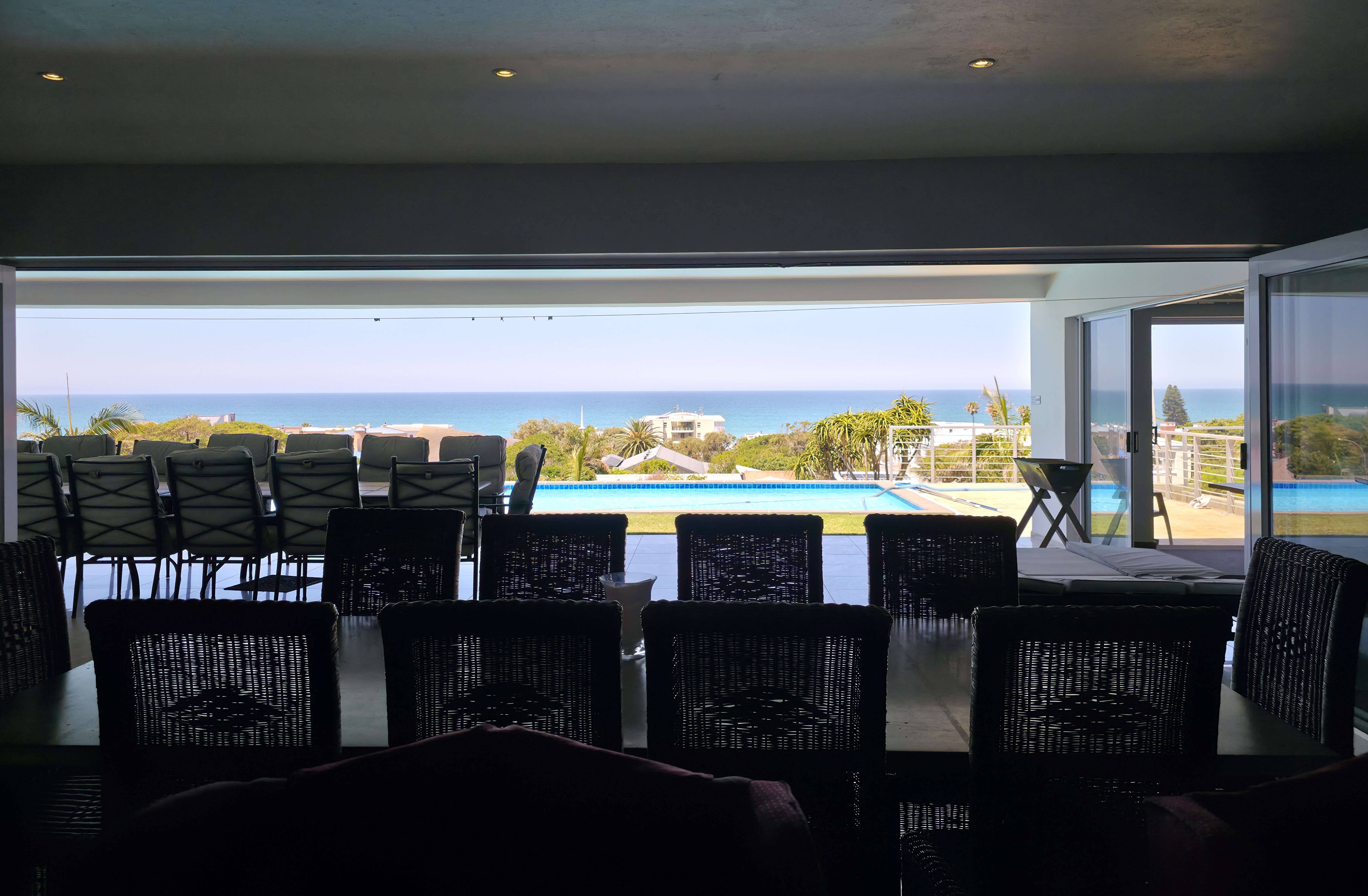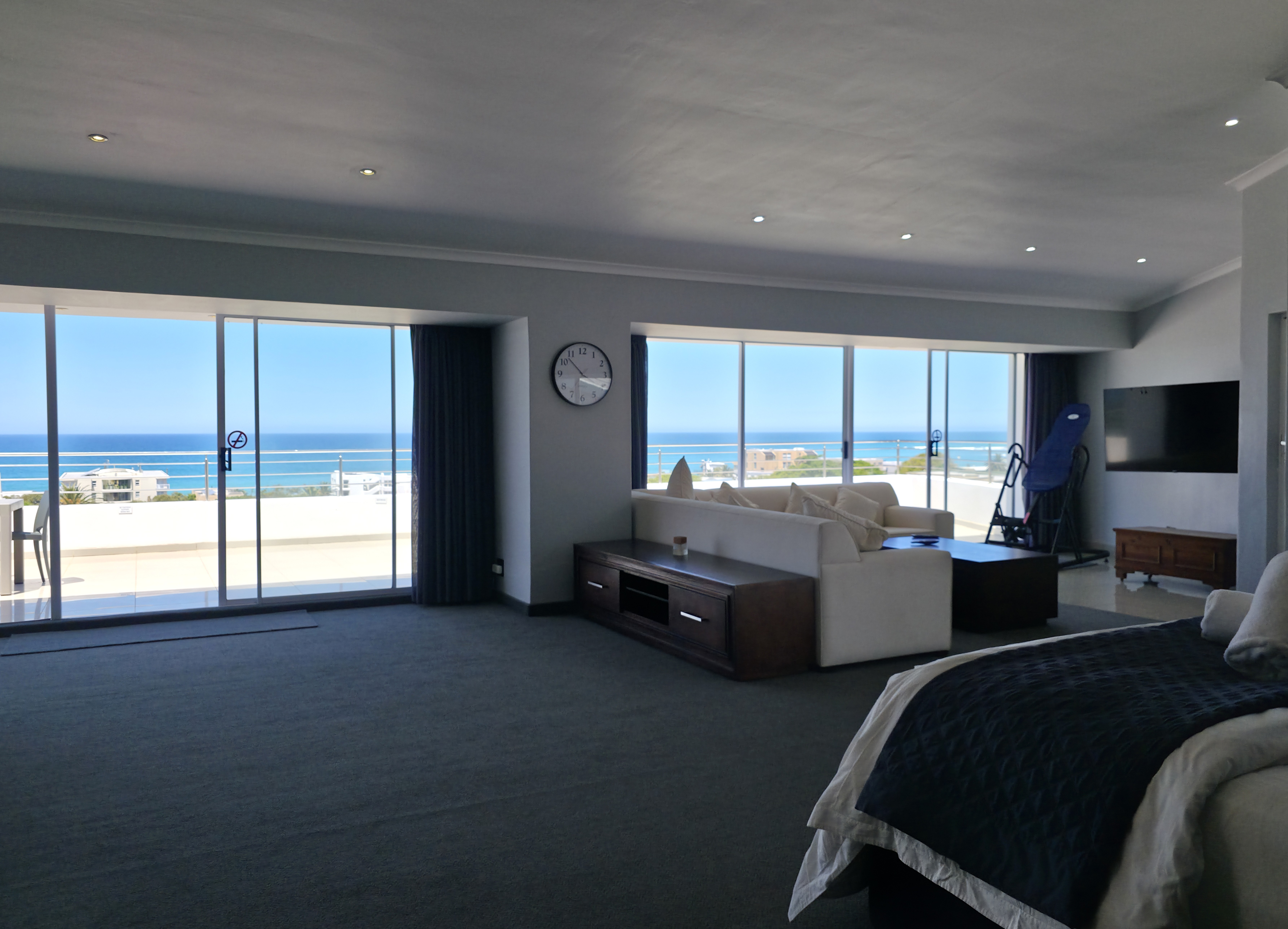 Upon entry, you’re welcomed into expansive open-plan living spaces that flow seamlessly between the elegant dining area, TV lounge, and indoor braai room — all opening through vast stacker doors onto an impressive covered patio with mesmerizing sea and pool views. A cozy reading nook adds warmth and charm, while the separate lounge offers the perfect retreat for quiet relaxation.