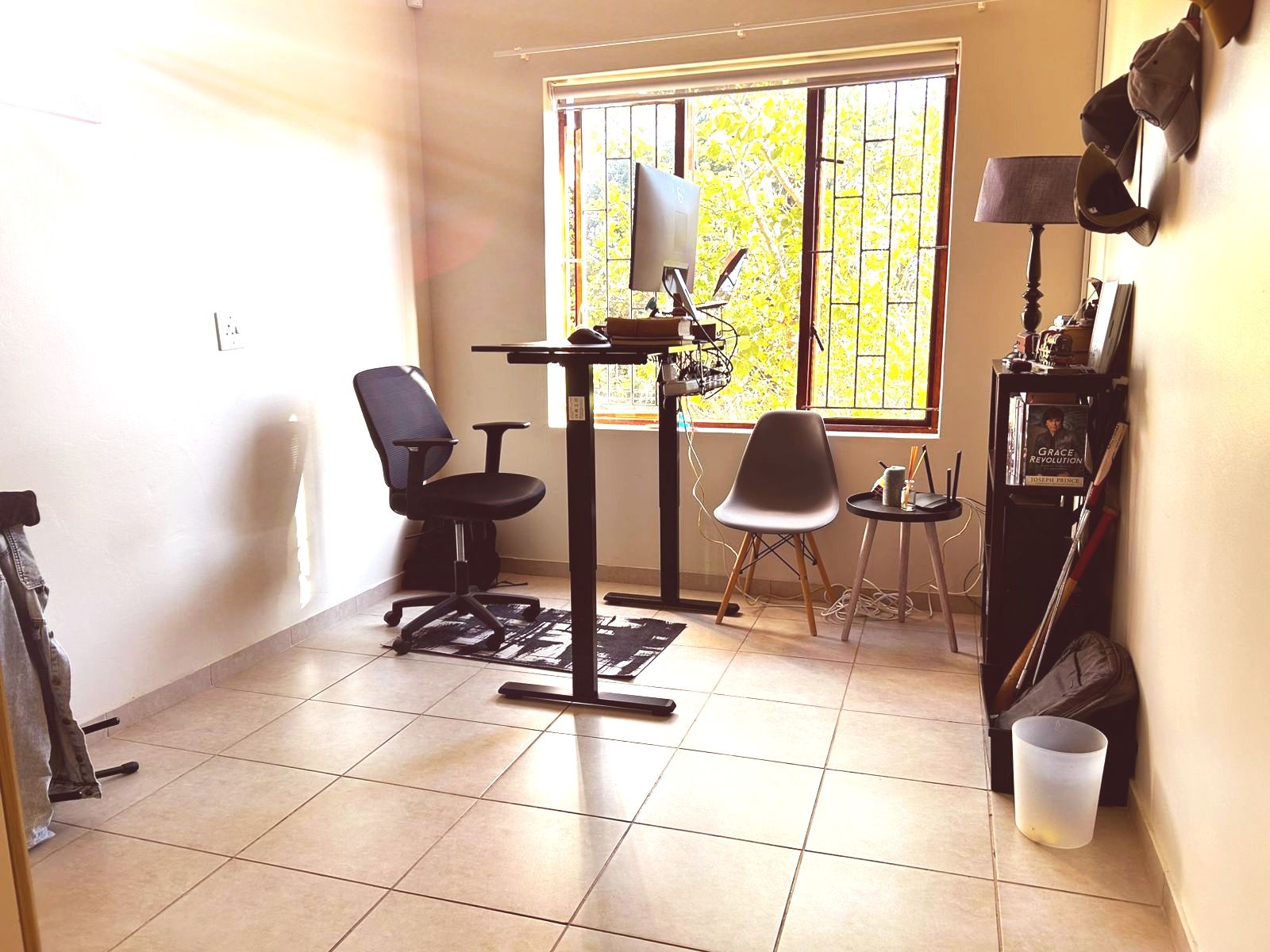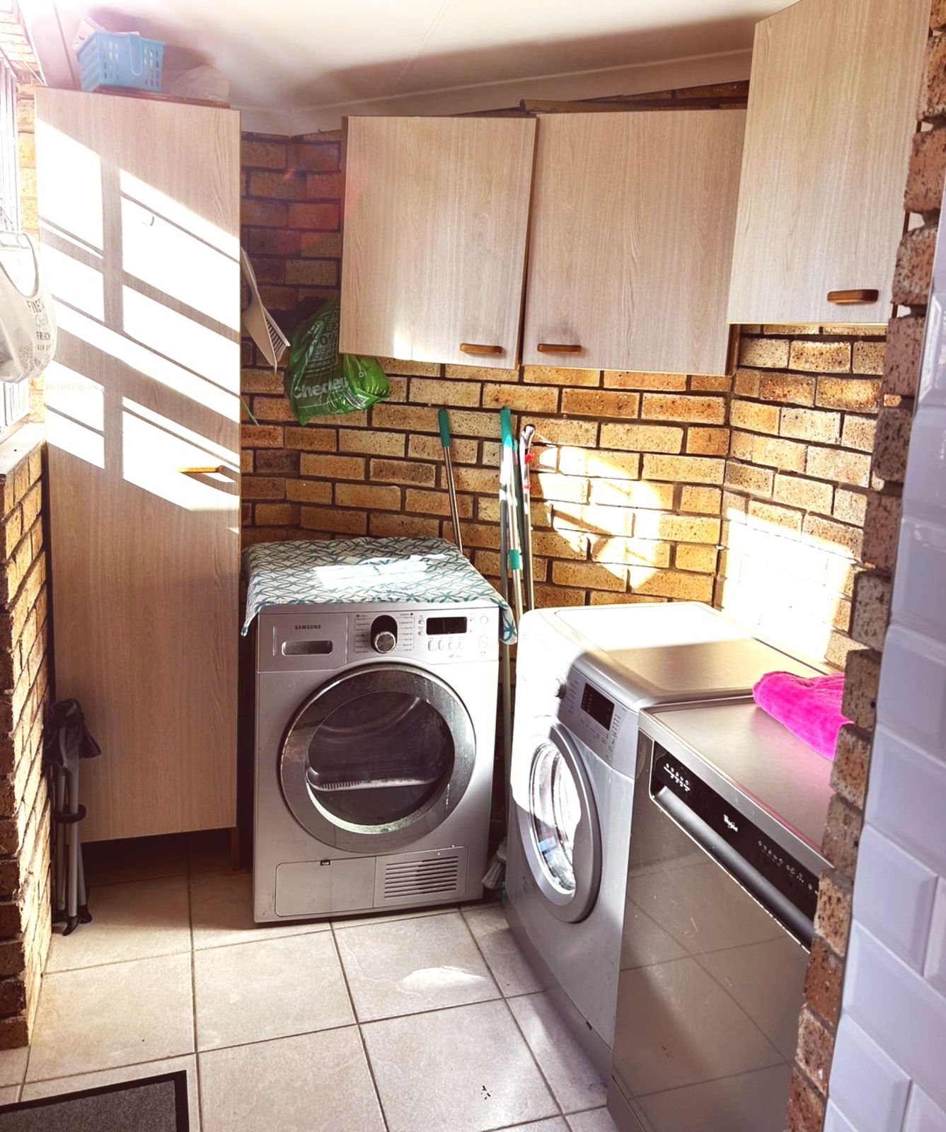 The unit is situated in the corner of the complex, with a sun-room/enclosed braai providing views of the greenbelt. The single garage is attached to the unit and provides easy access to the house through a remote-controlled garage door.