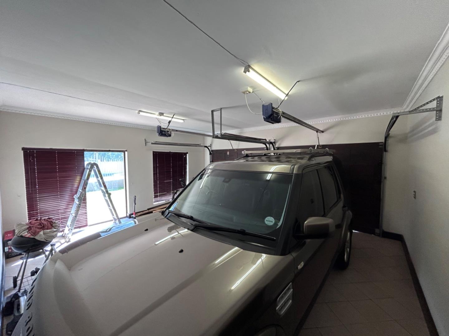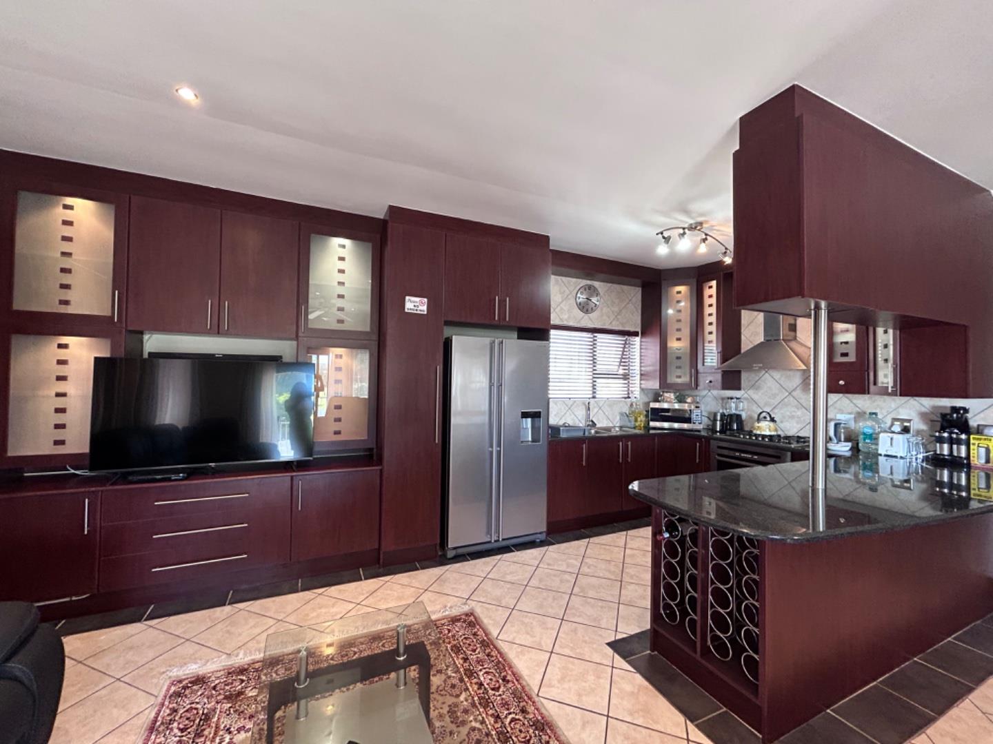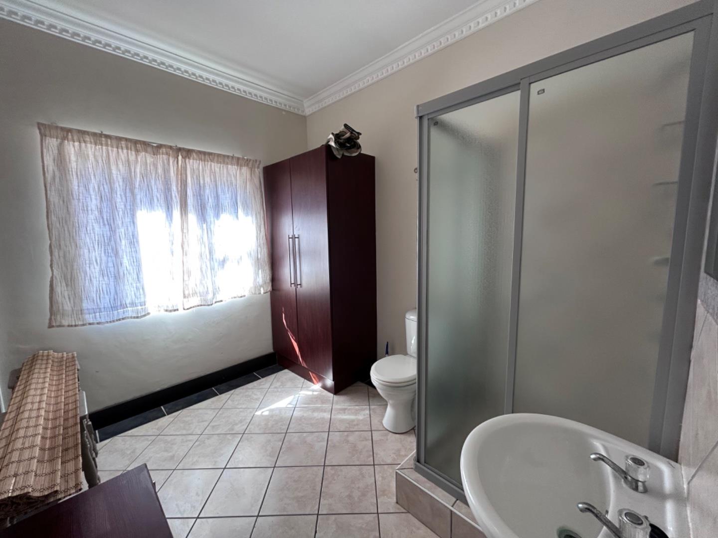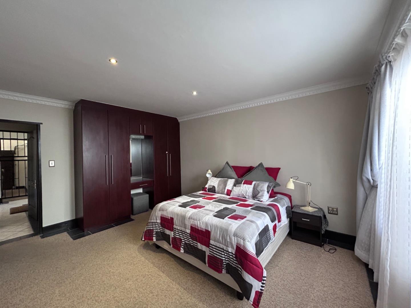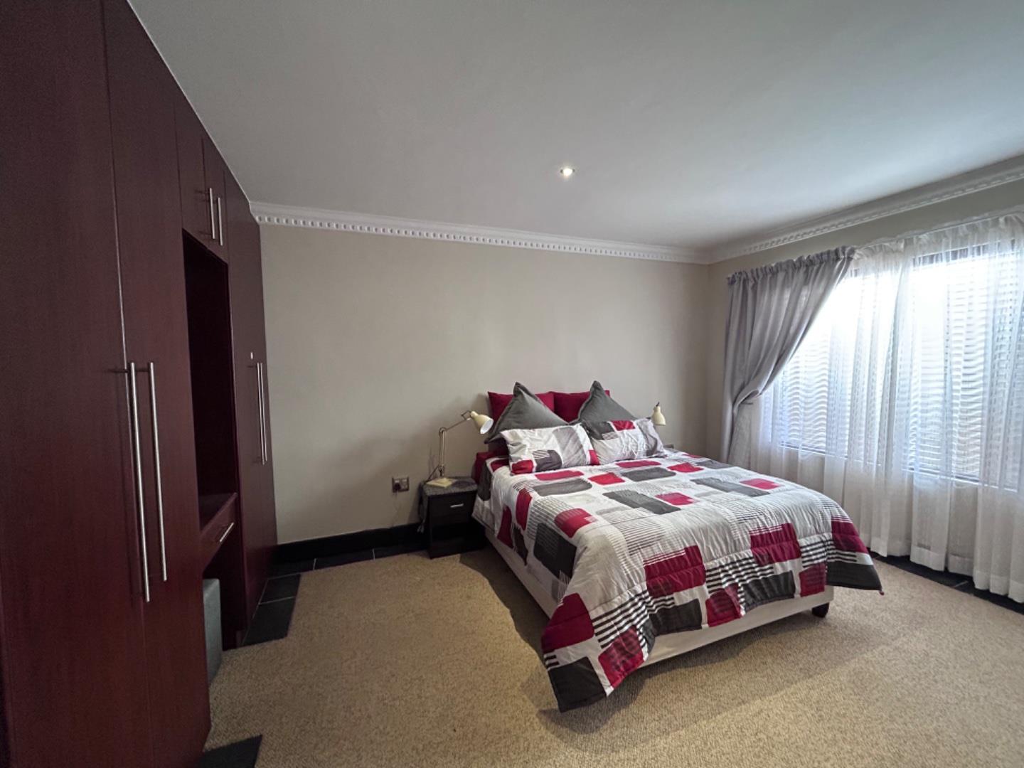 Ascend the staircase to the upper level, where 2 bedrooms await. The main bedroom boasts an en-suite full bathroom, while the second bedroom enjoys access to a separate full bathroom. The open-plan living area upstairs showcases a harmonious fusion of a dining room, living room, and kitchen adorned with ample cupboard space. The crowning jewel? An enclosed patio with a built-in braai, offering unparalleled panoramic views of the surroundings.
