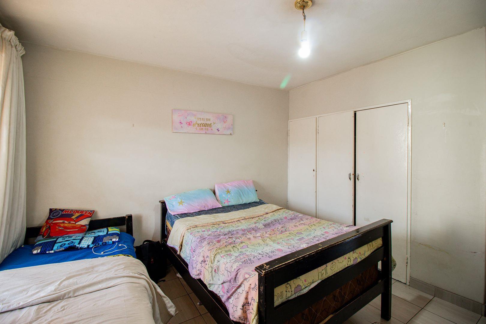 Family Focus, 3 bedroom and 2 bathroom Unit in the well-secured complex of the Villa. Open plan kitchen, lounge, and dining room. Comes with an enclosed garage and 1 extra parking bays. The big garden has a storeroom and the yard is fully tiled. there is a church in the complex, a park for the little ones, and a braai area. It has 24/7 security with cameras all around. close to Jeppe boys high school. within walking distance to Maboneng. on bus, train and taxi routes.