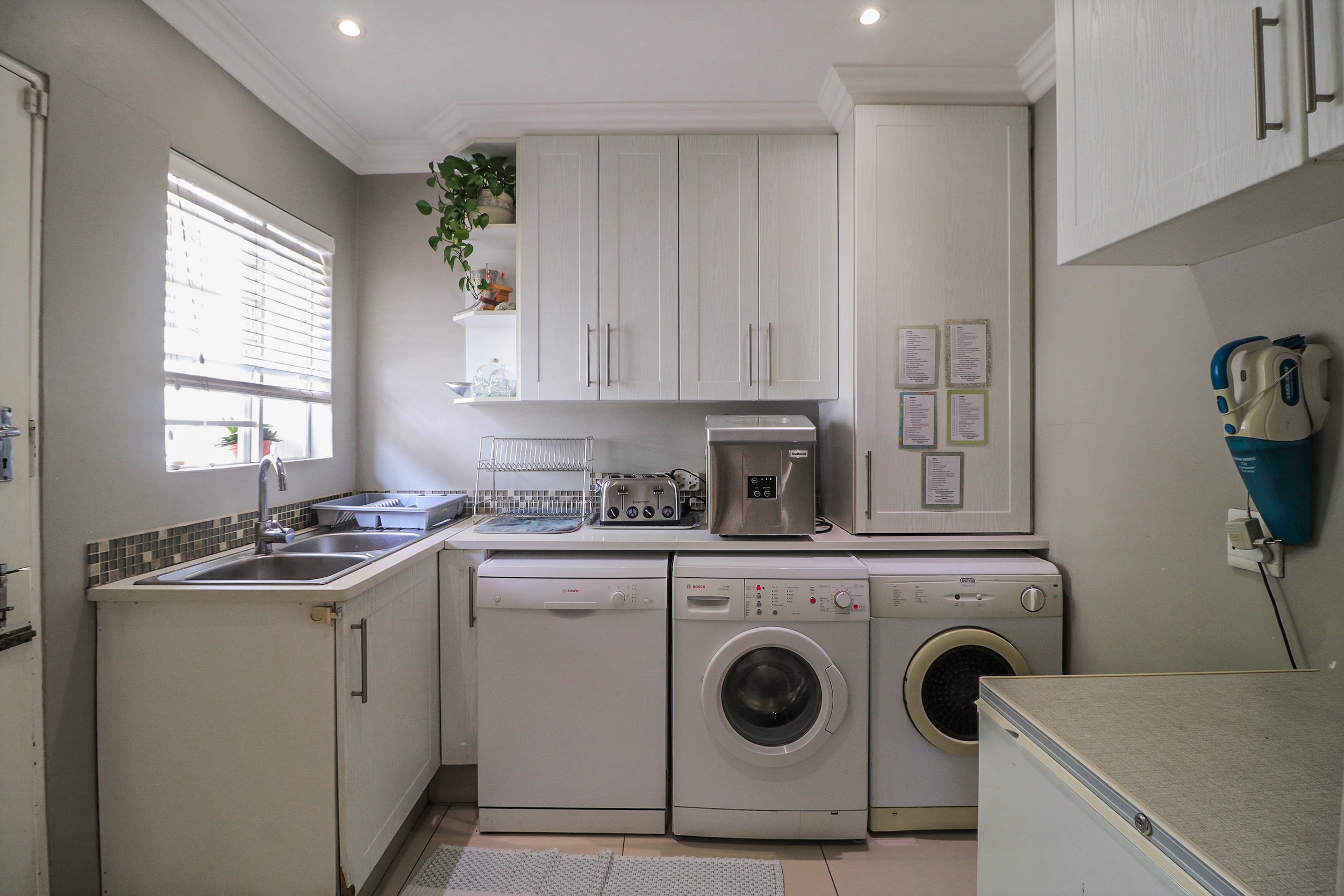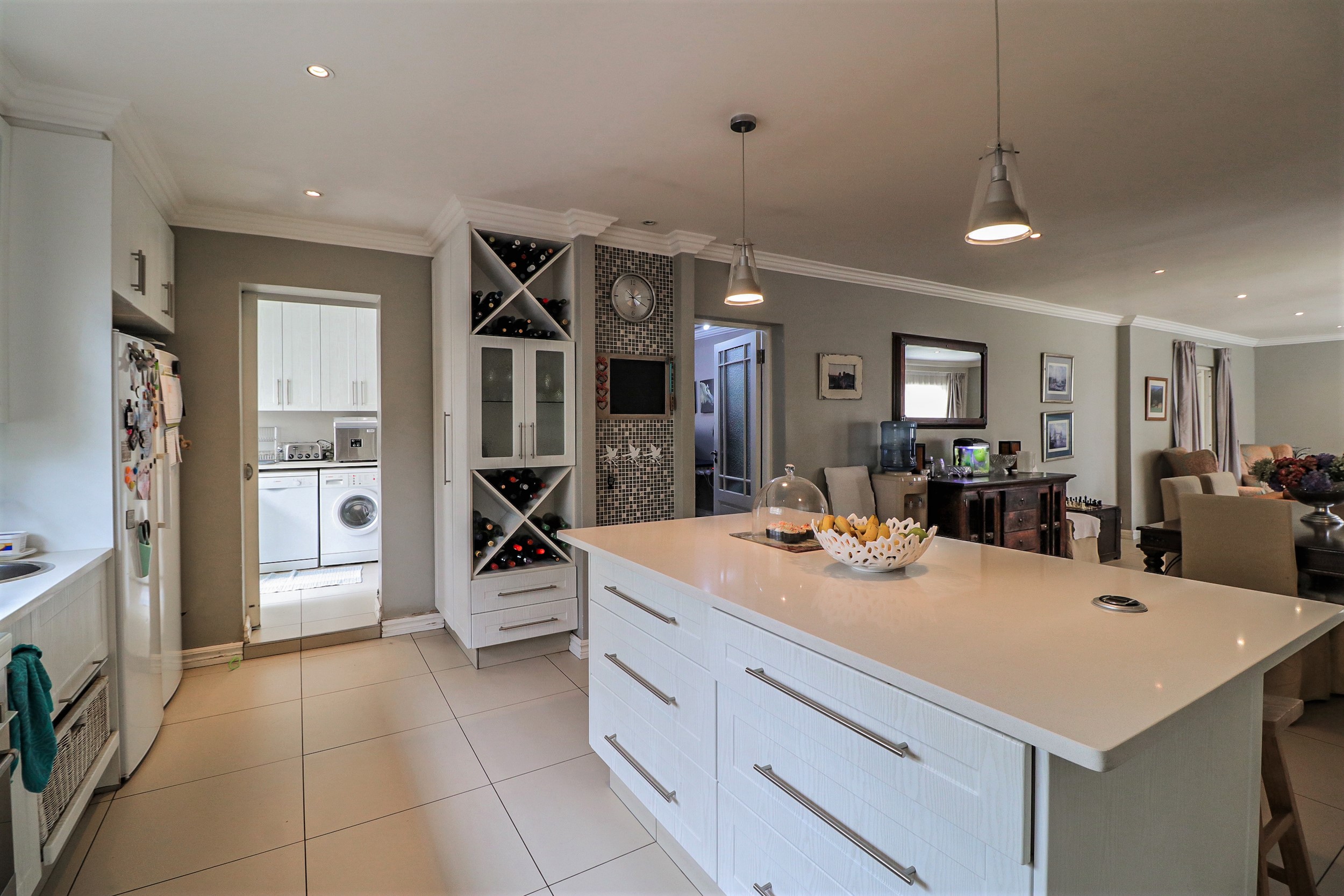The farm-style entertainers’ kitchen is absolutely gorgeous with space for a double door fridge, ELBA Gas hob and Eco electric oven, plenty of BIC, a large granite centre-island hosting plug-points with additional storage space and a separate spacious scullery/laundry area which leads out onto the courtyard.