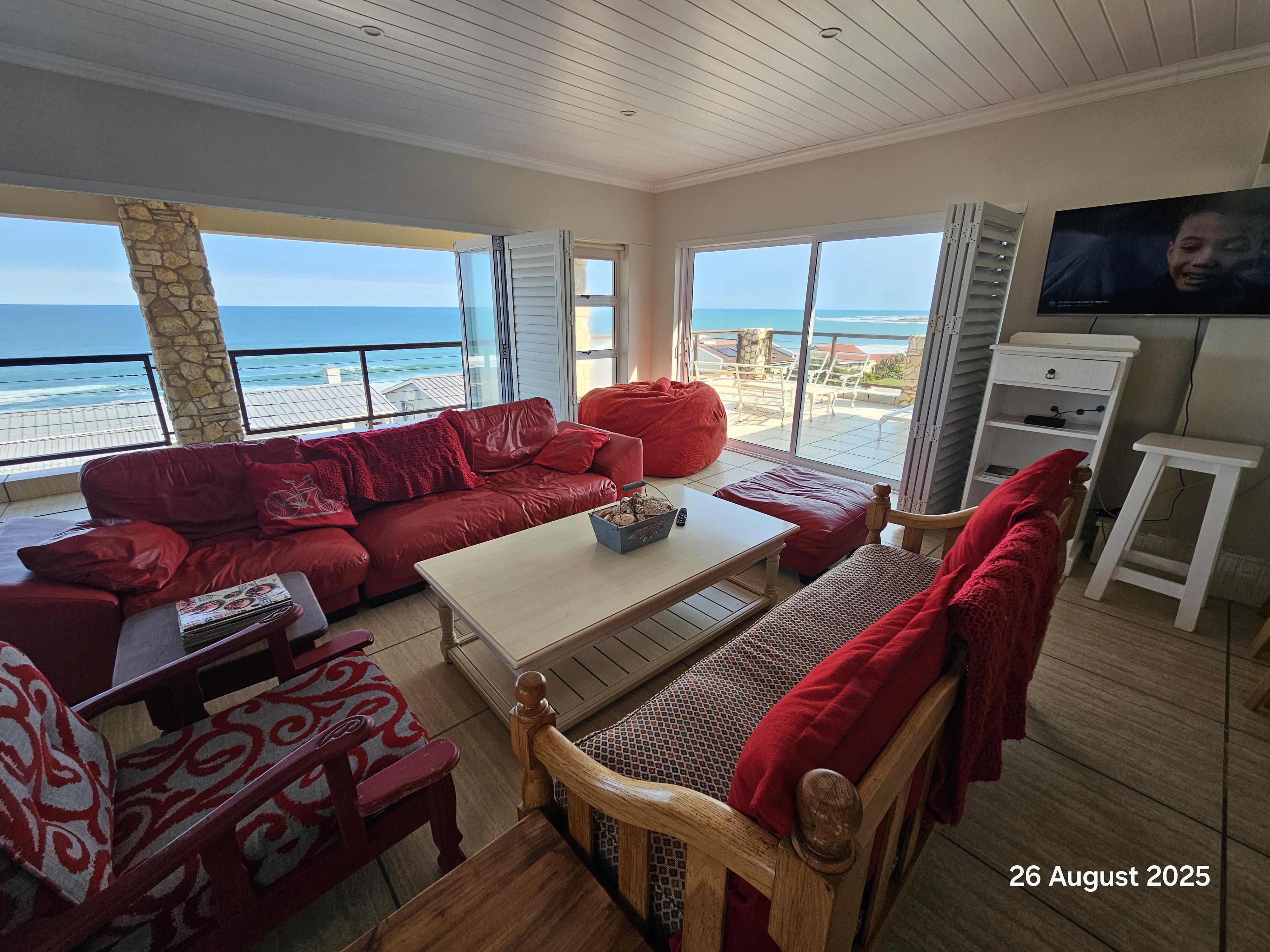 Wake up to the sound of waves and breathtaking views of the ocean from this elevated family holiday retreat. The spacious open-plan living area is designed for comfort and entertainment, featuring a modern kitchen, an oversized built-in braai, and a stylish bar that flows seamlessly onto the patio — the perfect setting for family gatherings and memorable evenings with friends.