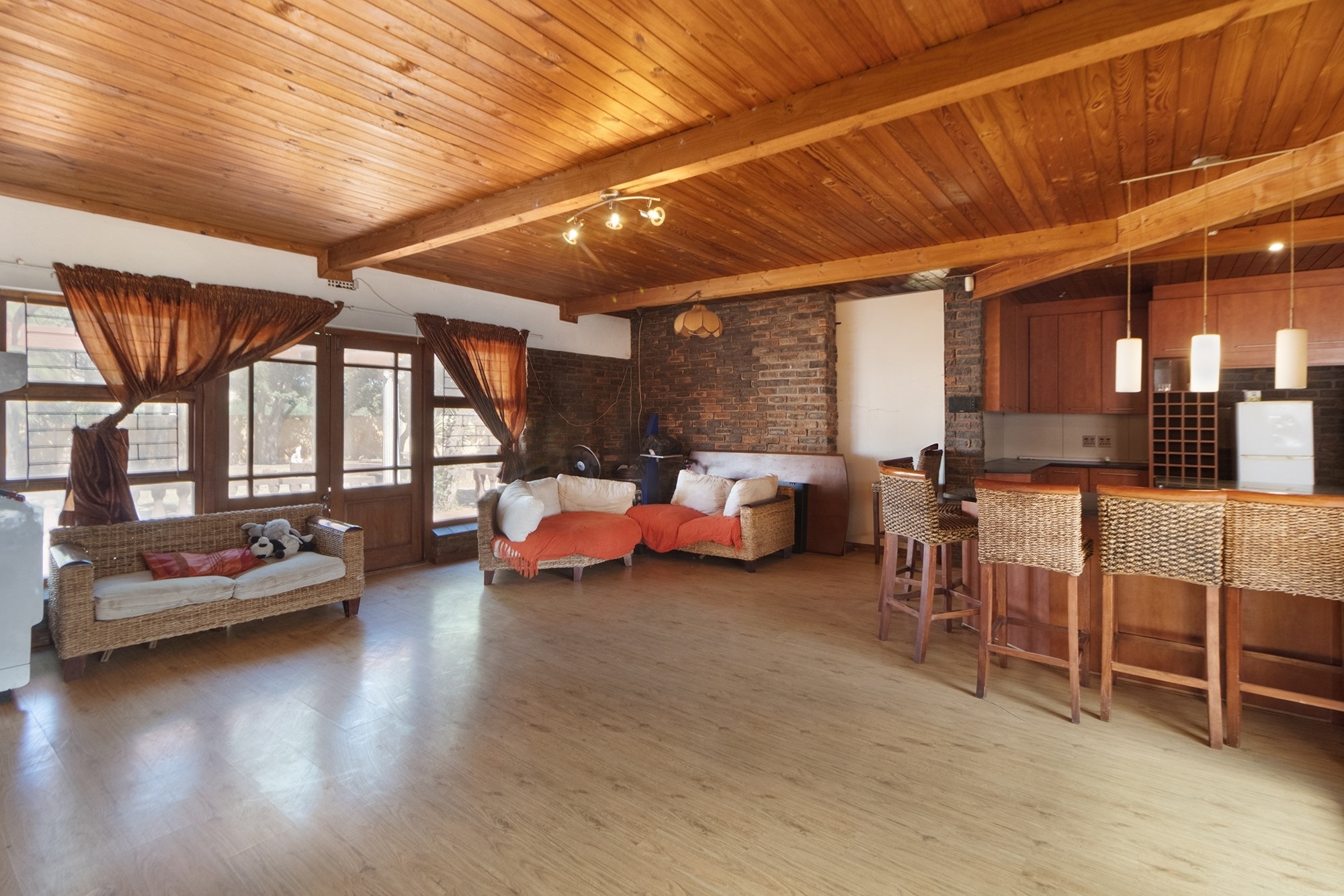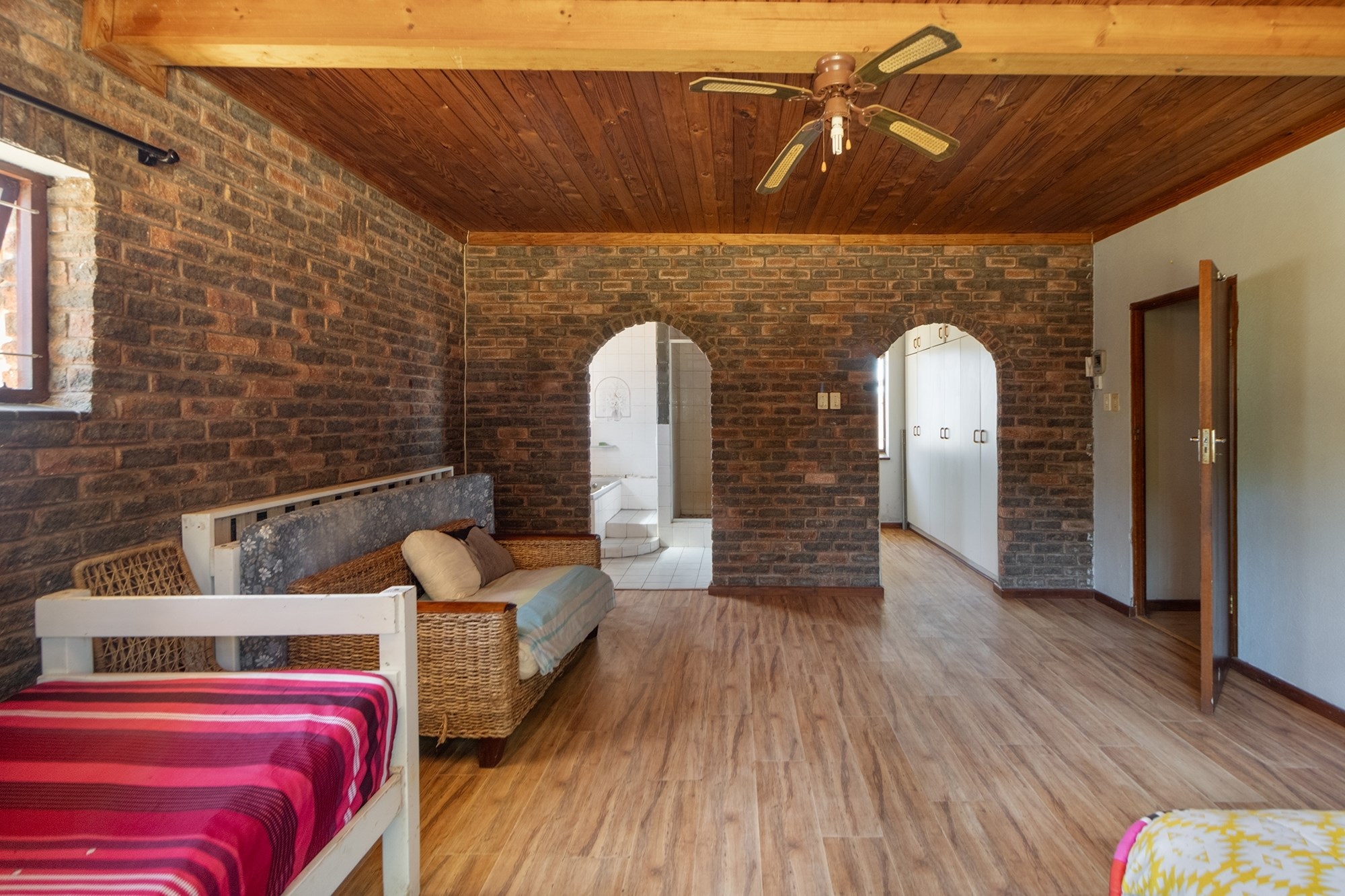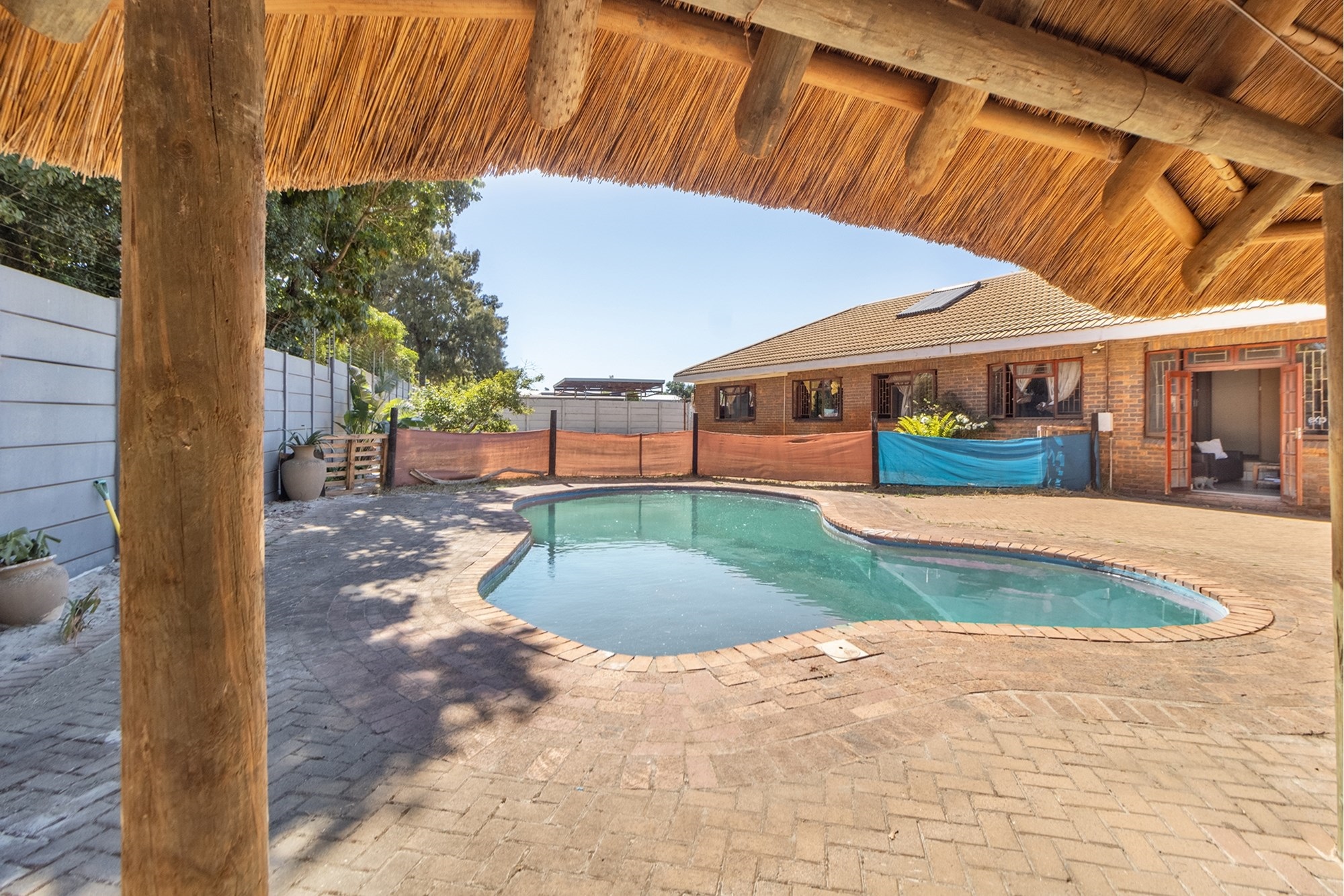 This is the original house with 4 bedrooms and 2 bathrooms inside the home and a 5th bedroom with private access above the double garage. There is also a pool and Lapa great for entertaining guests.