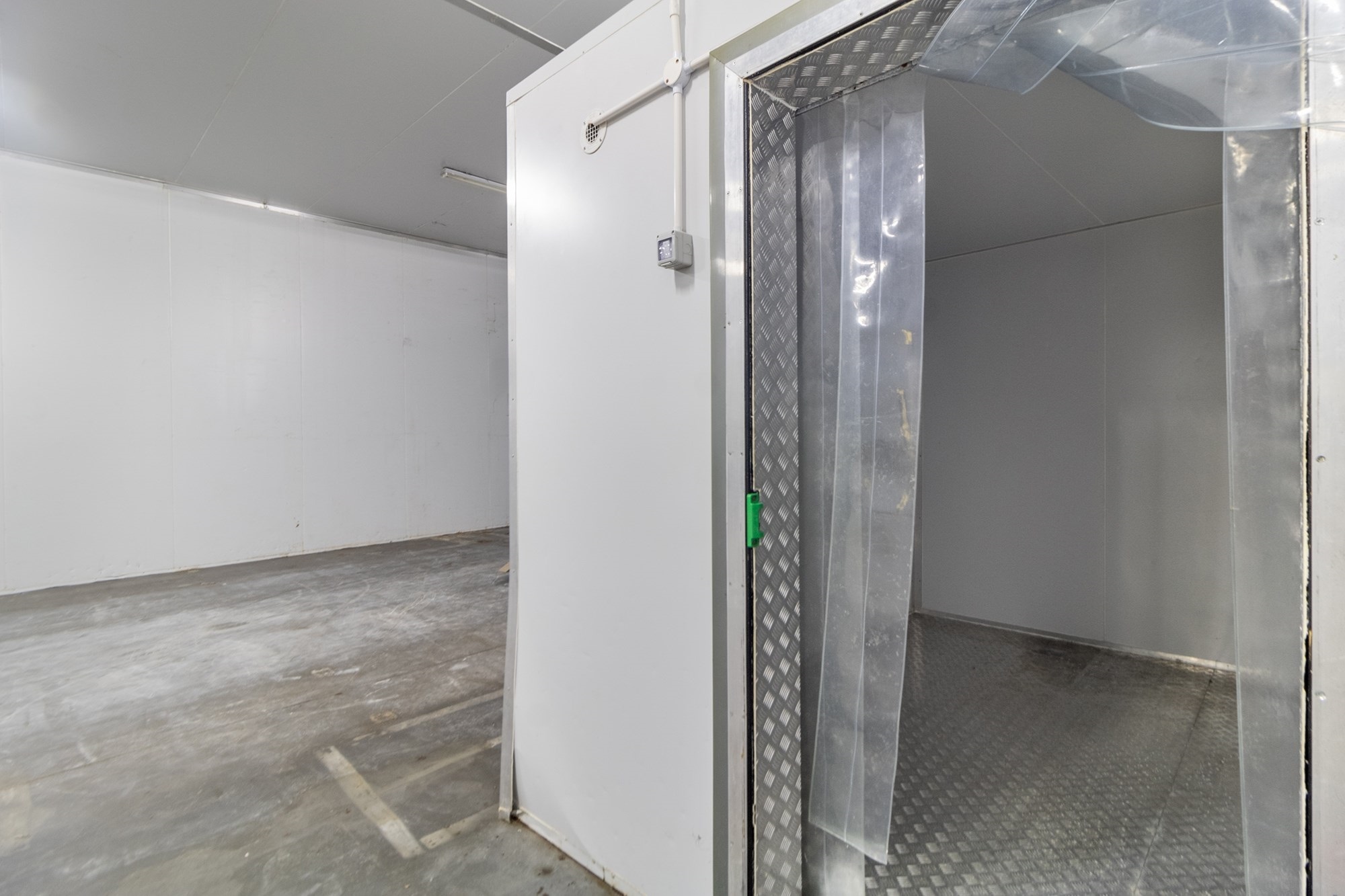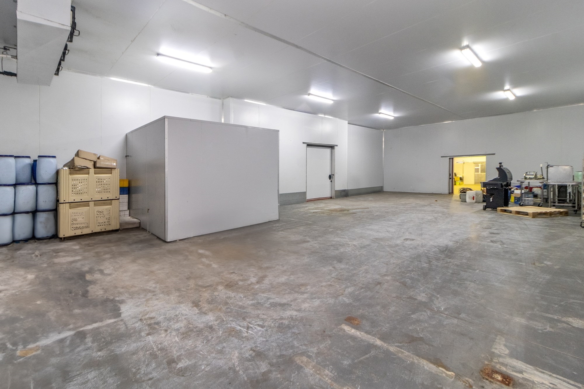This warehouse/factory with offices has a state-of-the-art walk-in cooler/freezer room which is fully insulated. There is a wide concrete driveway for seamless access. The steel-roofed loading dock is next to the warehouse.
