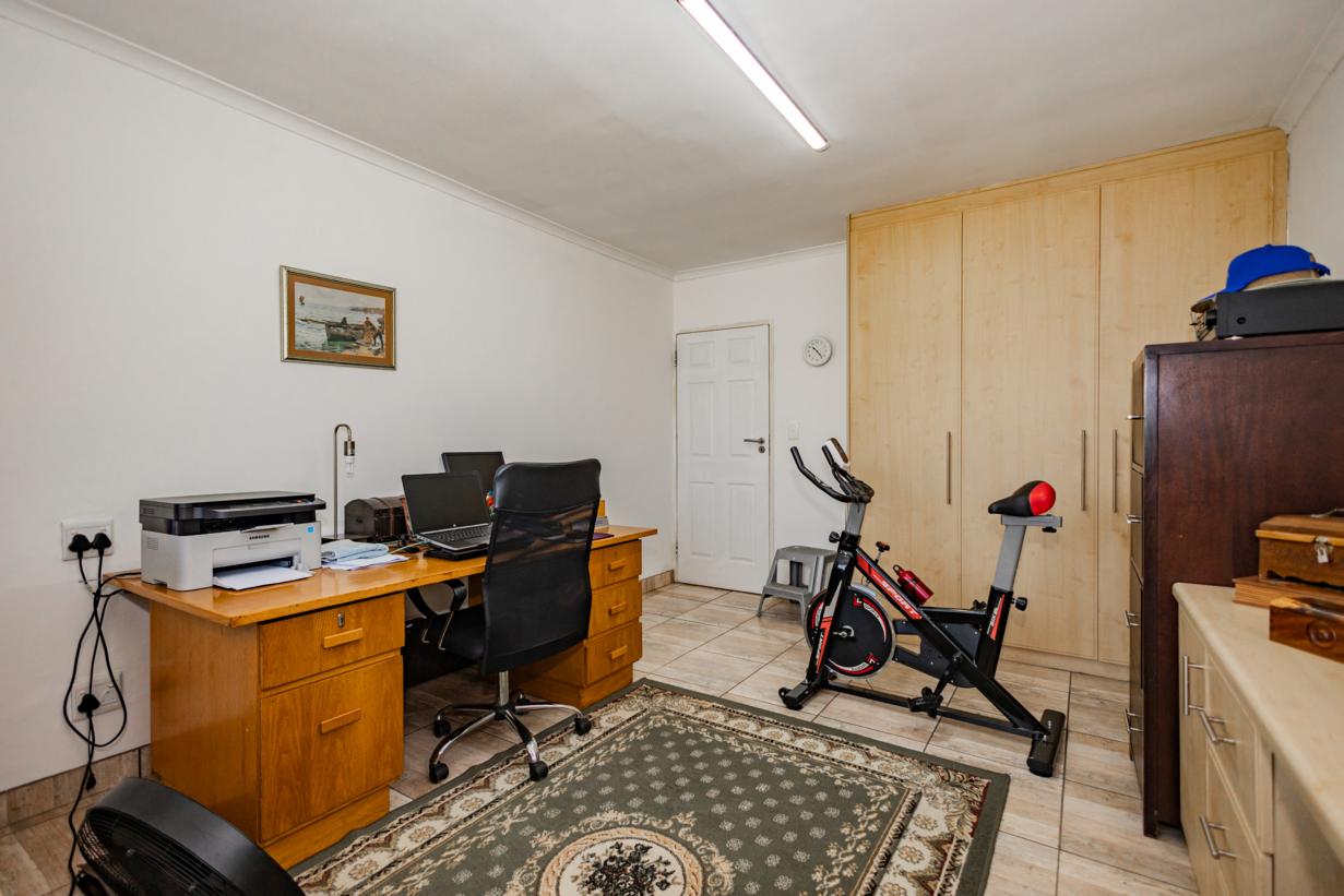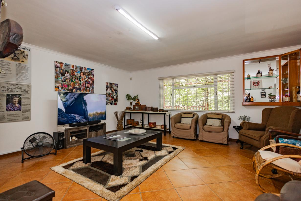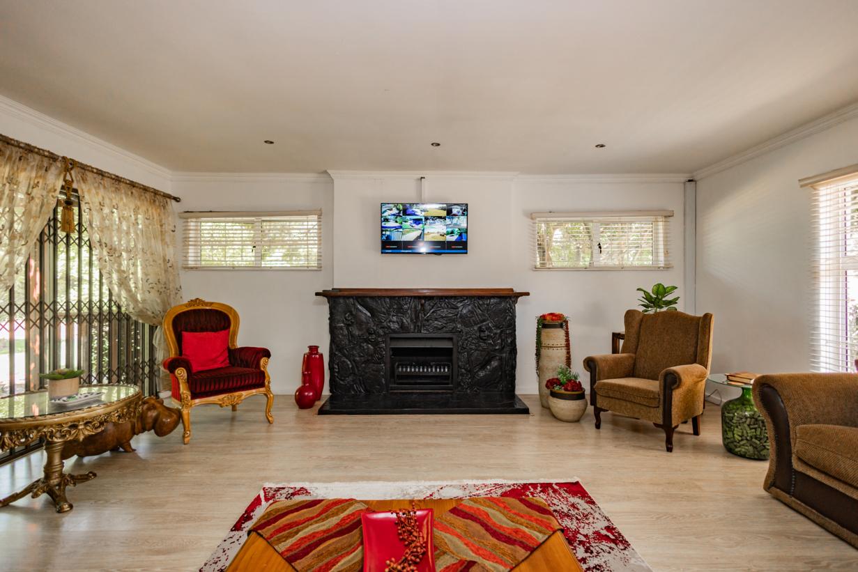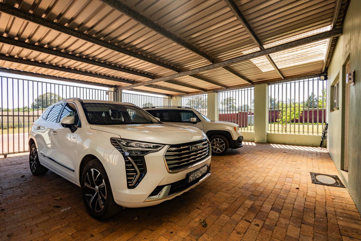 - Security features including burglar bars, safety gates, an alarm system, beams, and a camera-controlled front gate with two monitors for 12 cameras