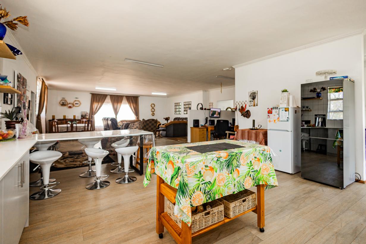 Upon entering this second dwelling, you’ll find a lounge that opens into an open-plan dining area and a well-fitted kitchen with a gas hob, scullery, and pantry. Down the corridor, there are three bedrooms, one with an en-suite bathroom, and a family bathroom. At the rear of the house, there’s a storeroom currently utilized as a bakery, along with an enclosed carport accommodating three cars.
