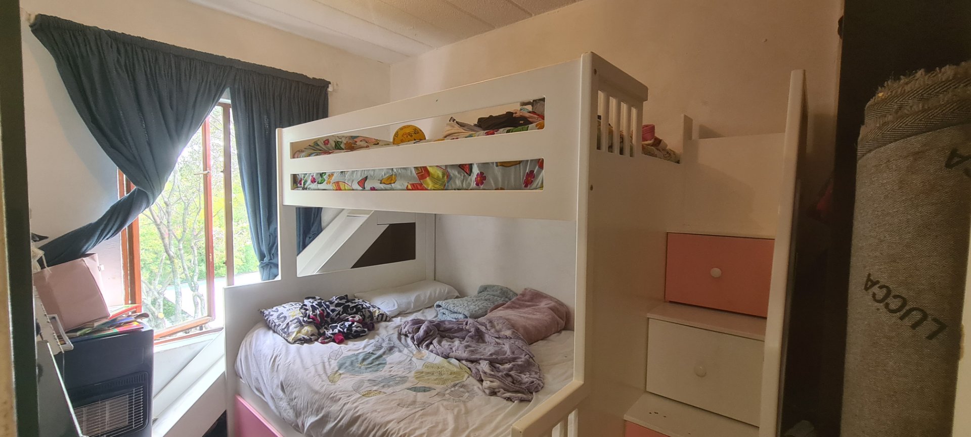 The unit offers no neighbours above, allowing for high thatch ceilings in the lounge, which creates a spacious, airy feel that tenants love. The open-plan kitchen and lounge open onto a generously sized balcony, ideal for indoor-outdoor living.